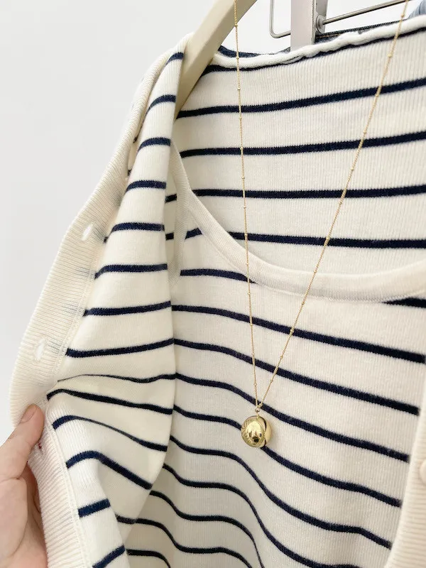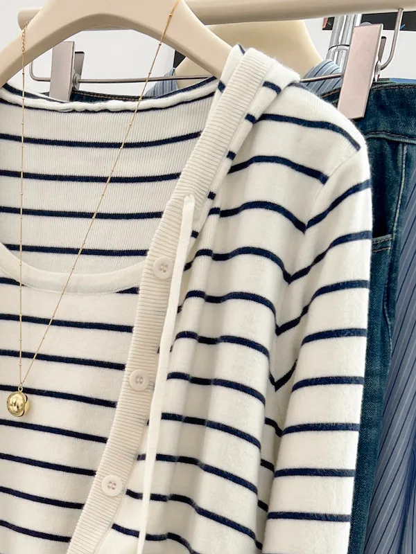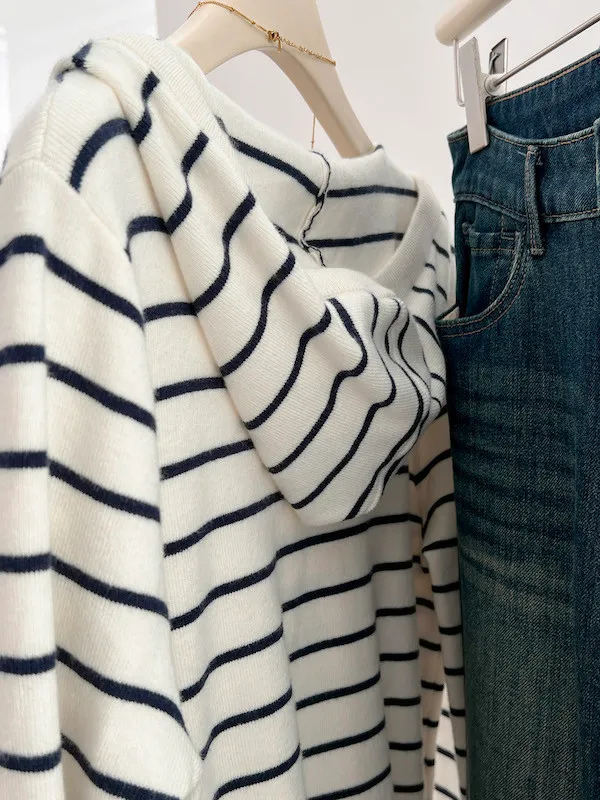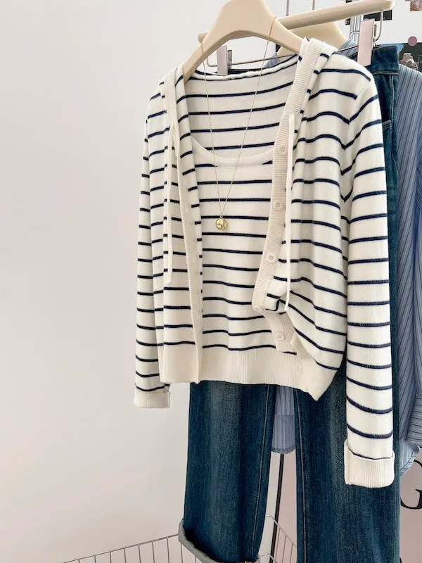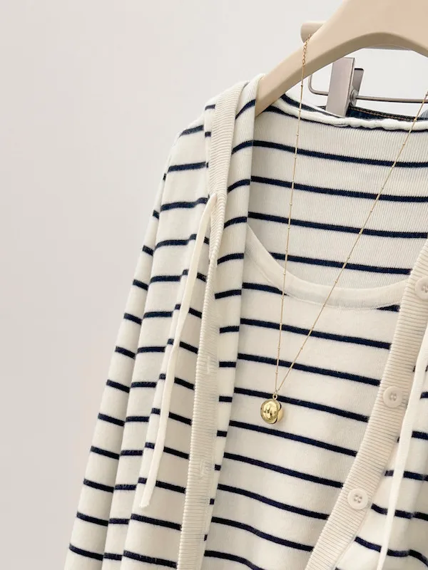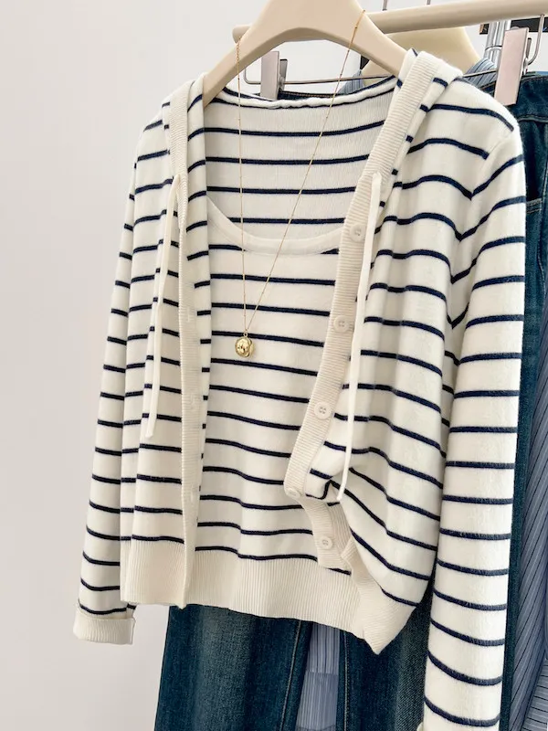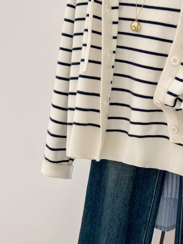現貨!海風日常 假兩件條紋連帽針織開衫