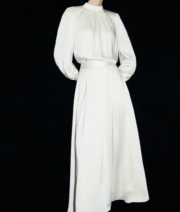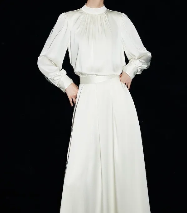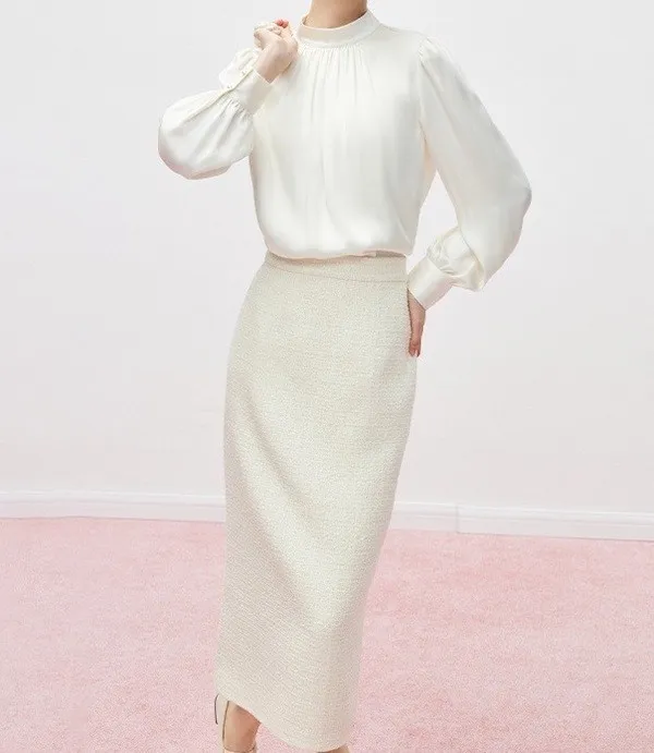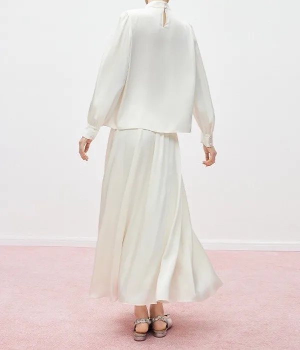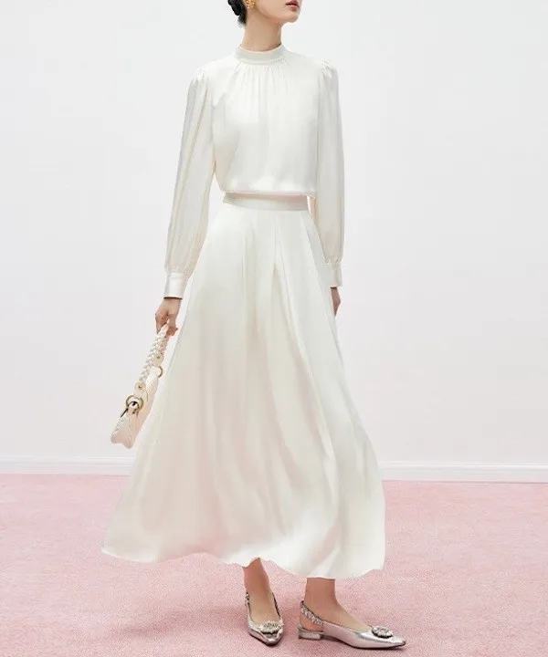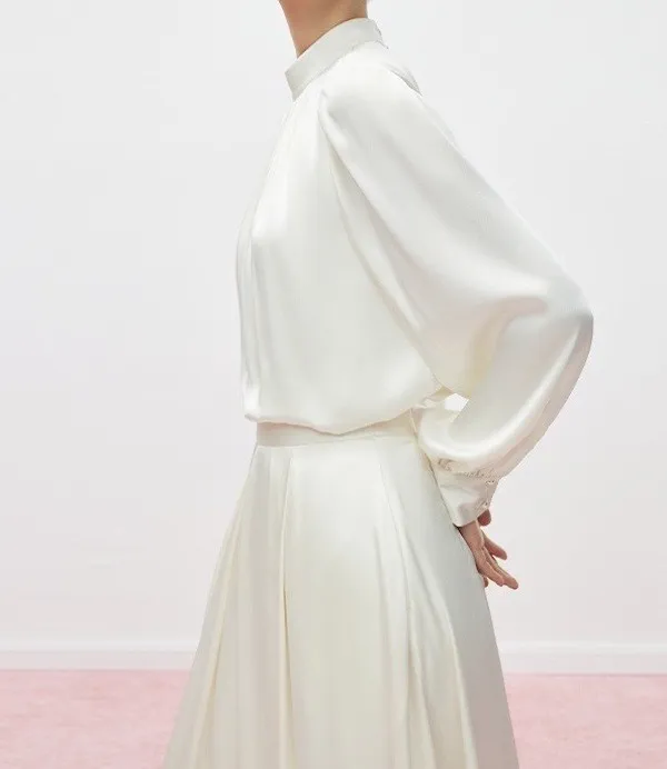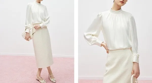 奶油夢境 溫柔法式絲滑緞面長袖襯衫