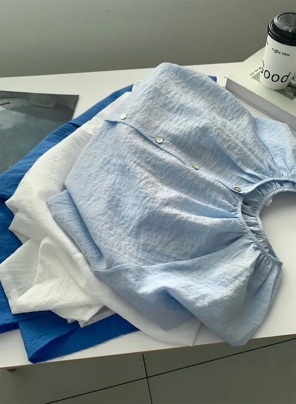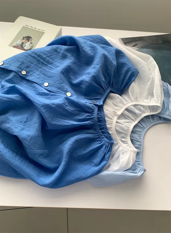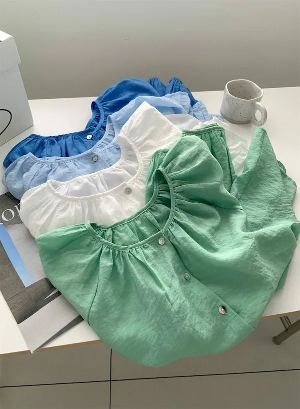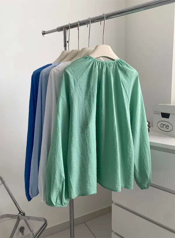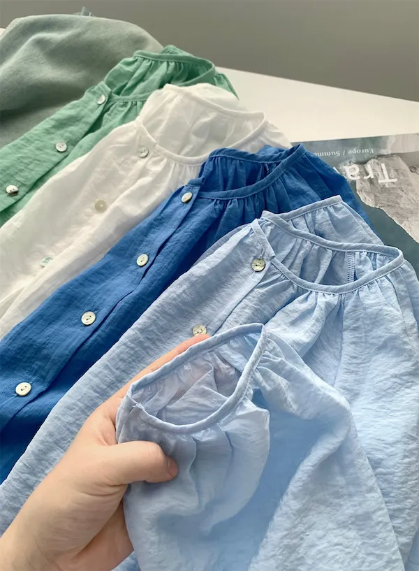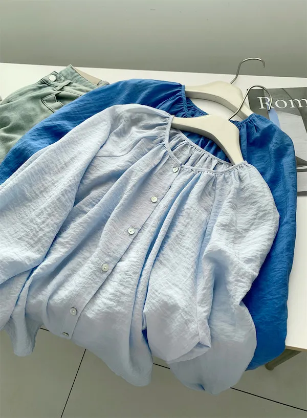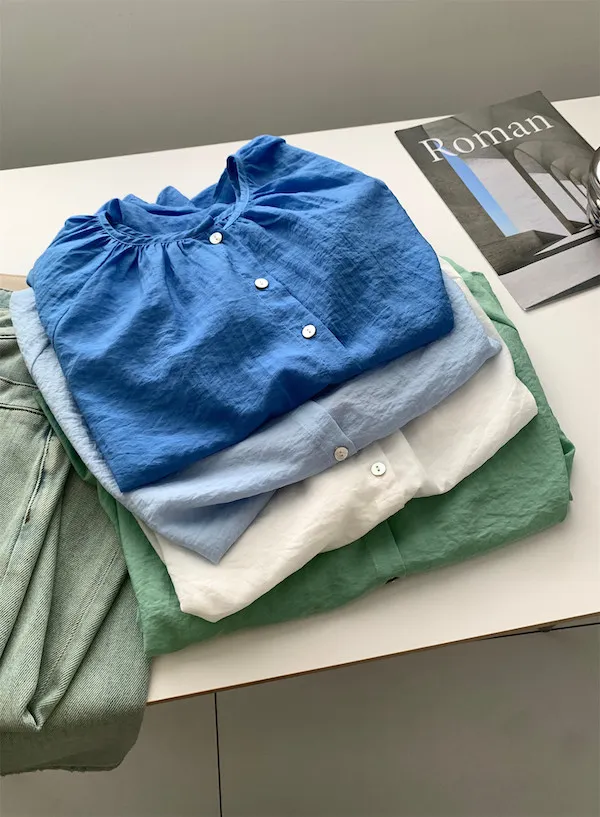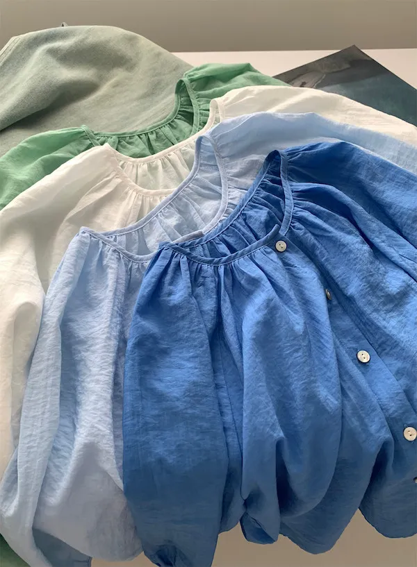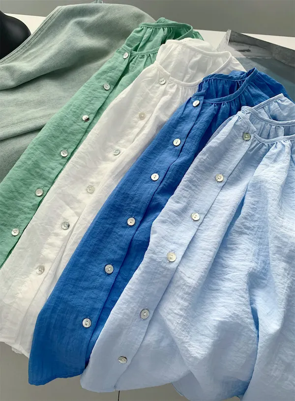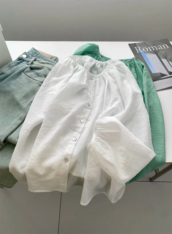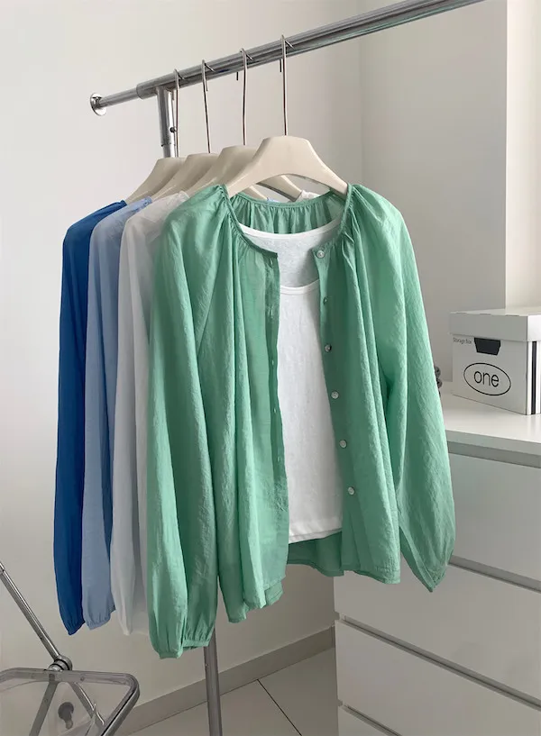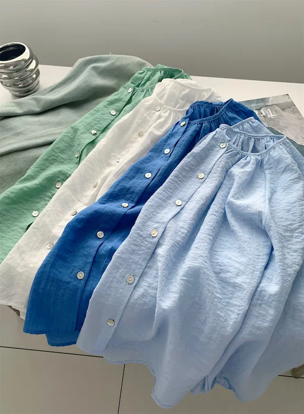 海風輕拂 圓領貝殼釦長袖罩衫 4色