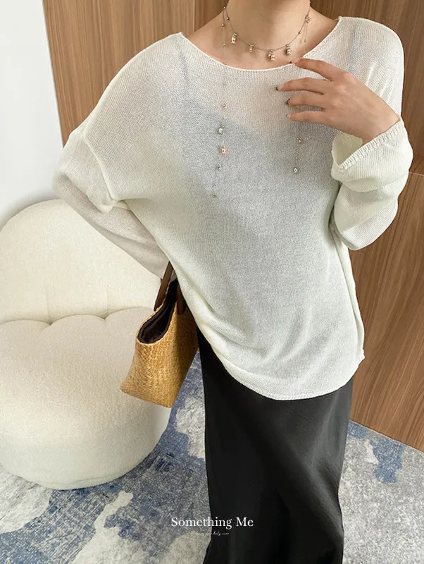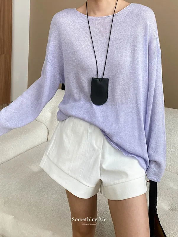 輕氧微風 亞麻圓領長袖針織上衣 5色