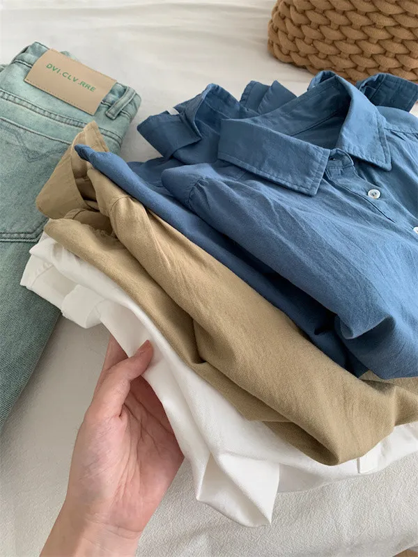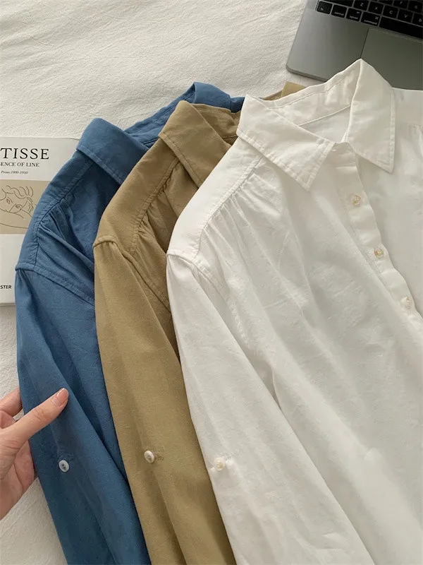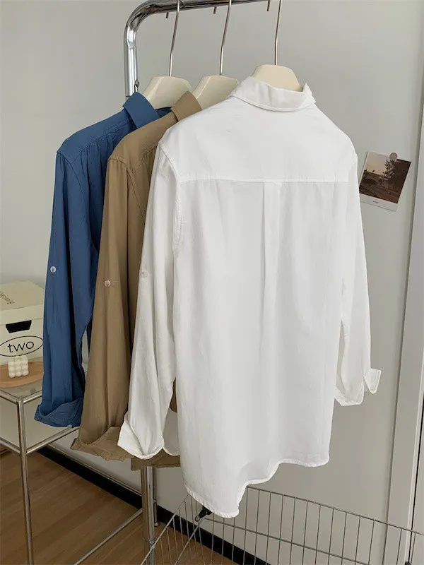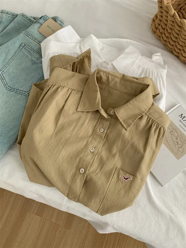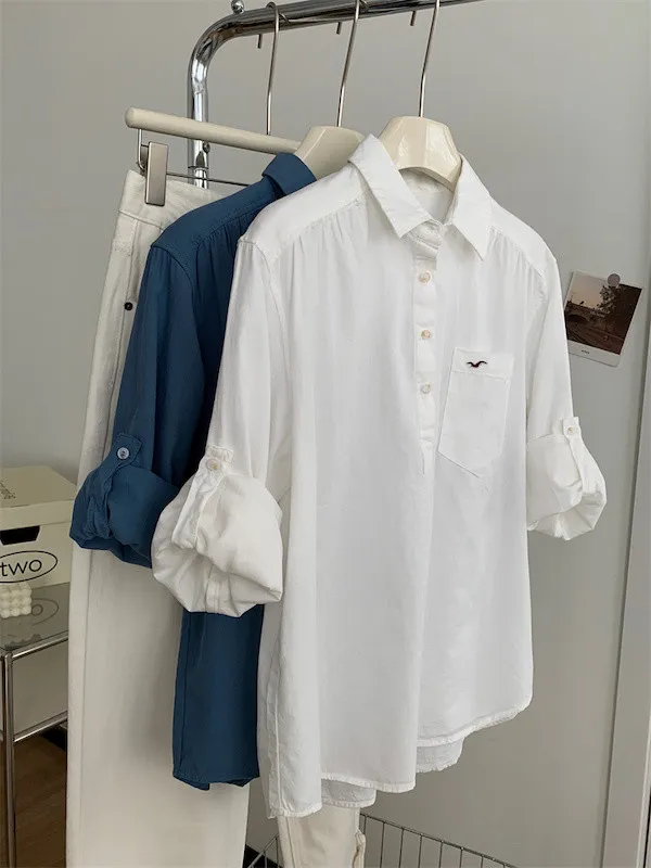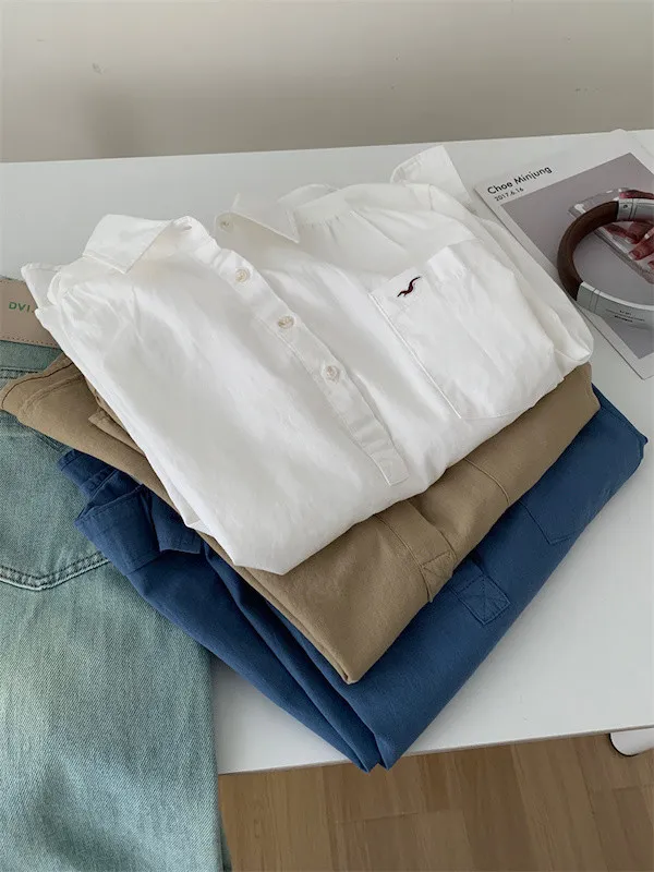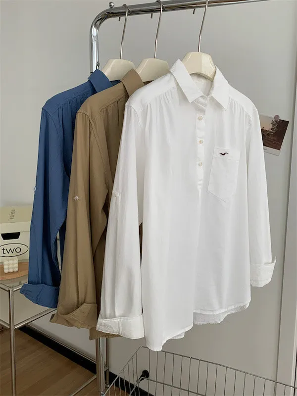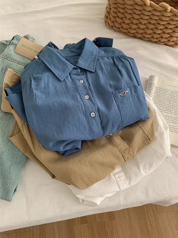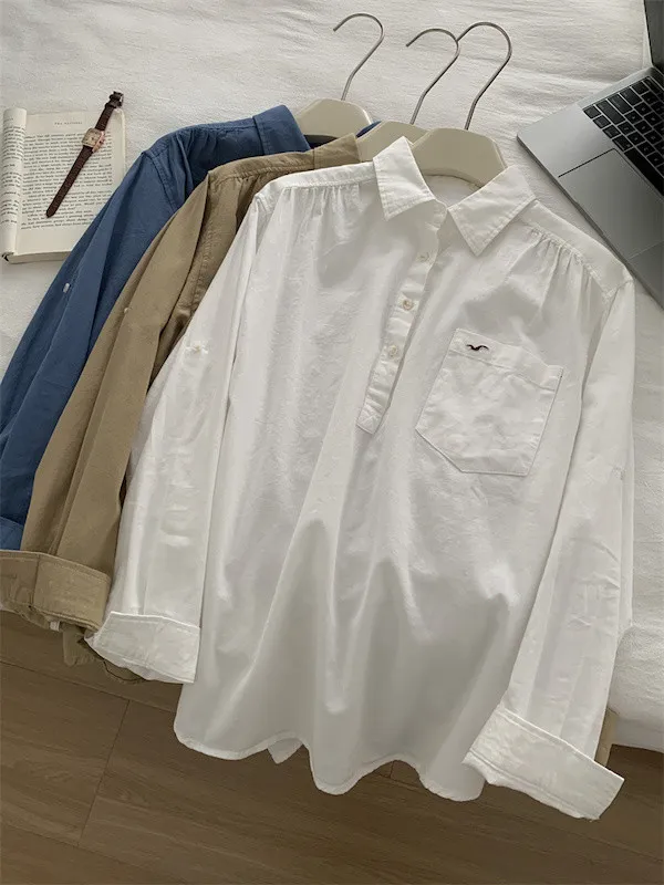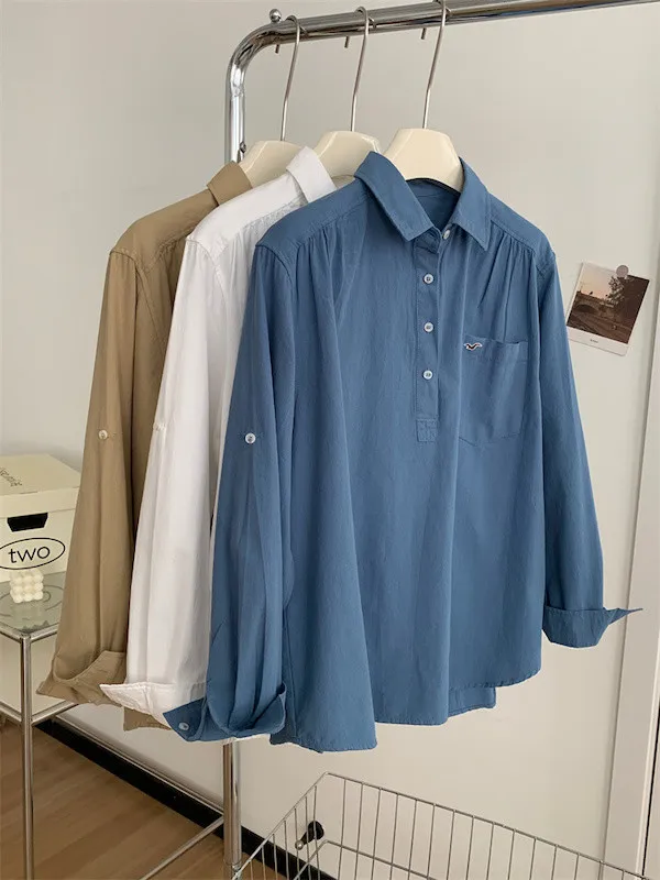 清晨微光 刺繡口袋水洗棉長袖襯衫 3色
