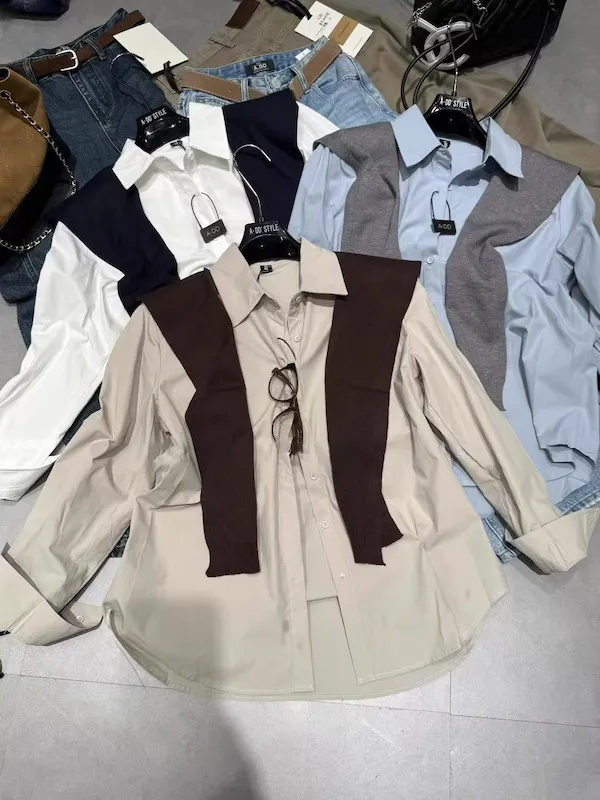 時髦藝廊 慵懶寬鬆長袖襯衫(附披肩) 3色