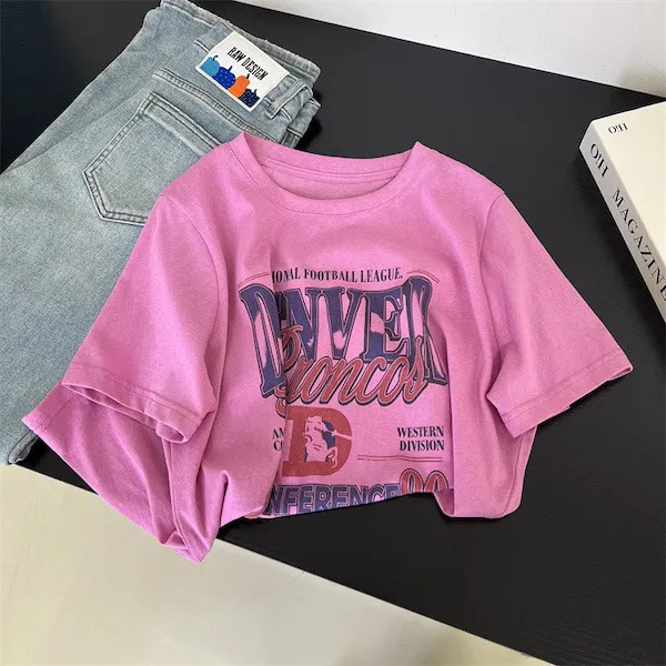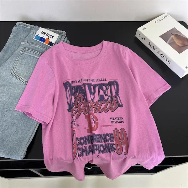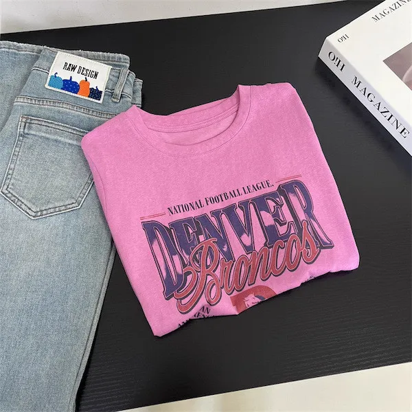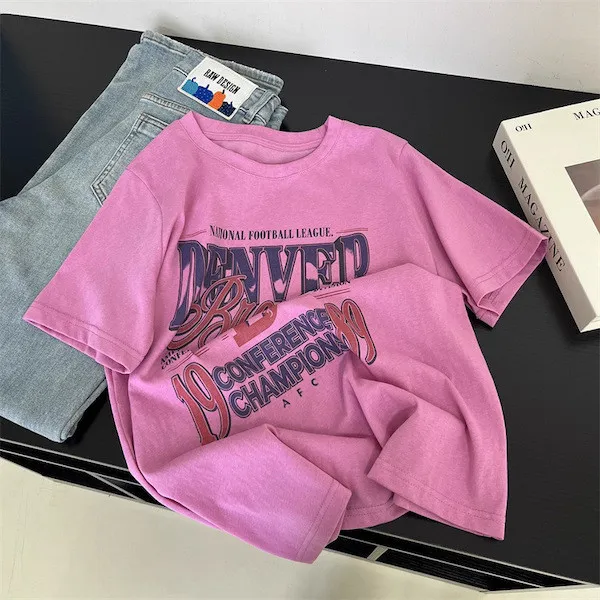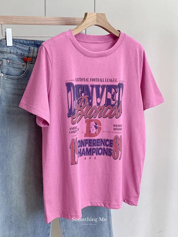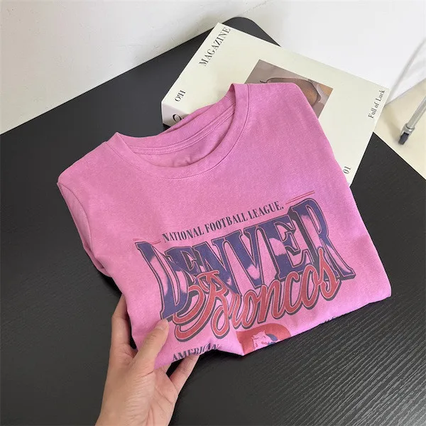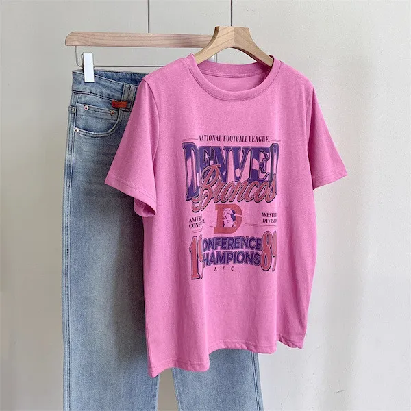 丹佛球場復古字母印花寬鬆T恤