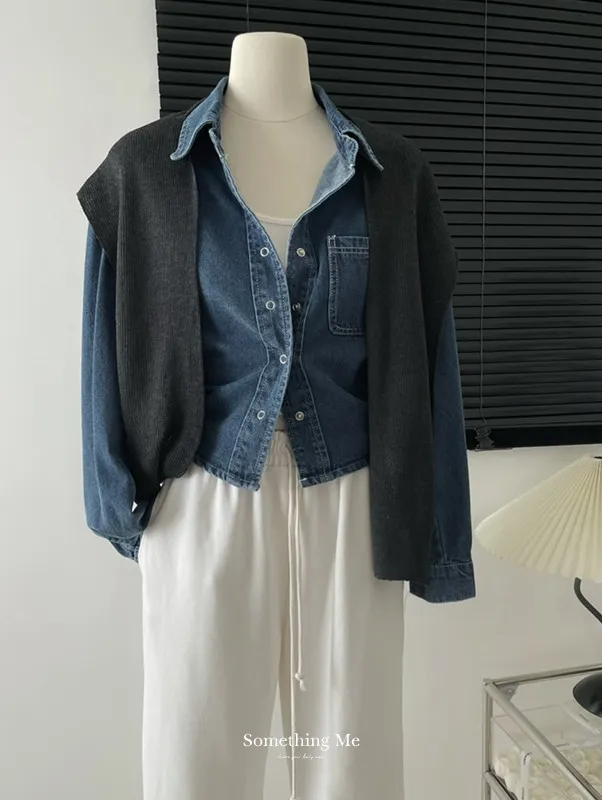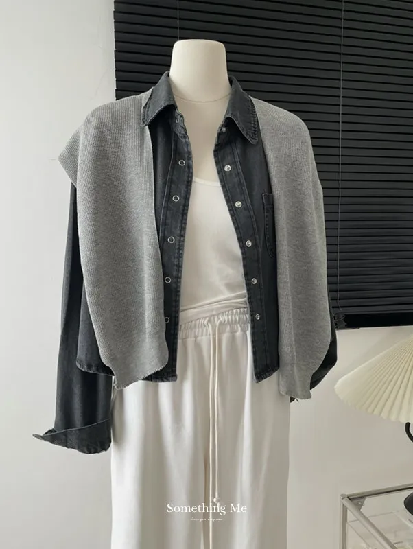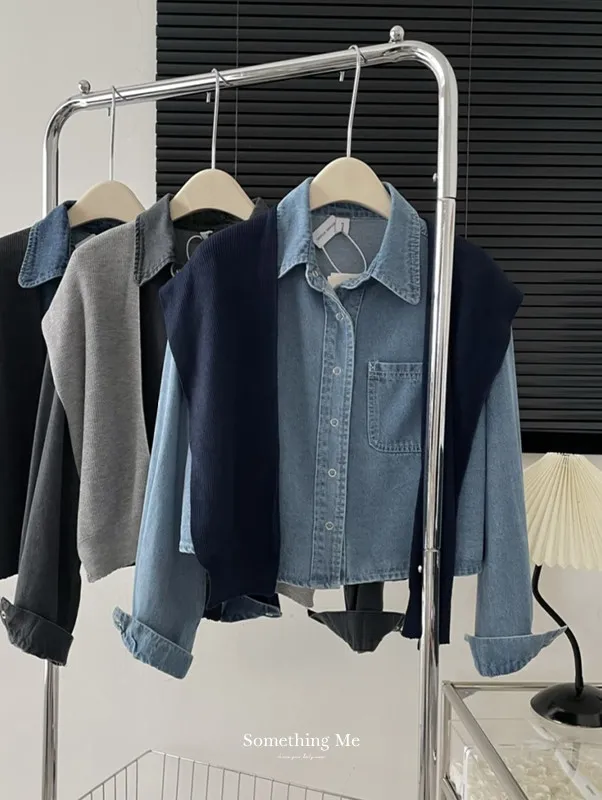 牛仔襯衫跟針織披肩可以分開穿也可以一起搭