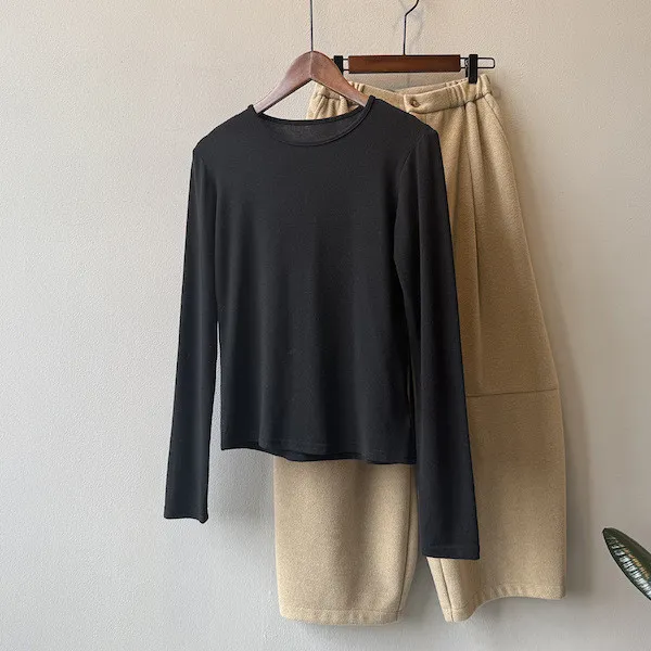 簡約舒適圓領長袖T恤 5色