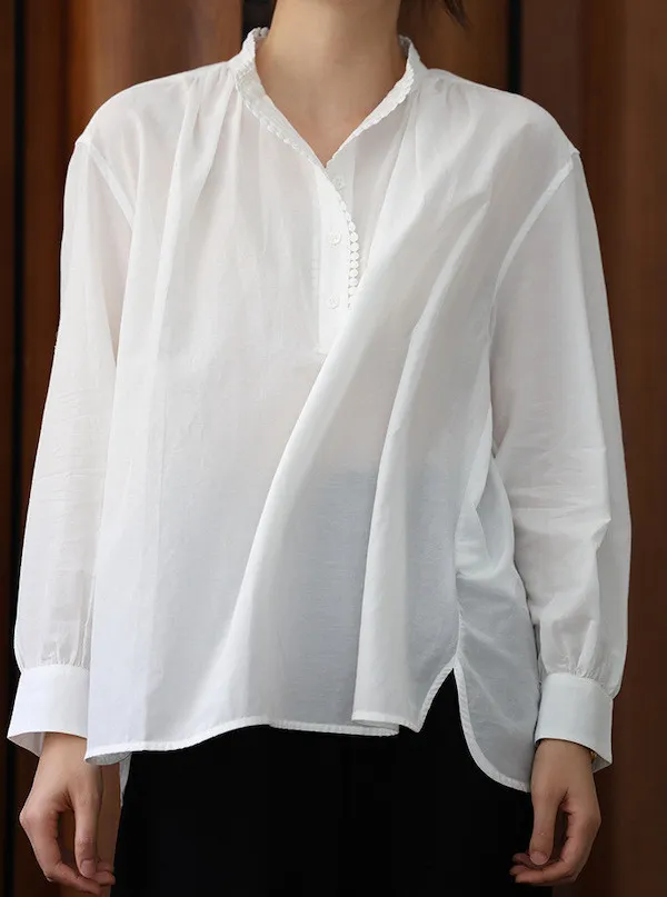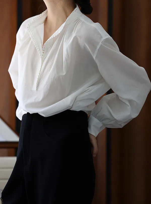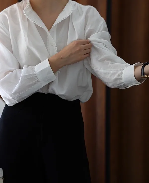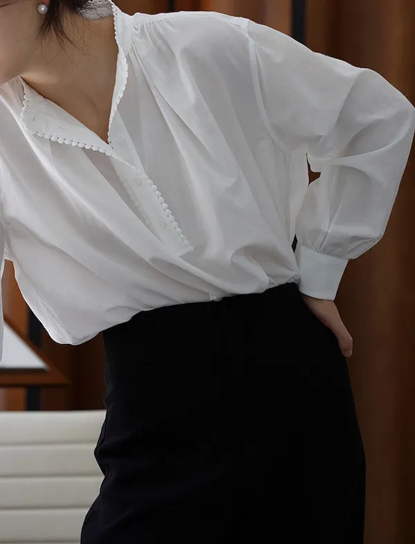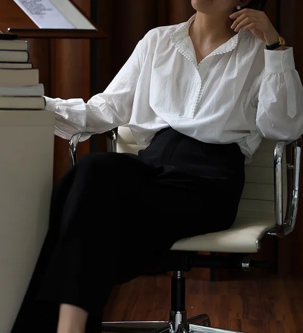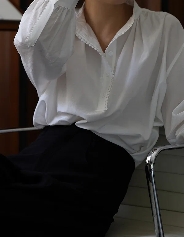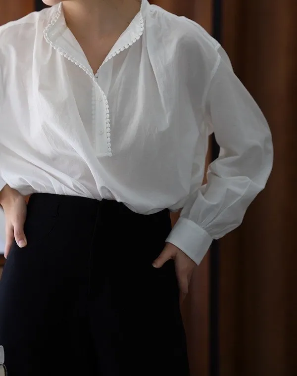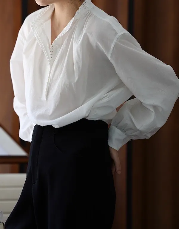 復古英倫 小立領寬鬆長袖襯衫