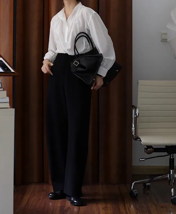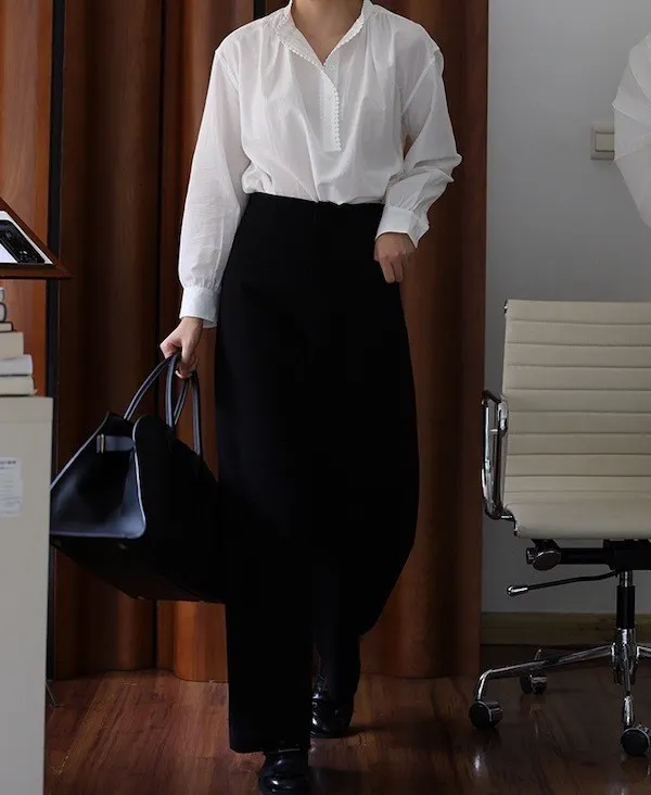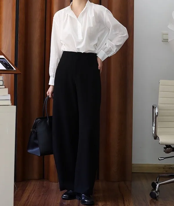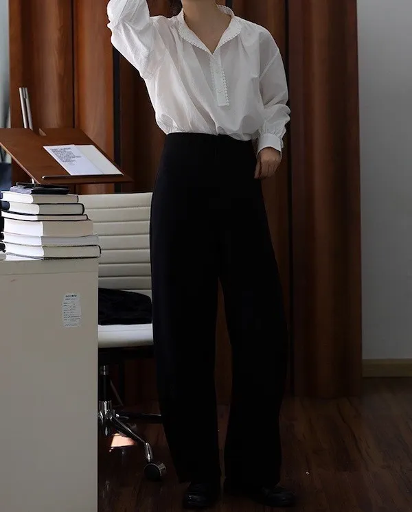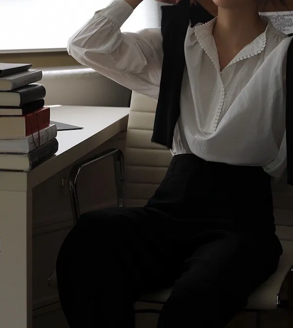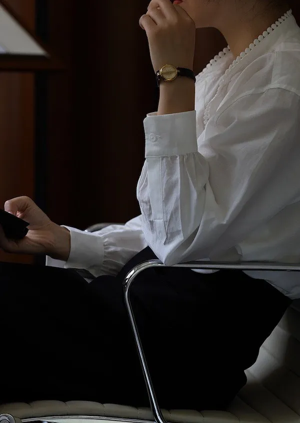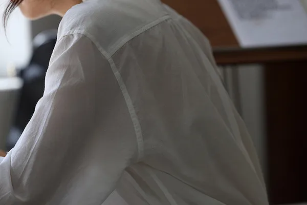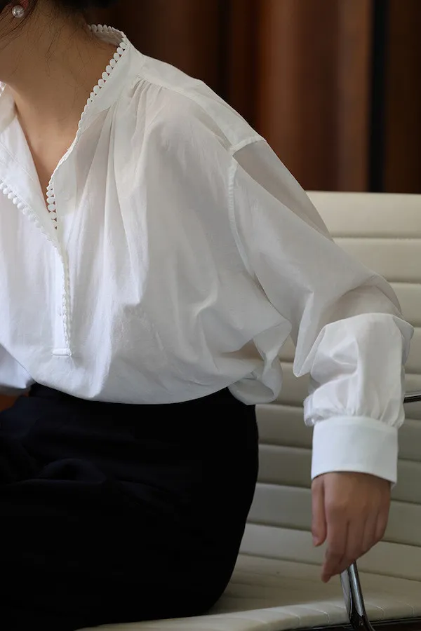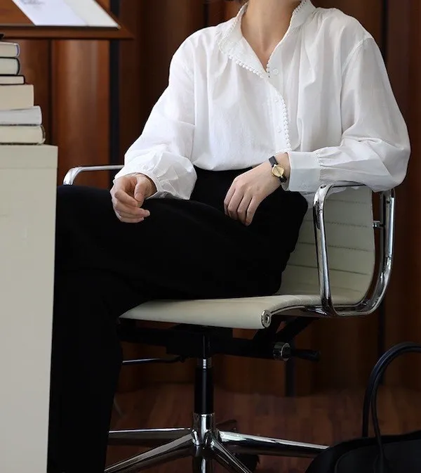 復古英倫 小立領寬鬆長袖襯衫