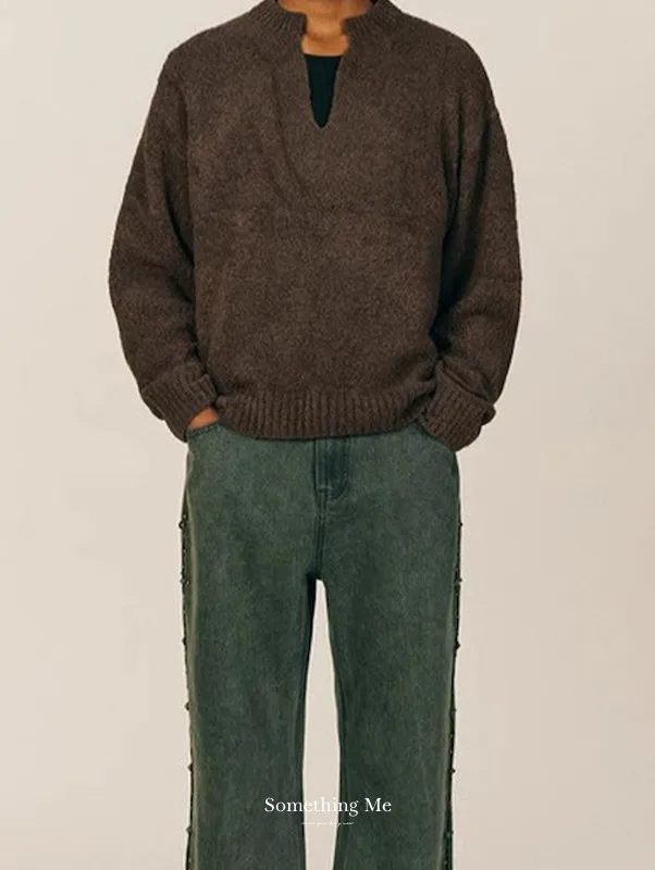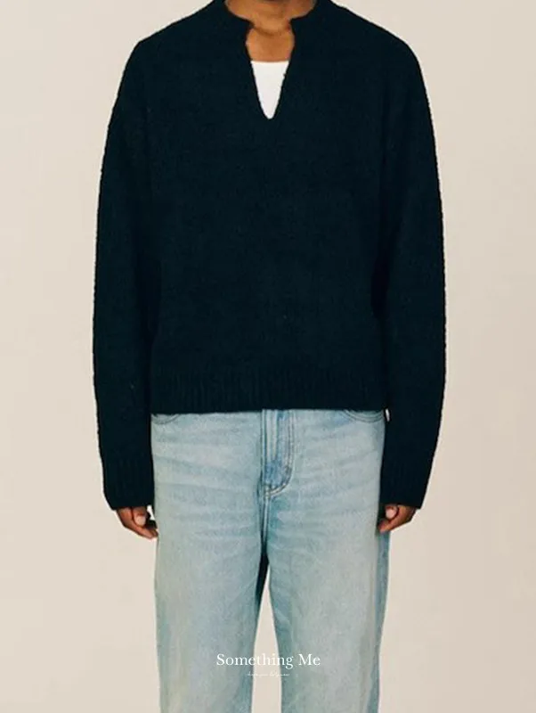 慵懶午後感寬鬆V領針織毛衣 2色