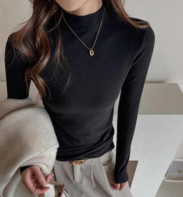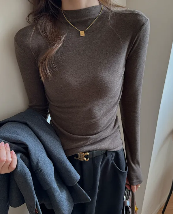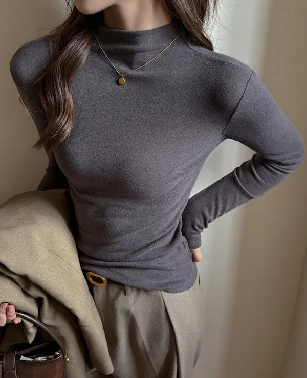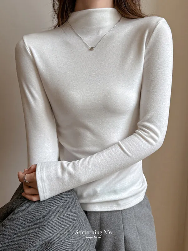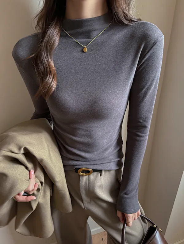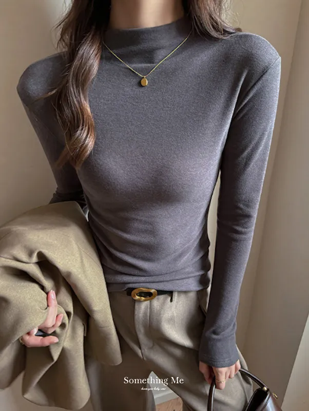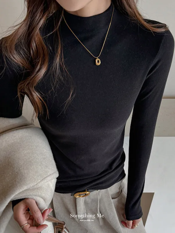 微暖磨毛。絲滑天絲半高領長袖上衣 6色