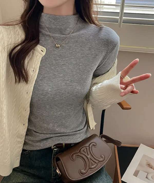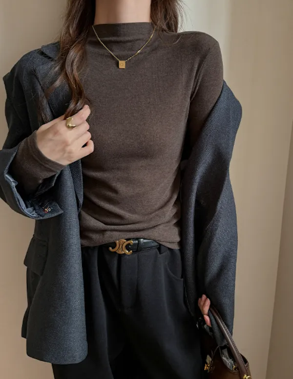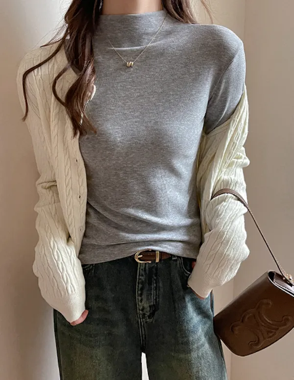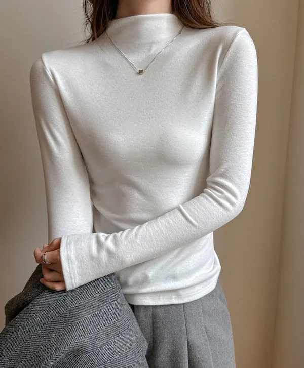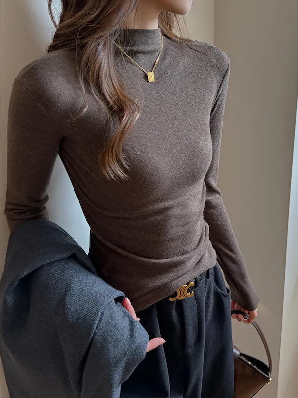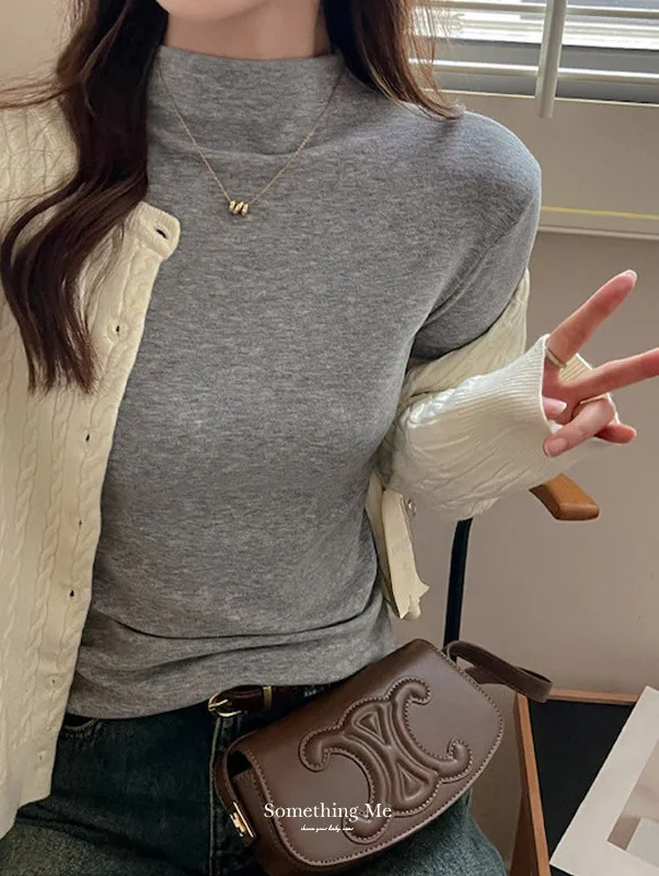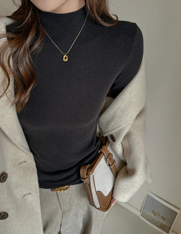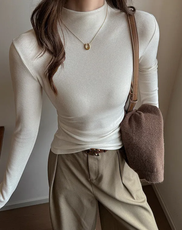 微暖磨毛。絲滑天絲半高領長袖上衣 6色