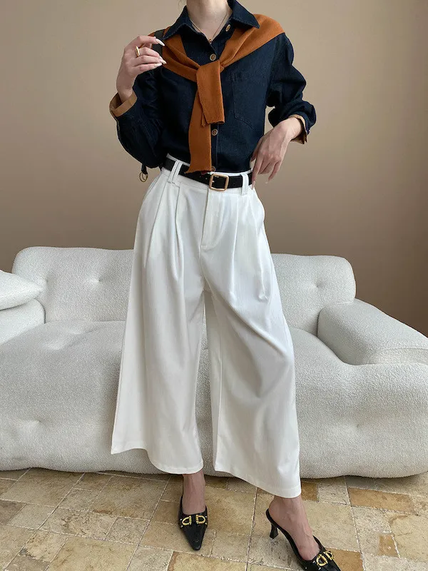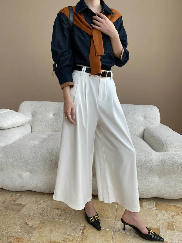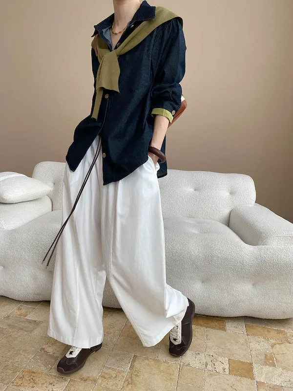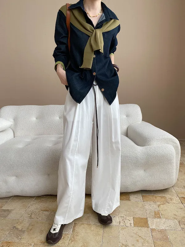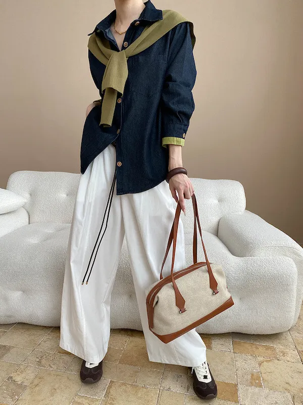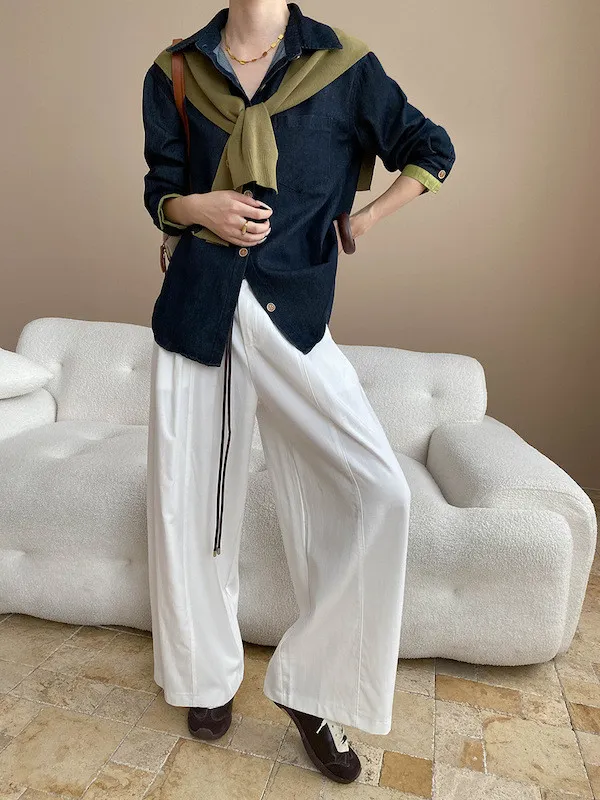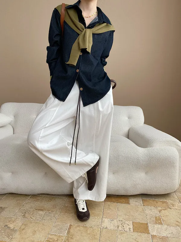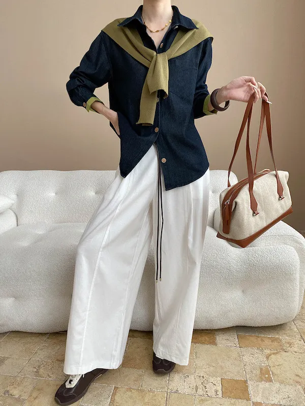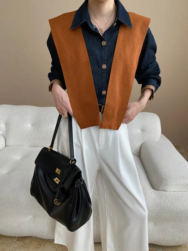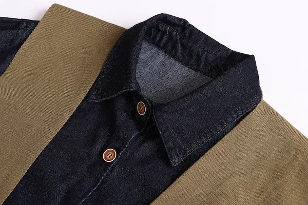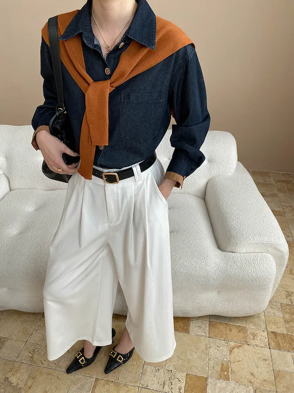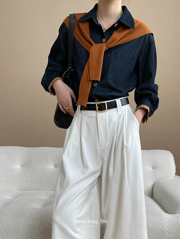復古撞色牛仔襯衫(附袖口同色系披肩) 2色