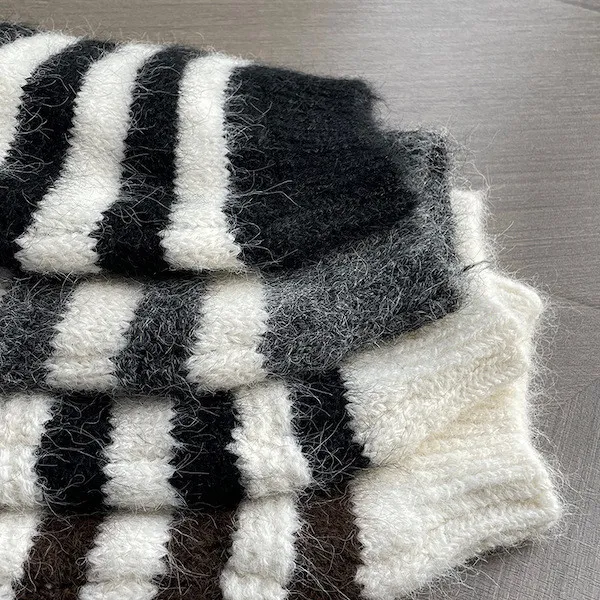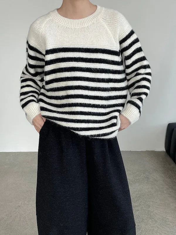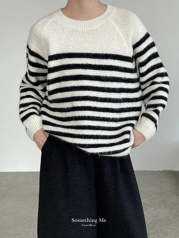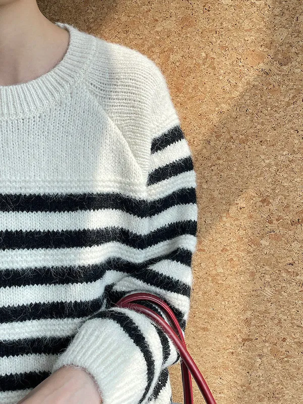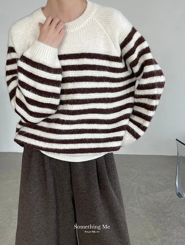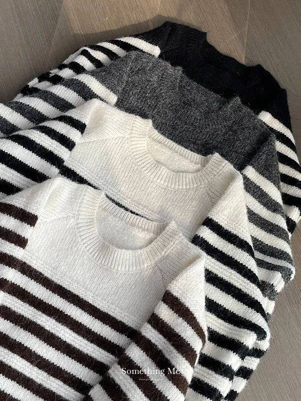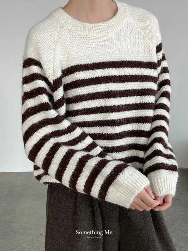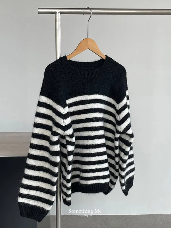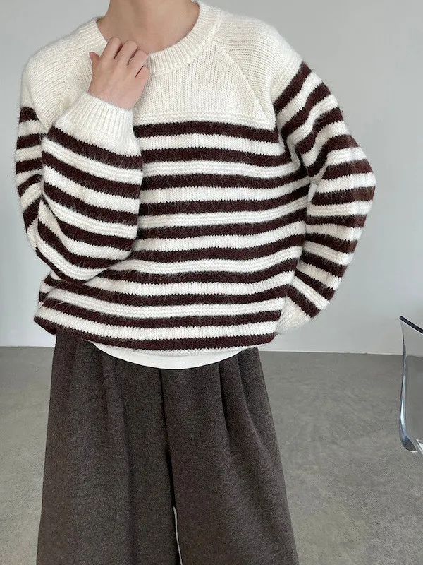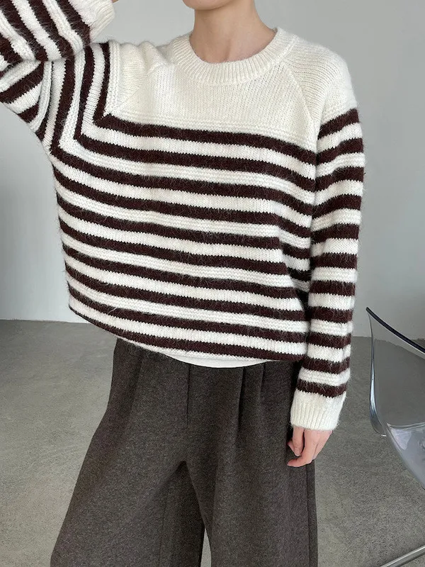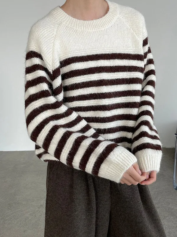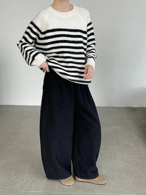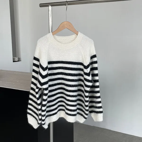 悠閒週末感 寬鬆撞色條紋羊毛針織毛衣 4色