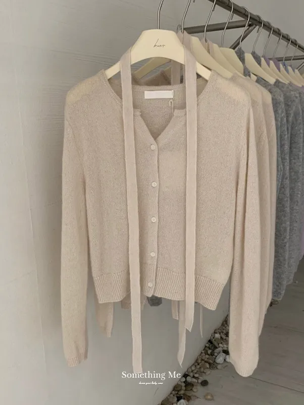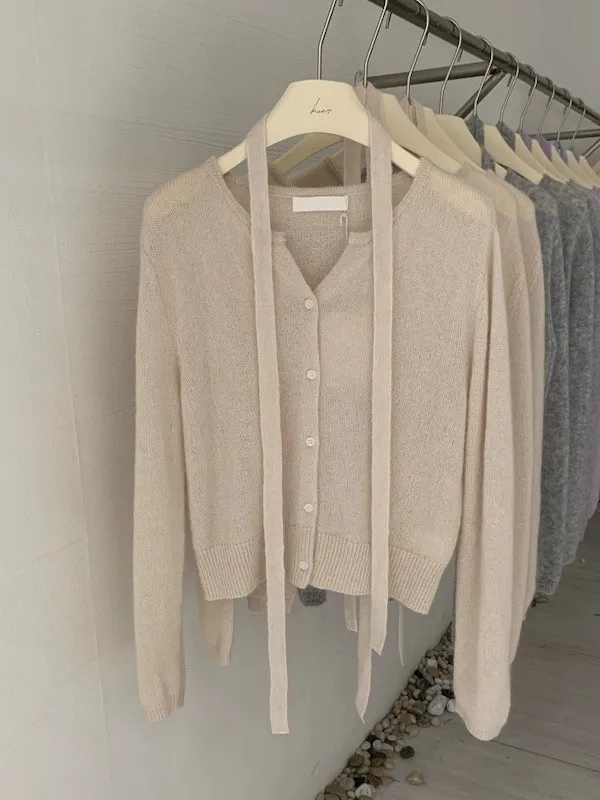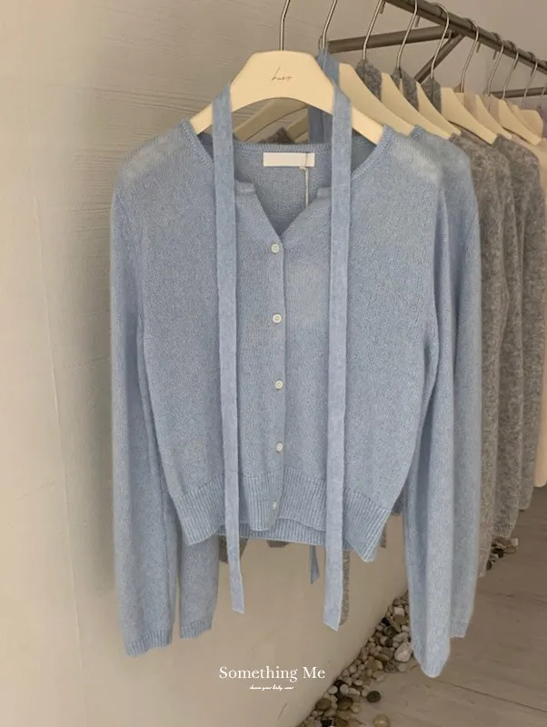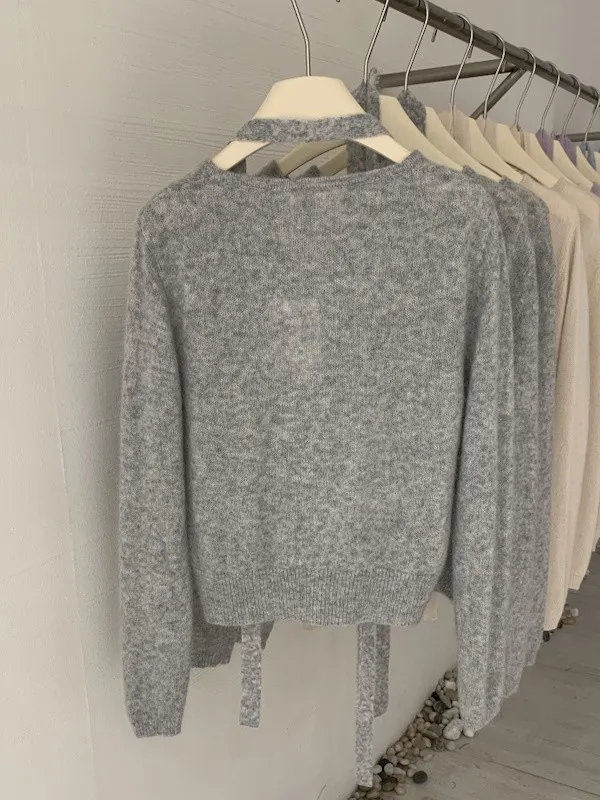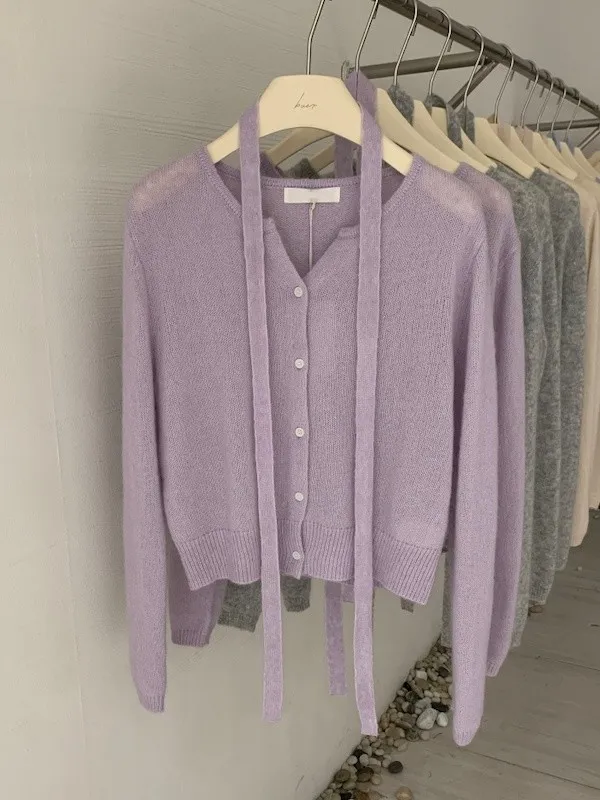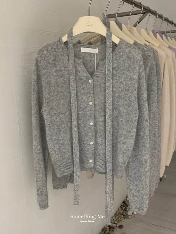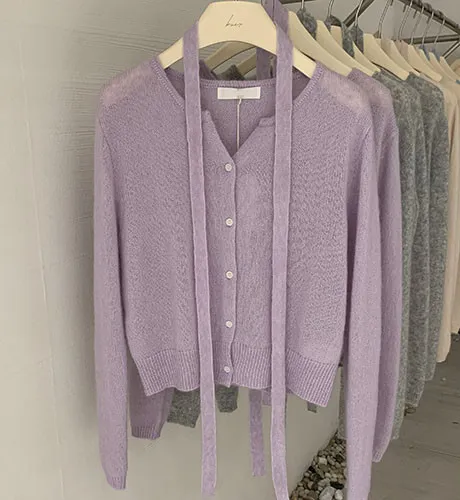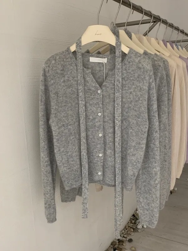 50%羊毛.馬海羊毛針織開衫(附繫帶)