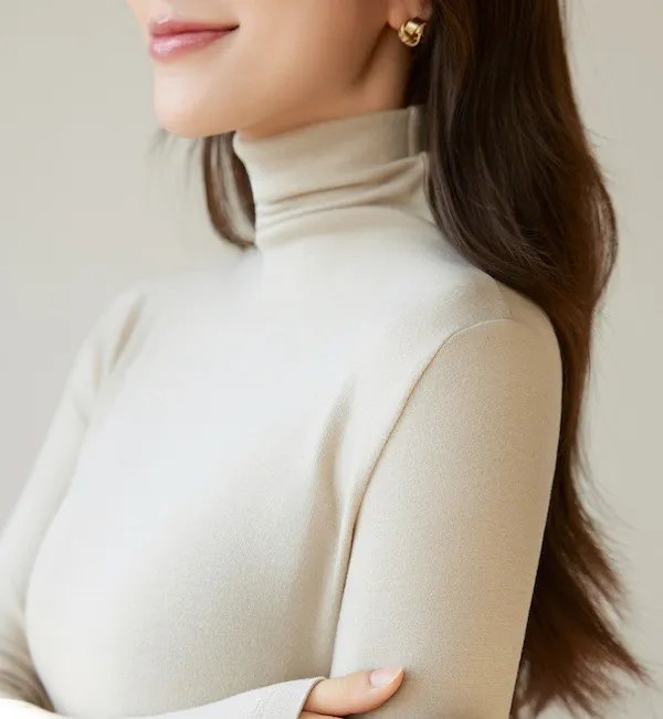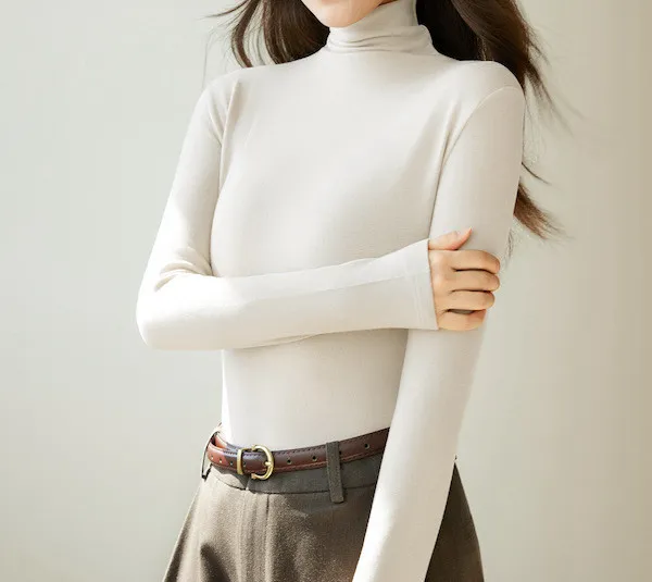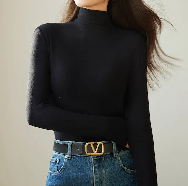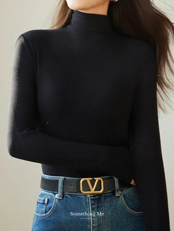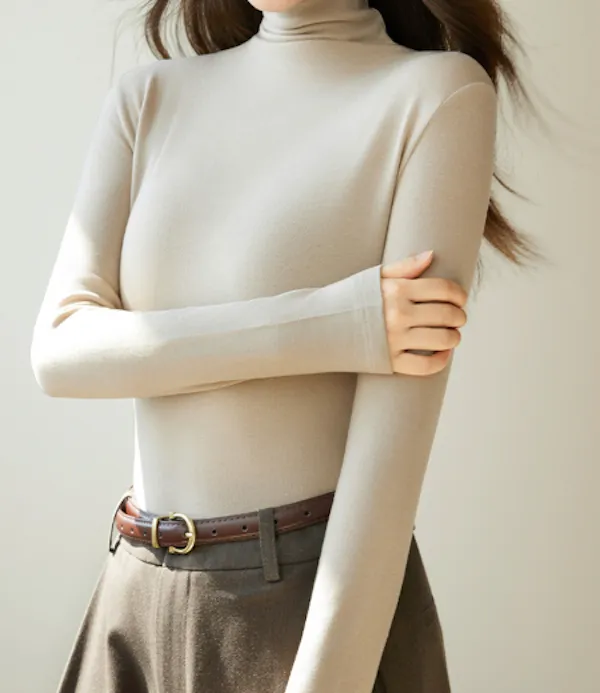 高級萊塞爾。德絨合身高領內搭上衣 4色