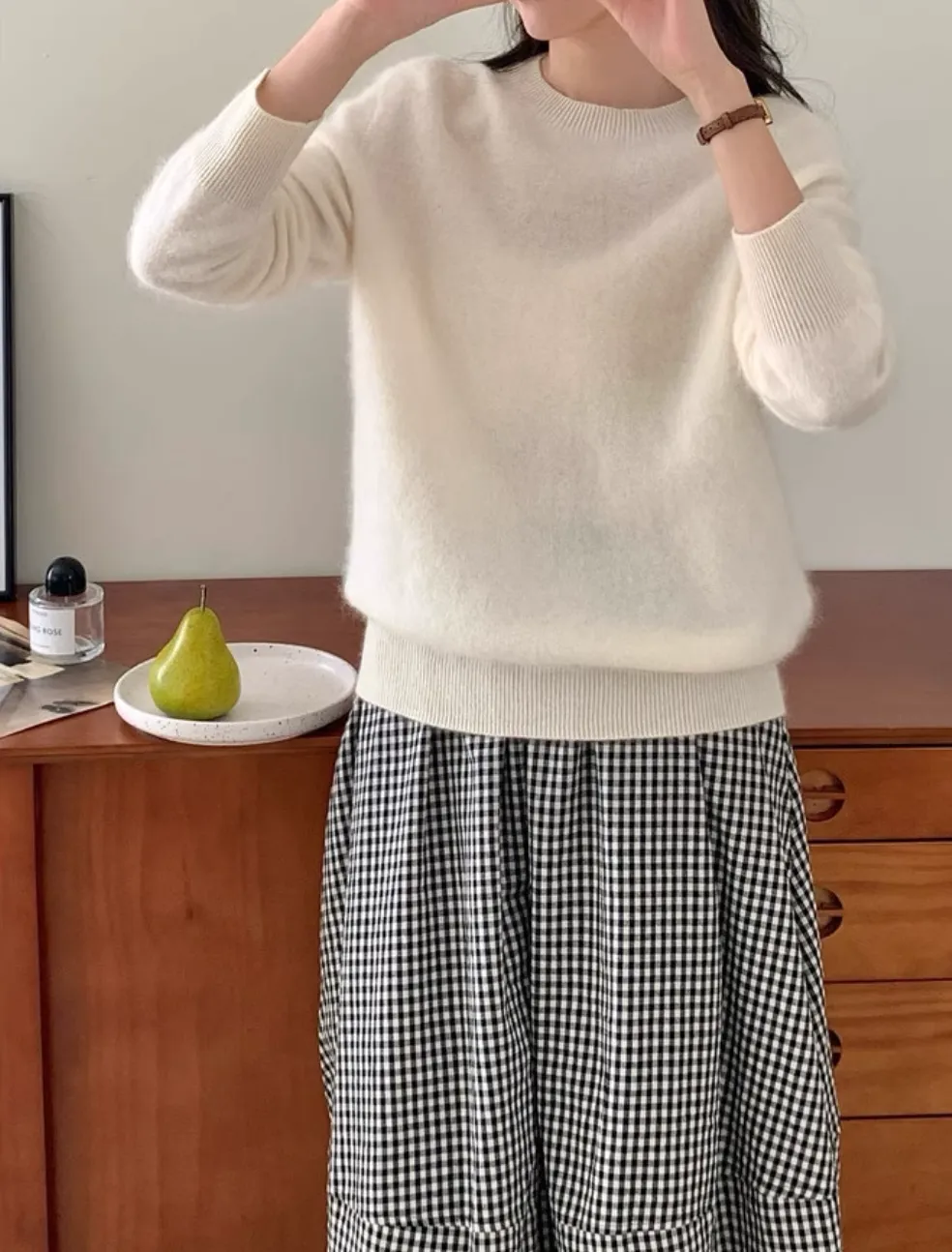 這件毛衣觸感真的很舒服,羊毛的布料摸起來細細柔柔的