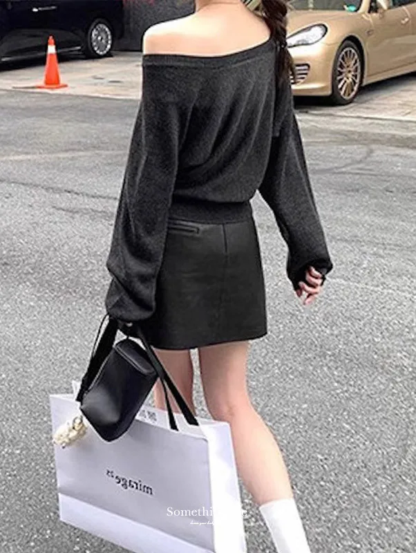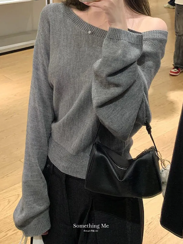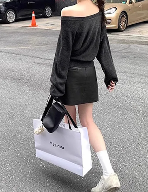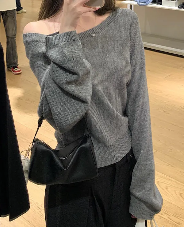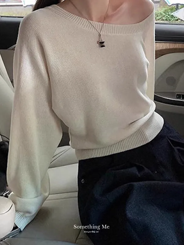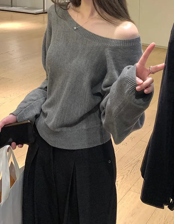 微性感斜肩一字領針織衫 3色