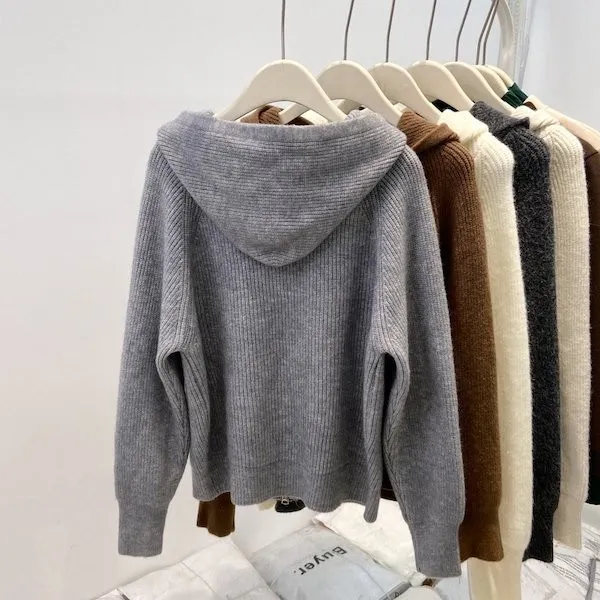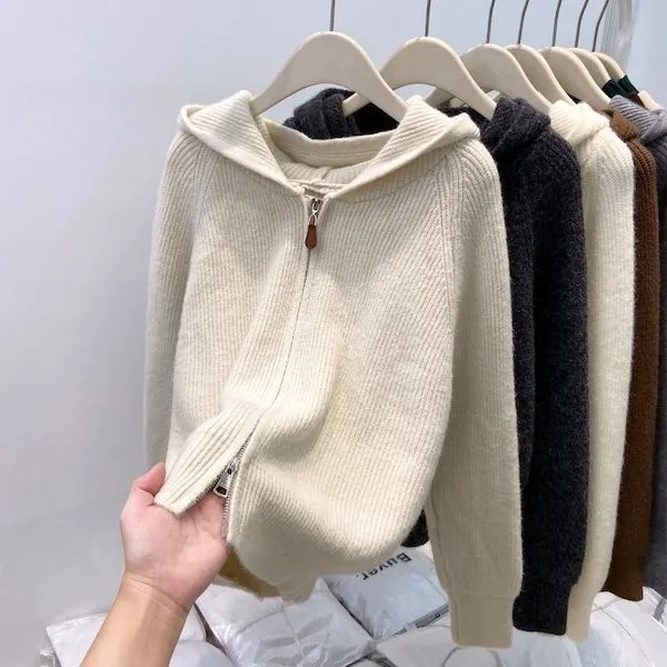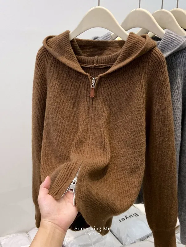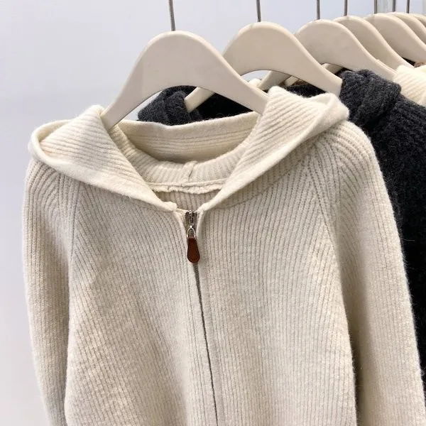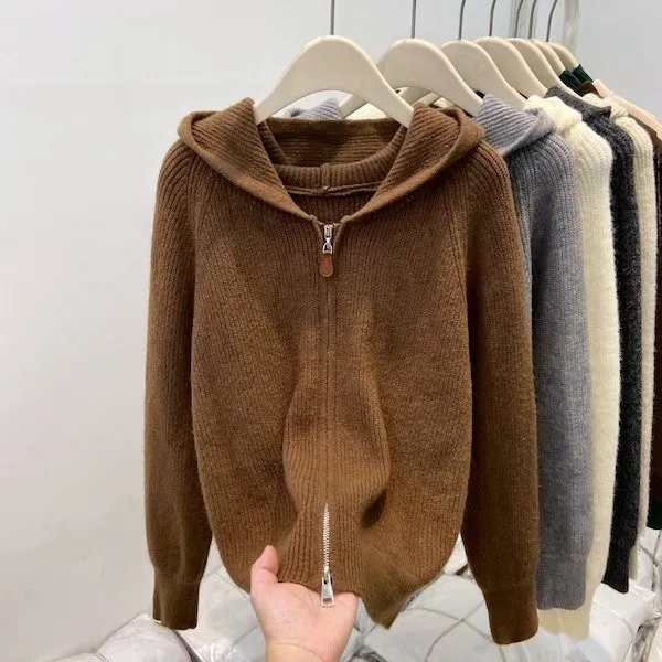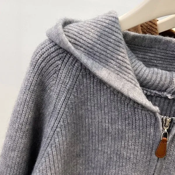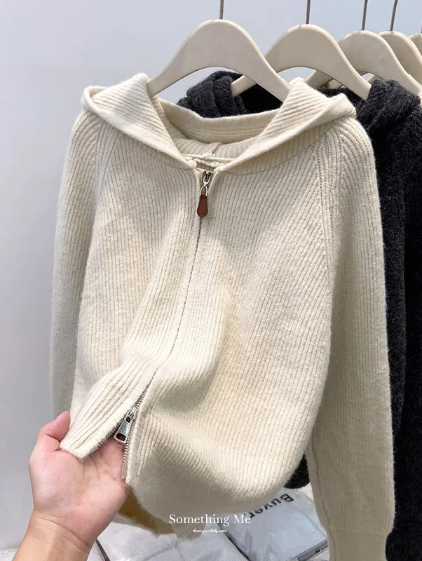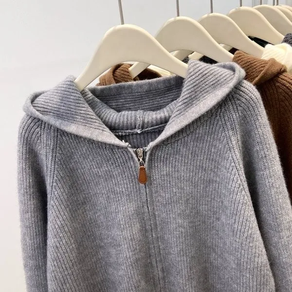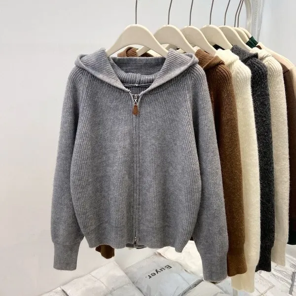 老錢風連帽雙拉鍊針織上衣 5色