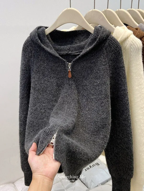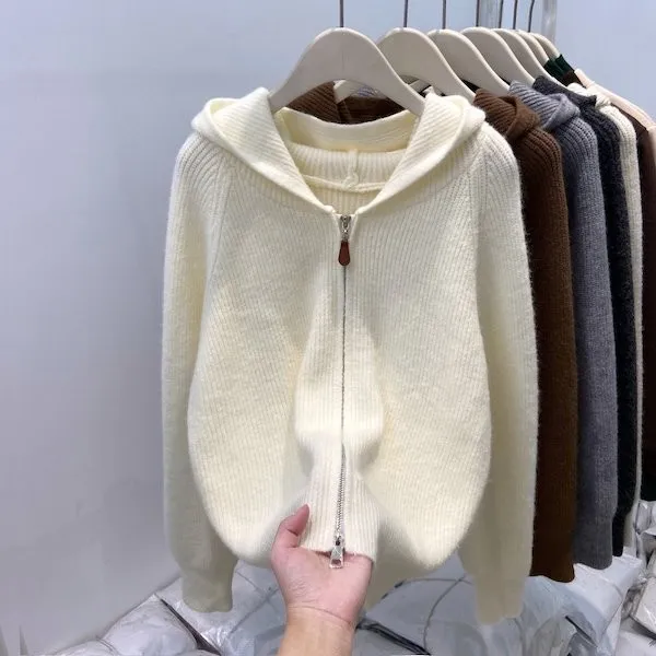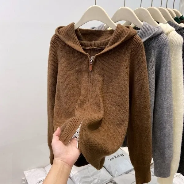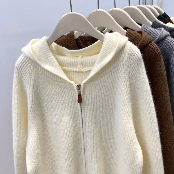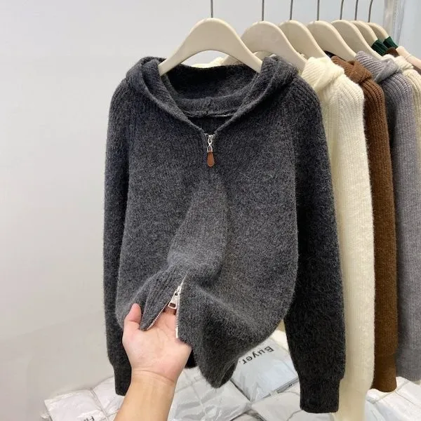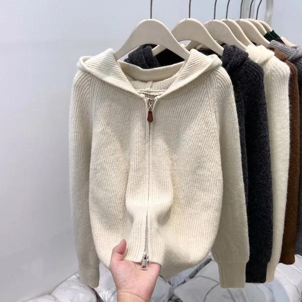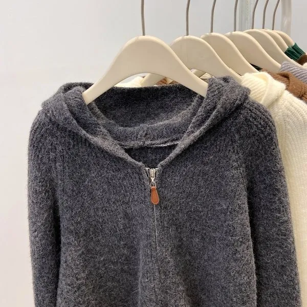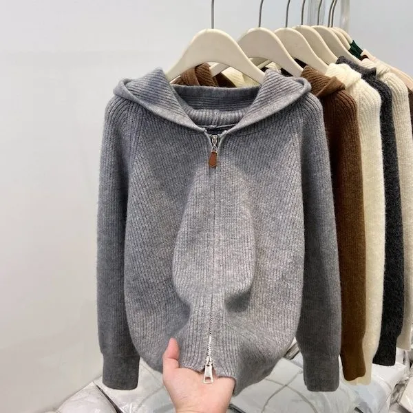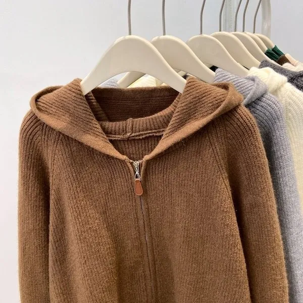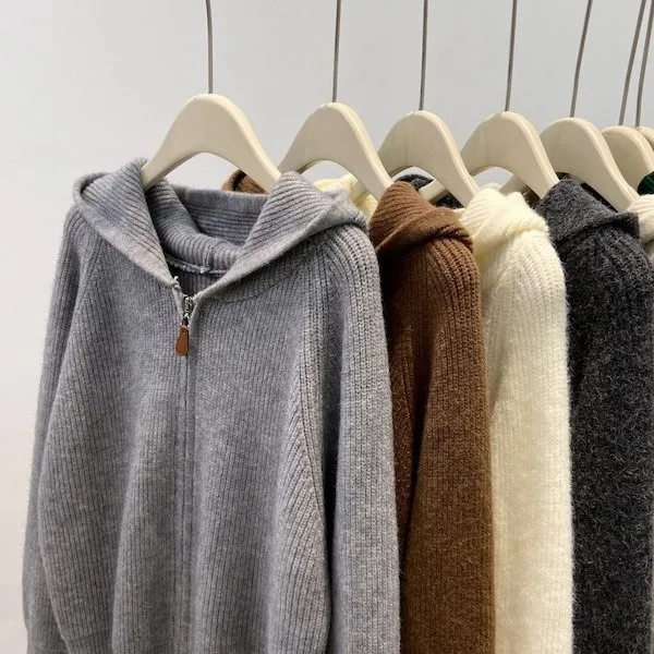 老錢風連帽雙拉鍊針織上衣 5色