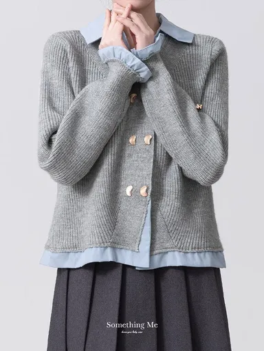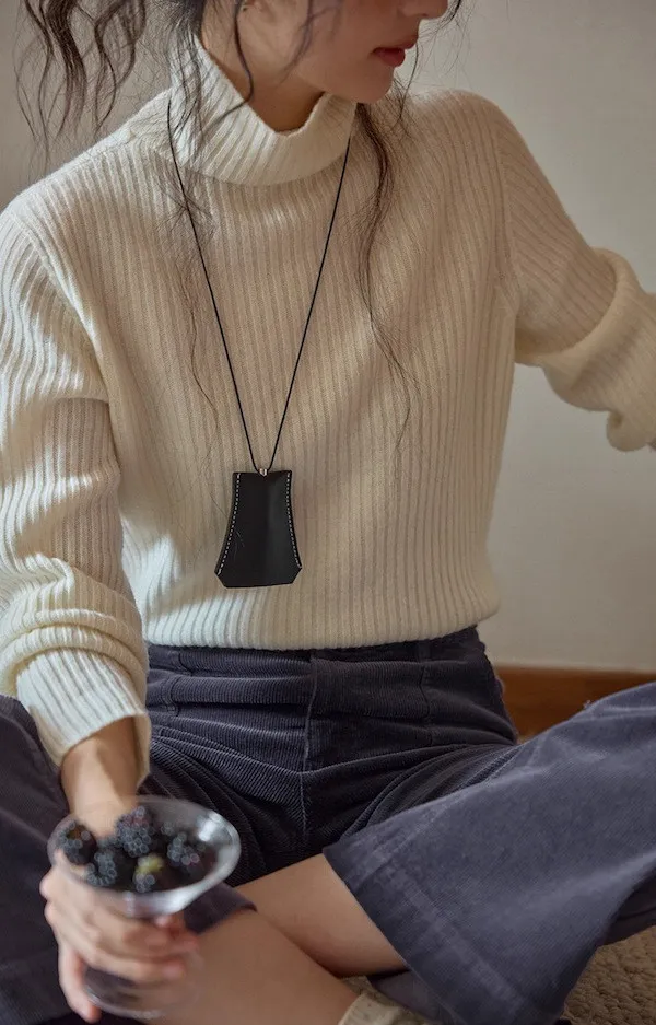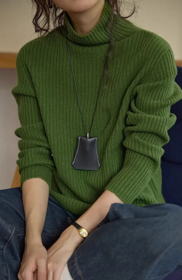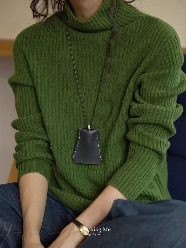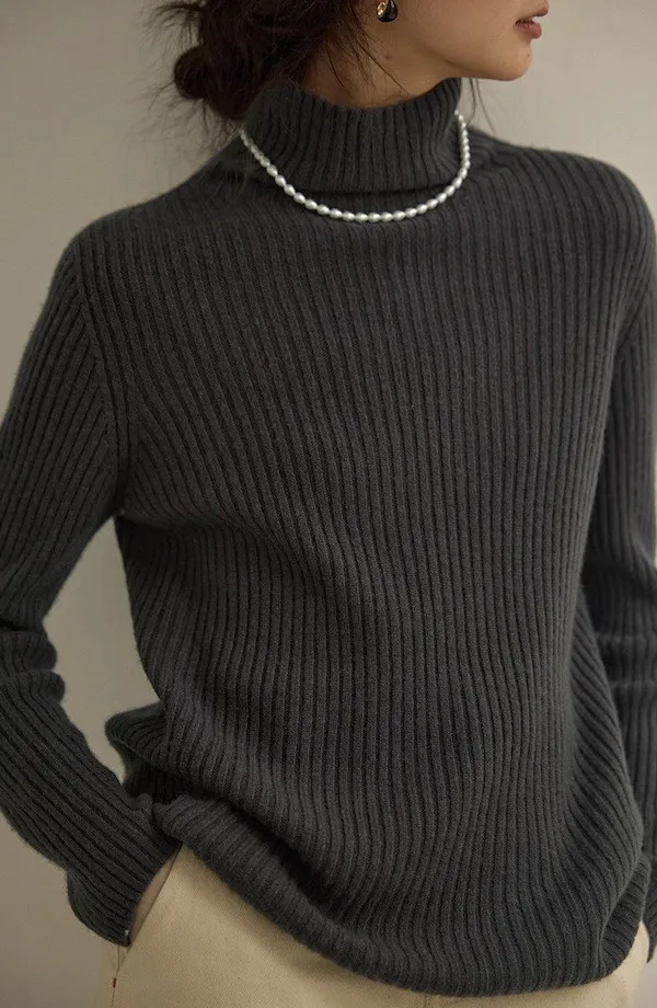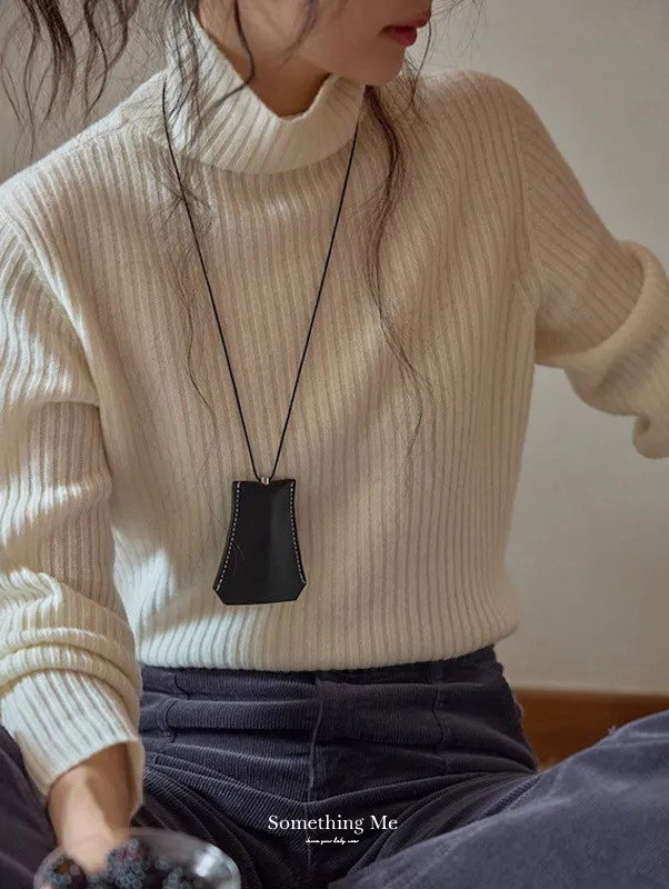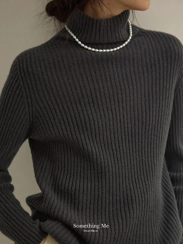 羊毛高領粗坑條針織上衣 3色