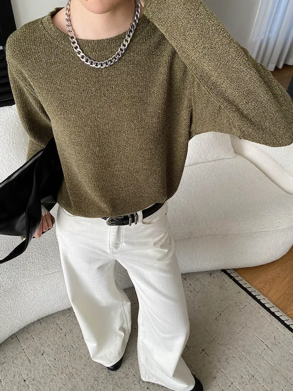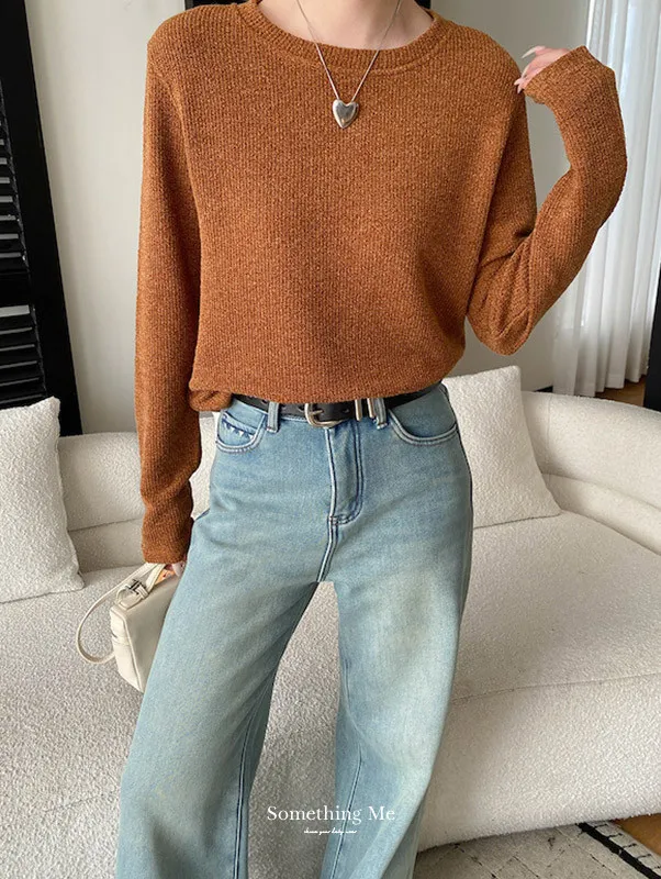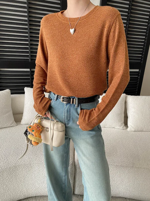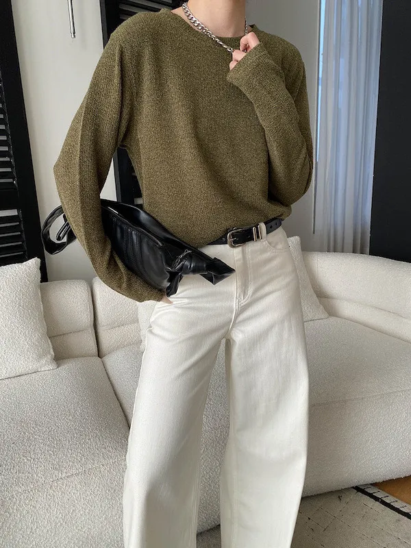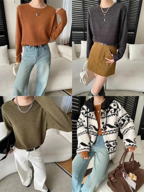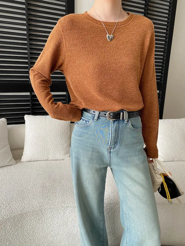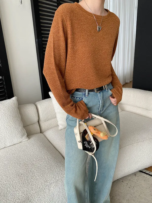 慵懶風圓領寬鬆顯瘦針織衫 3色