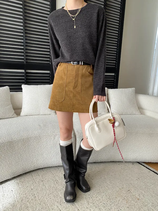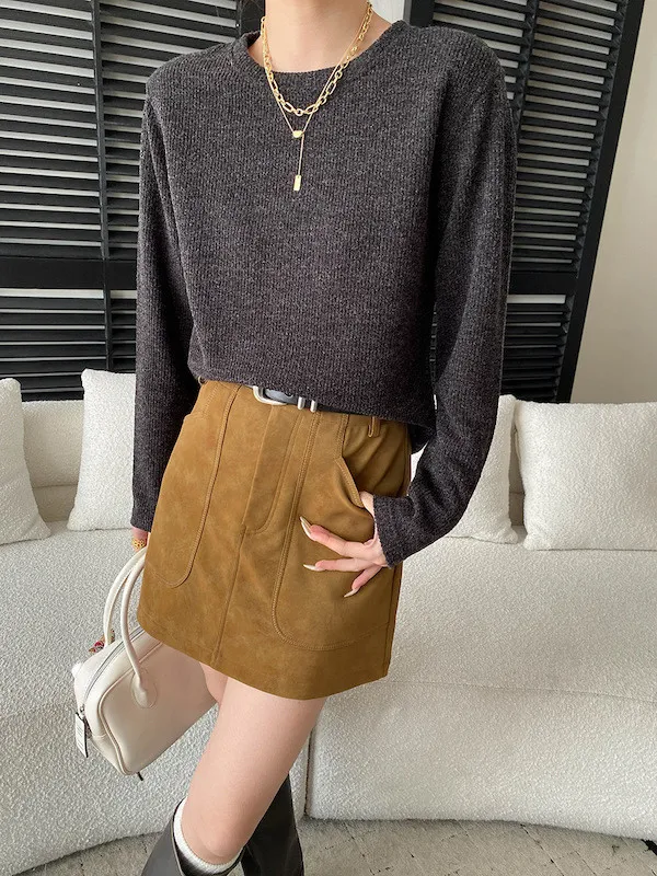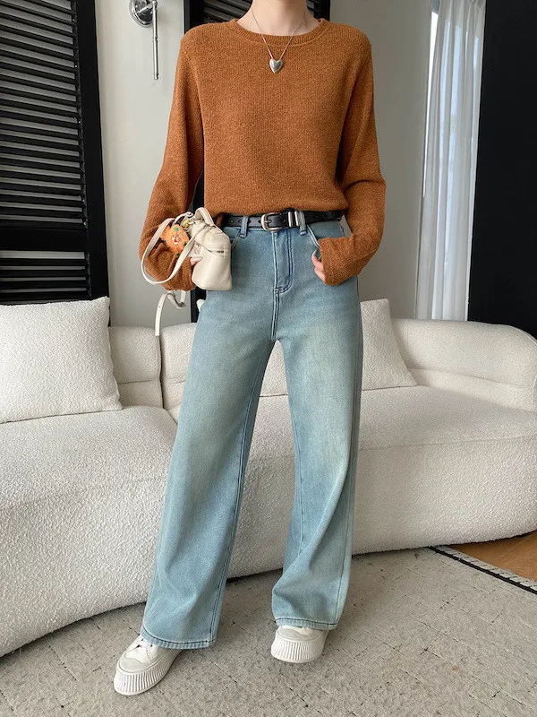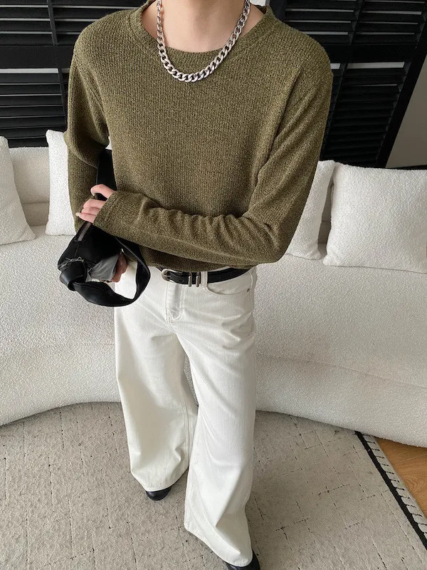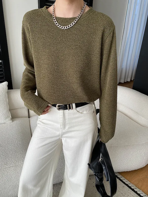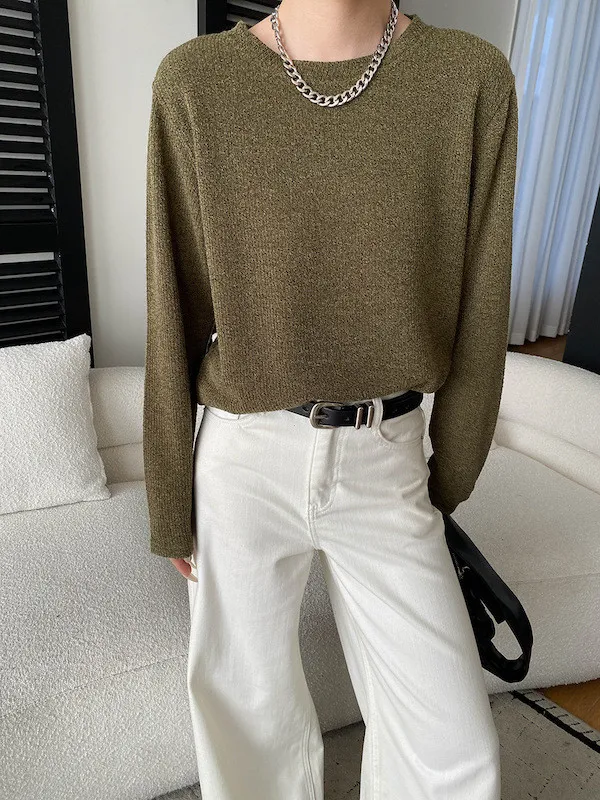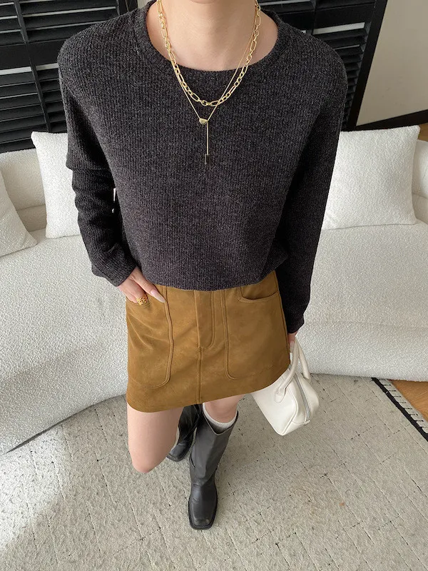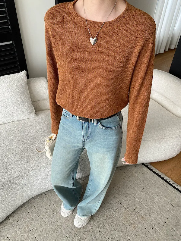慵懶風圓領寬鬆顯瘦針織衫 3色