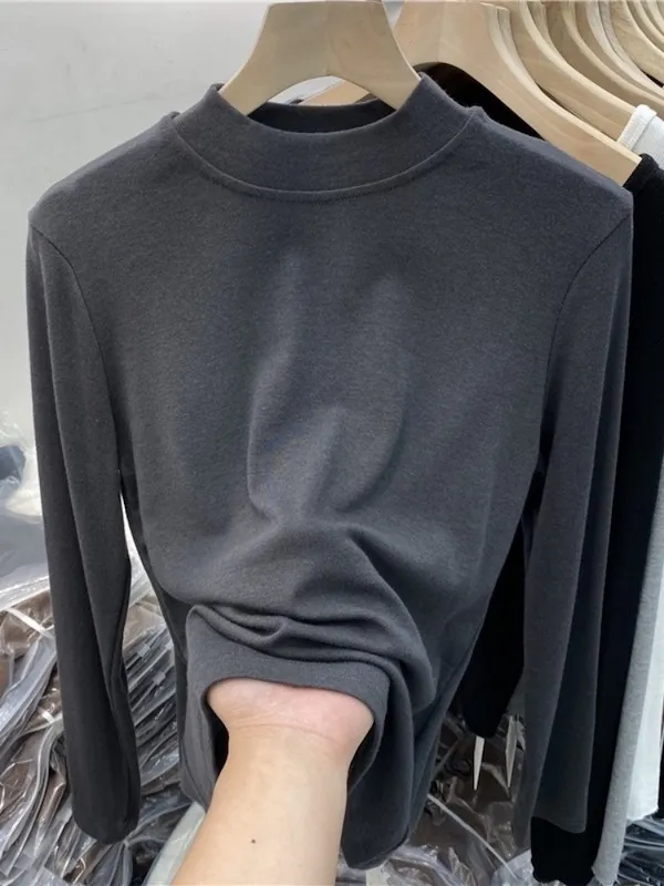 微暖磨毛.質感小立領薄絨上衣 5色