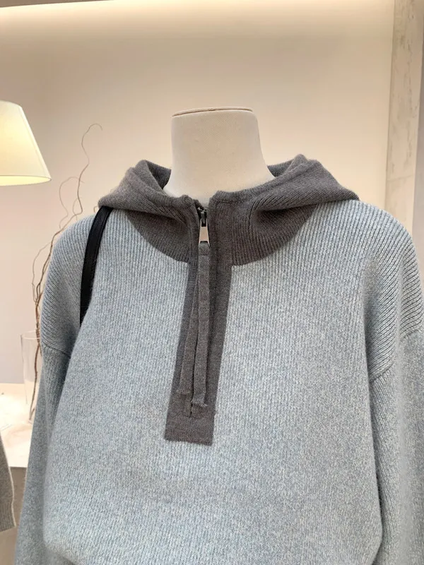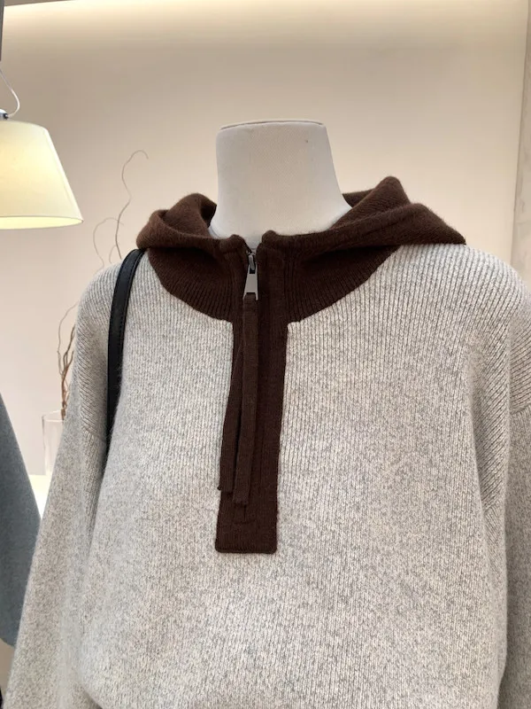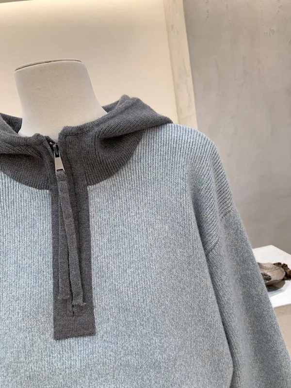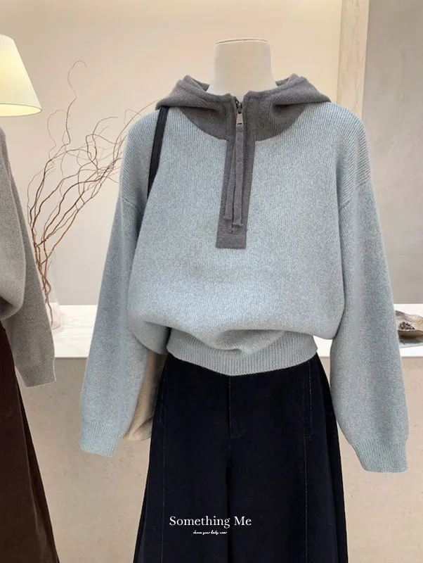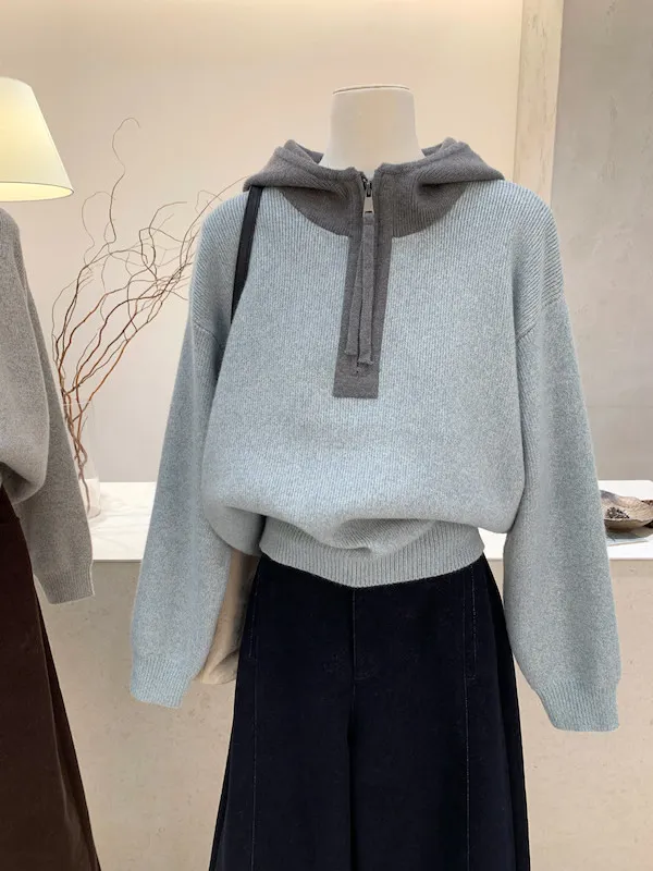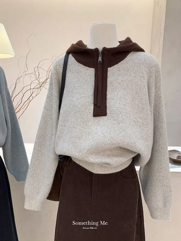 韓系拼色|City Boy半拉鍊連帽針織毛衣 2色