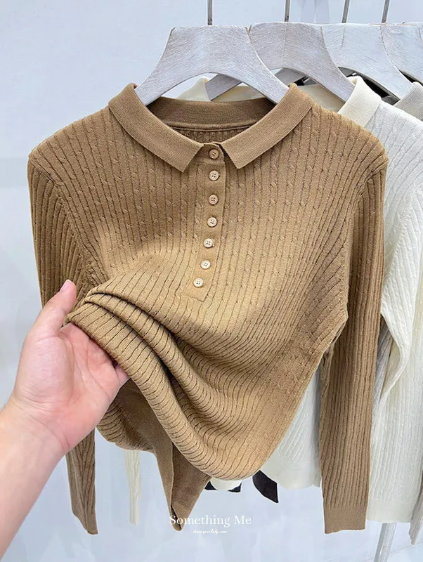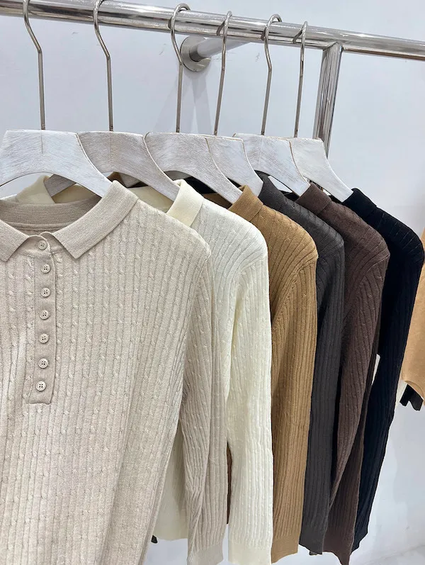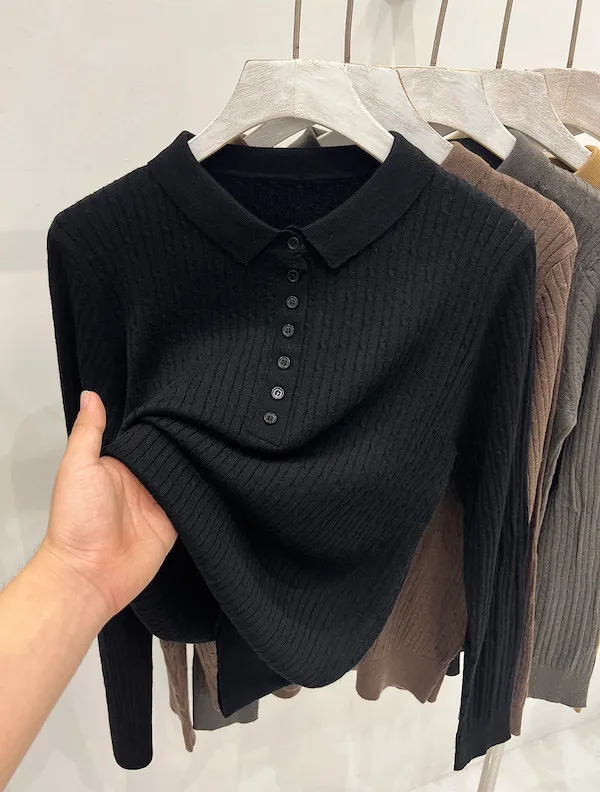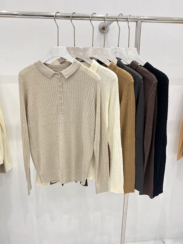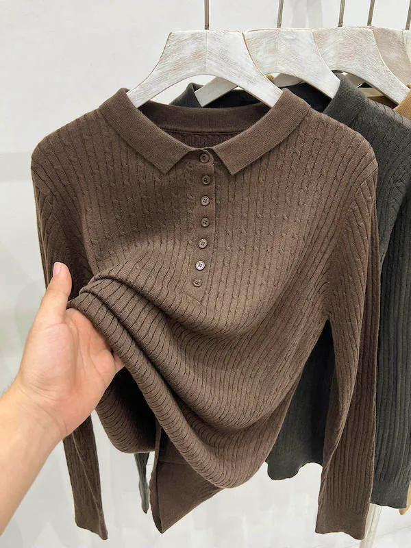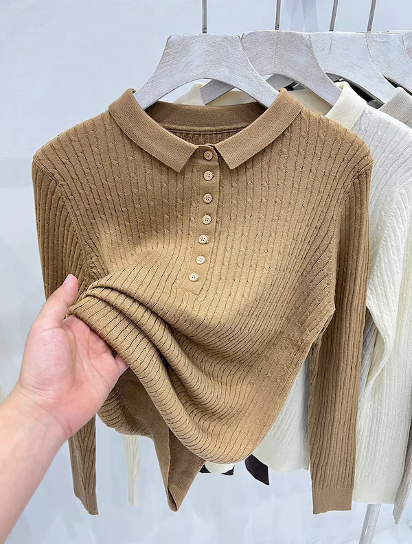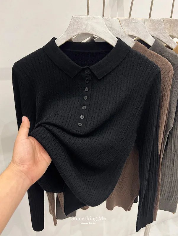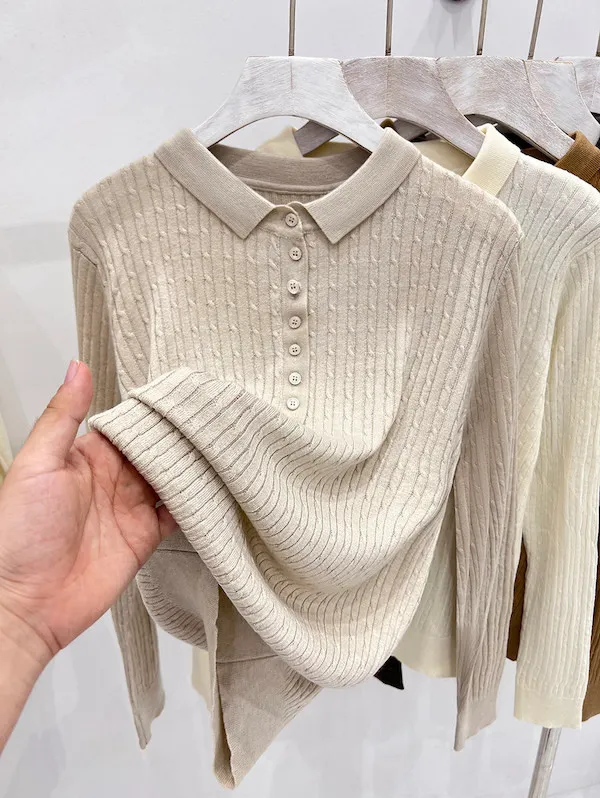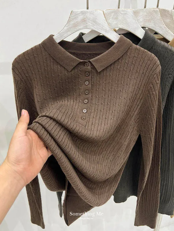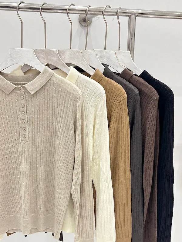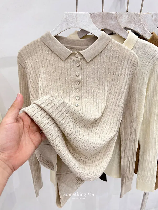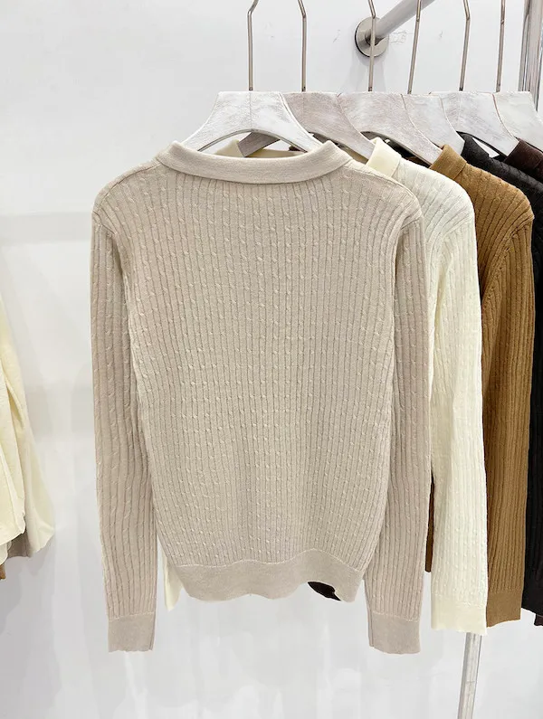 優雅老錢風|麻花 POLO 領修身針織上衣 4色