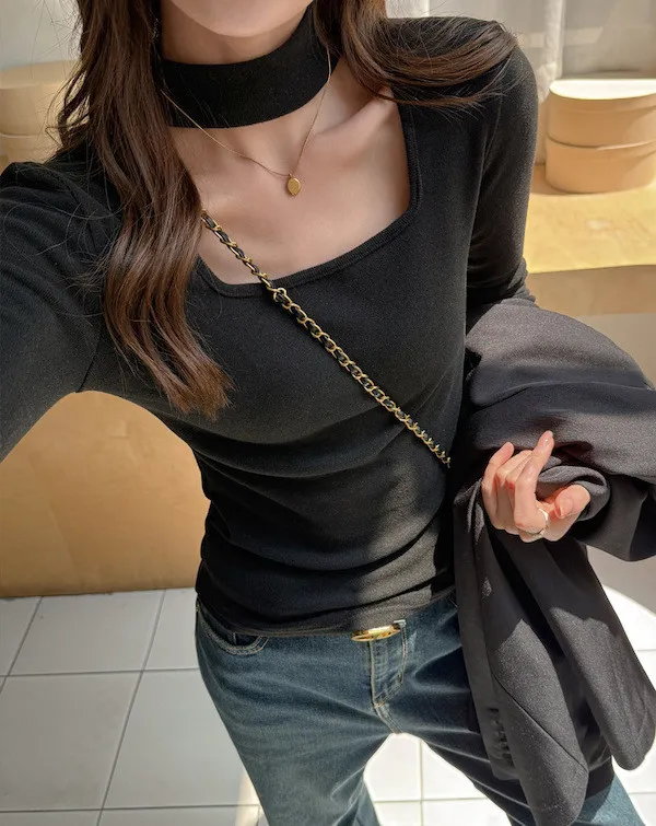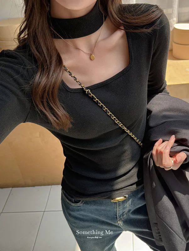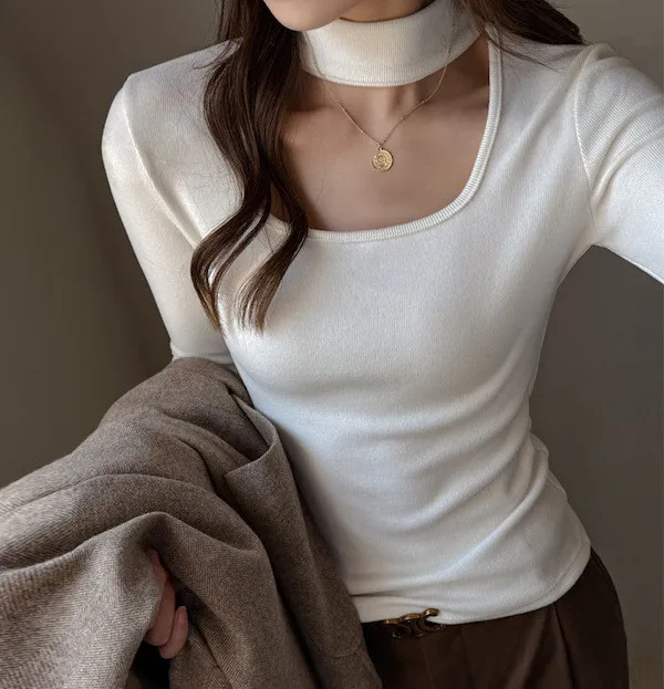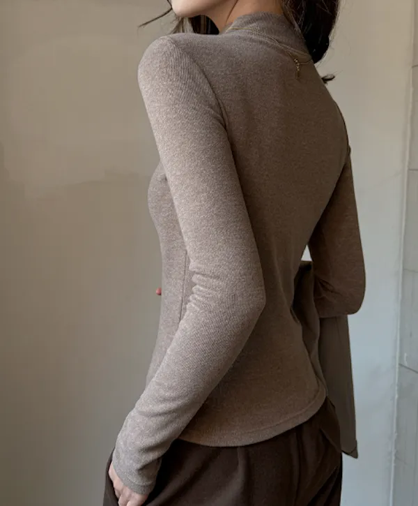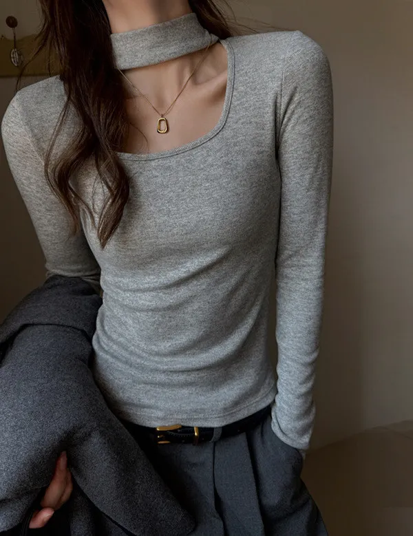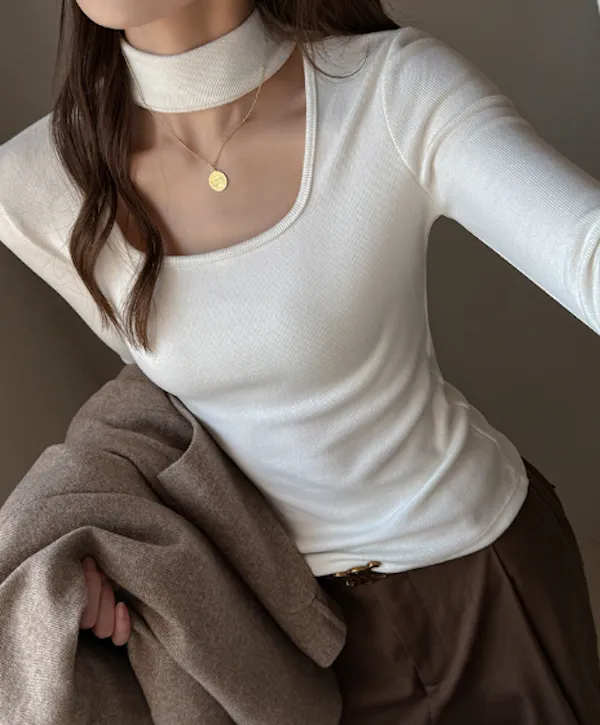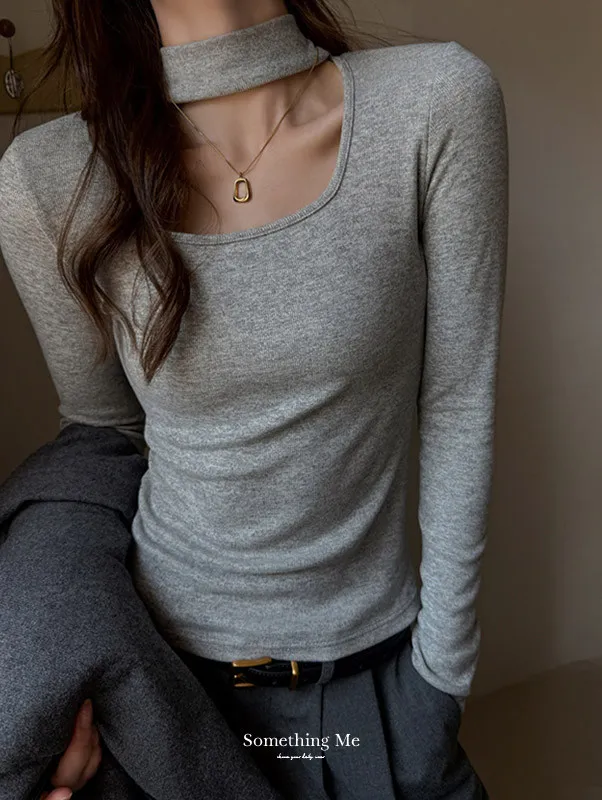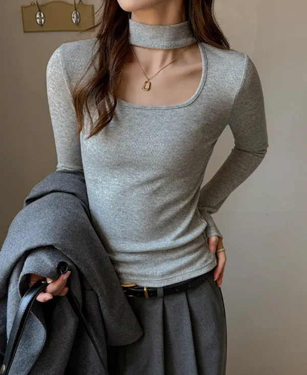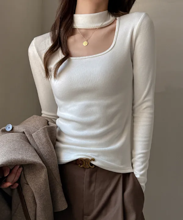 微醺感|仿羊絨中領鏤空修身T恤 5色