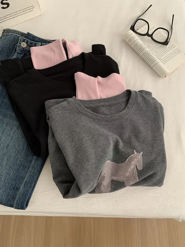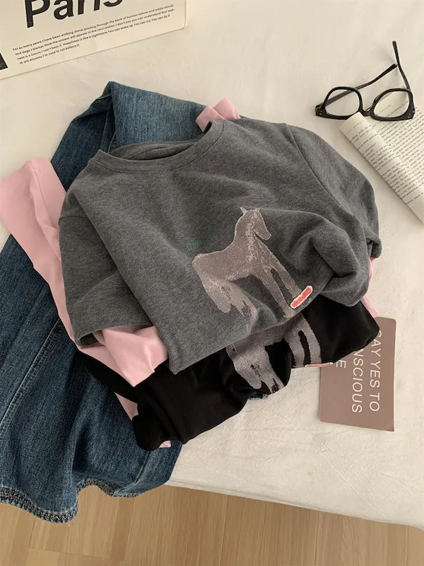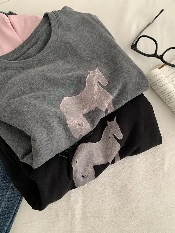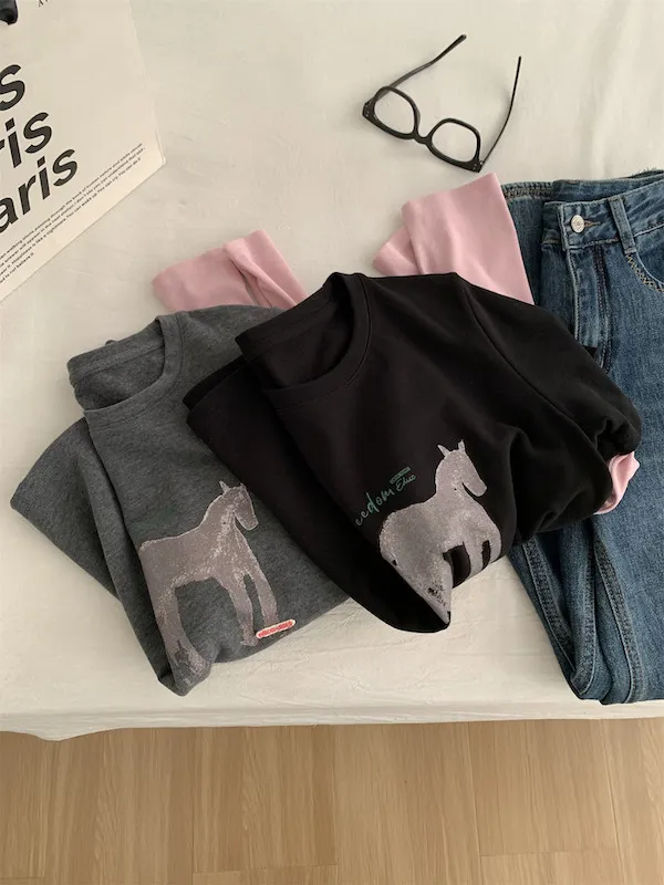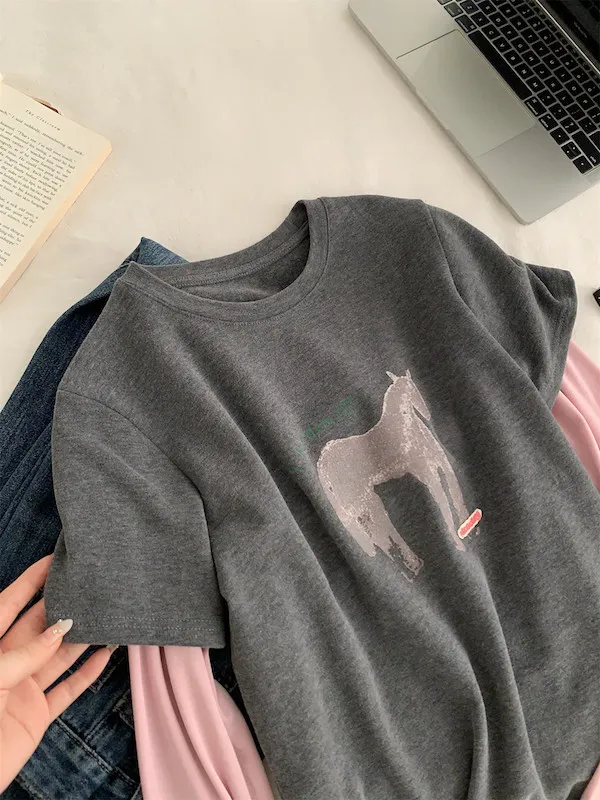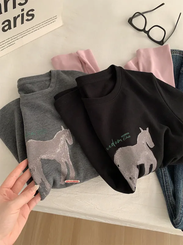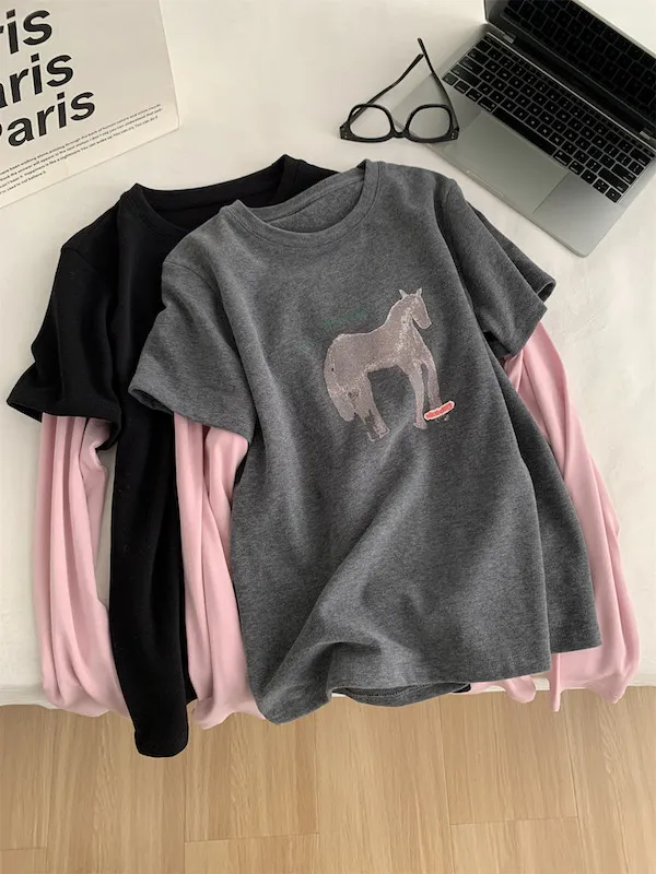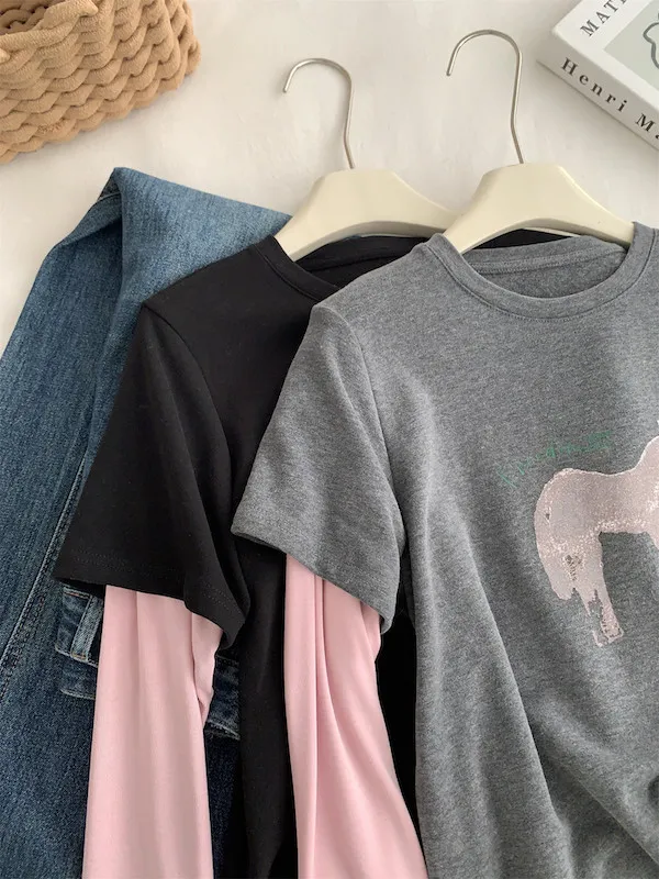 美式復古。假兩件小馬印花T恤 2色