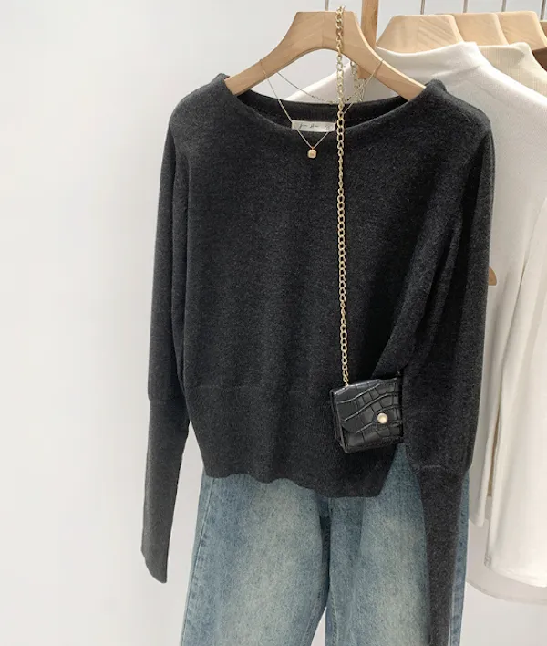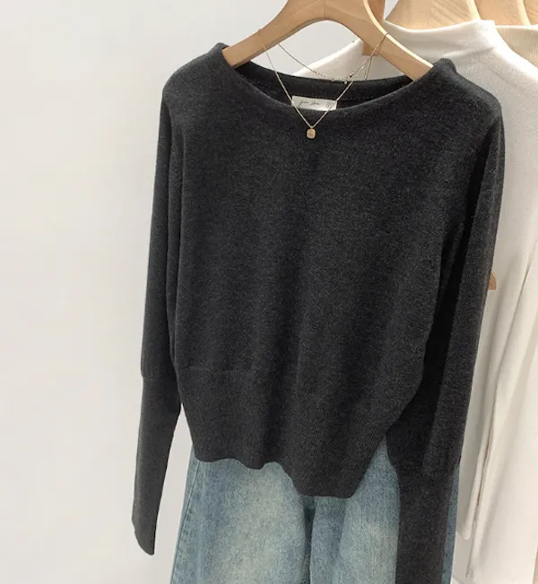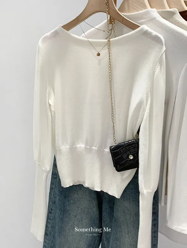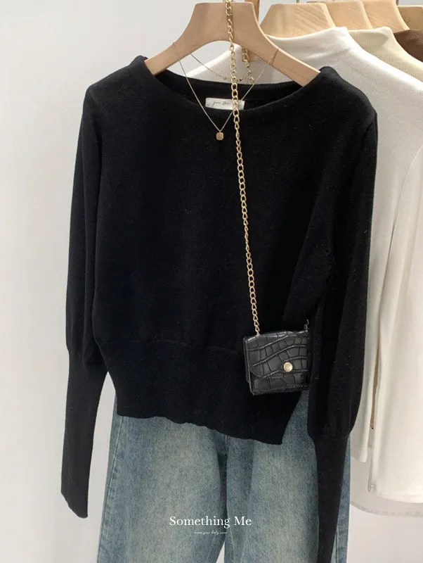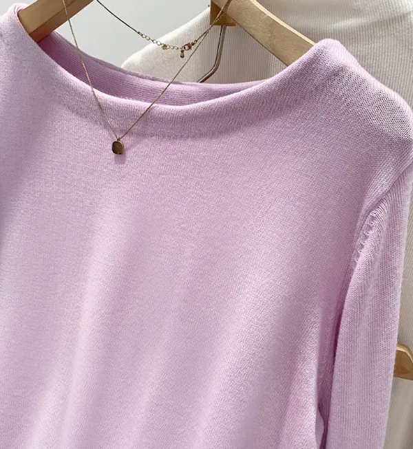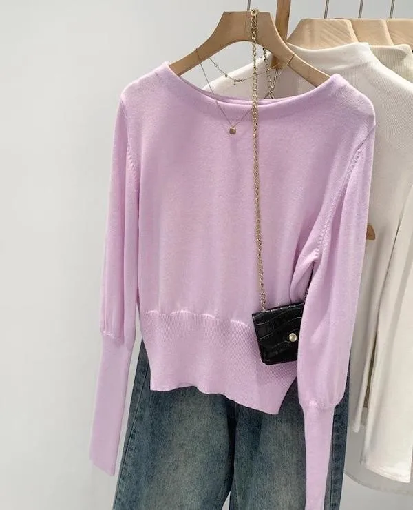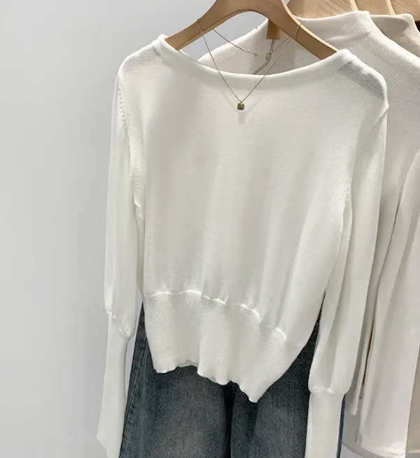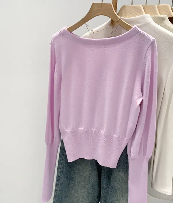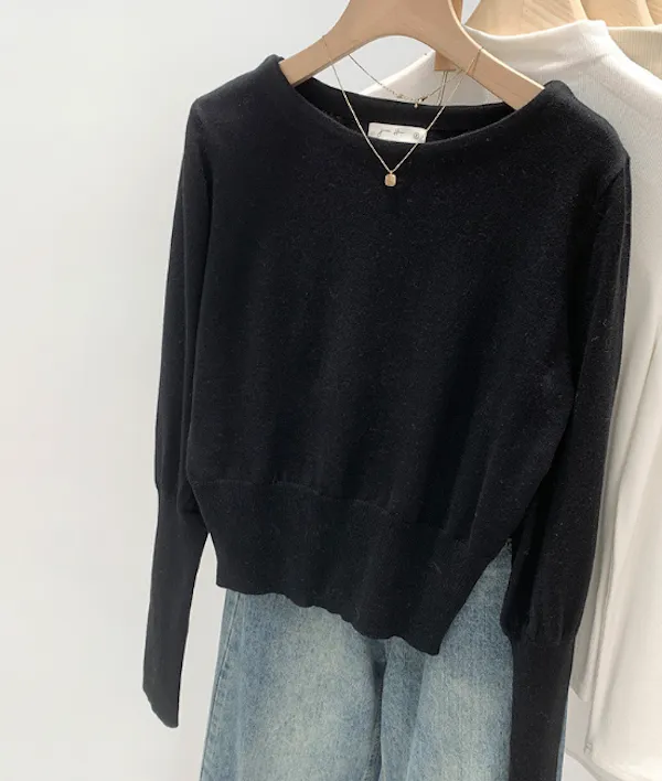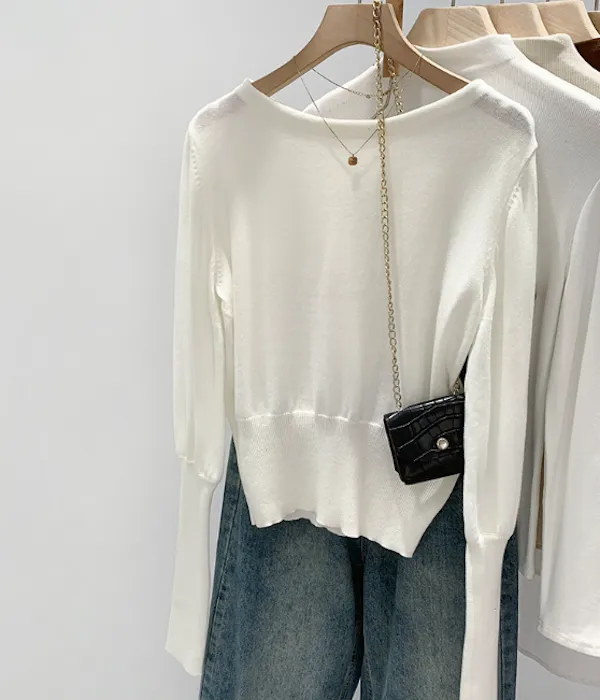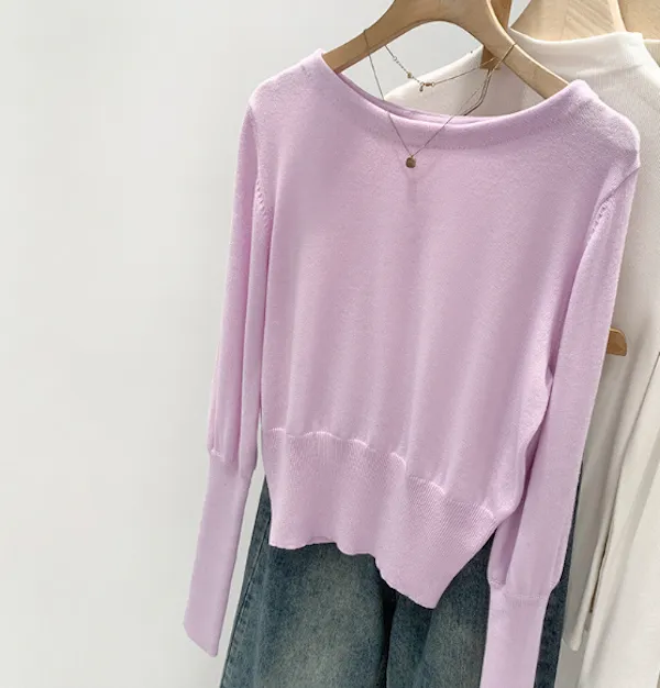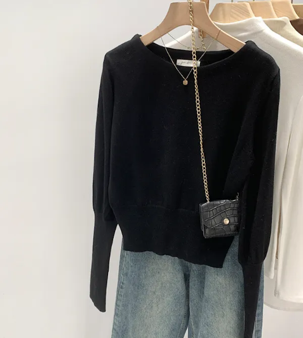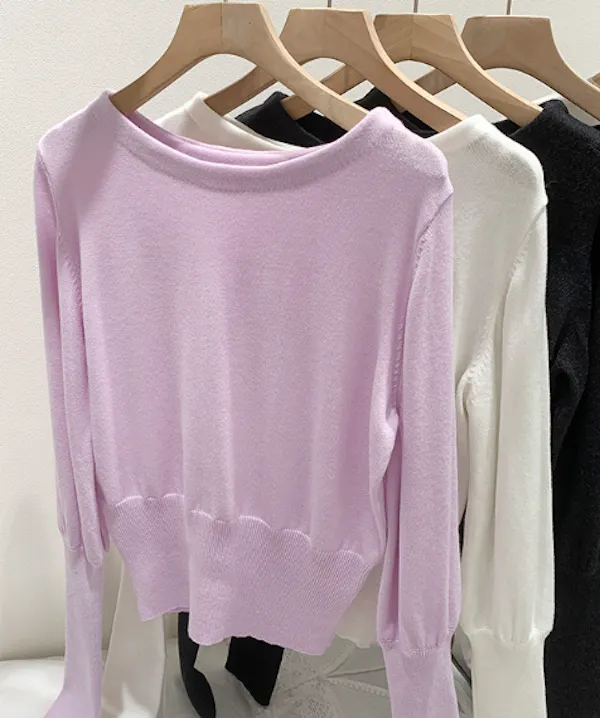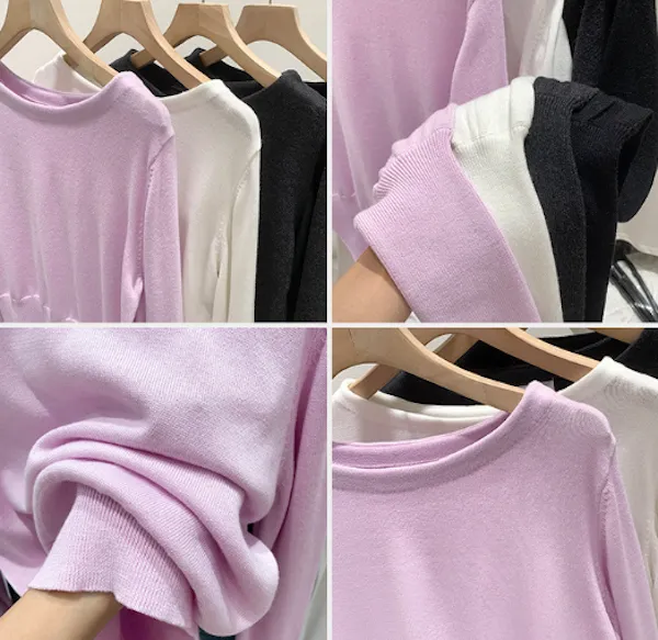 圓領縮口長袖針織上衣4色