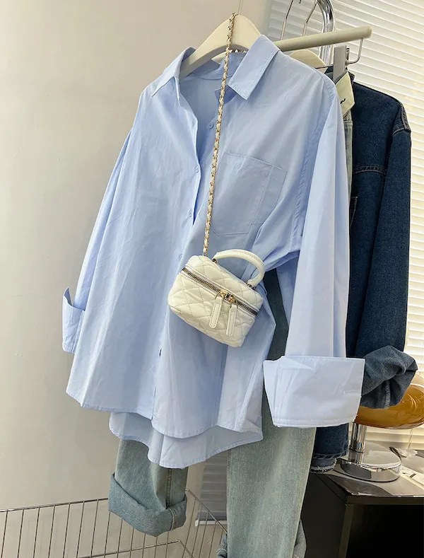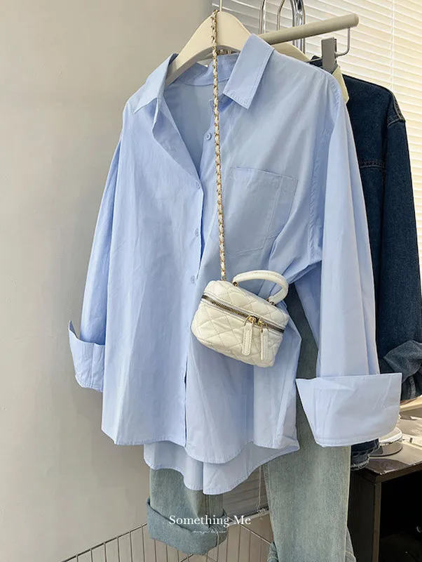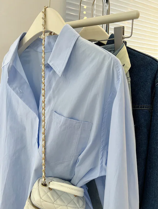 隨性疊穿純色長袖襯衫 2色