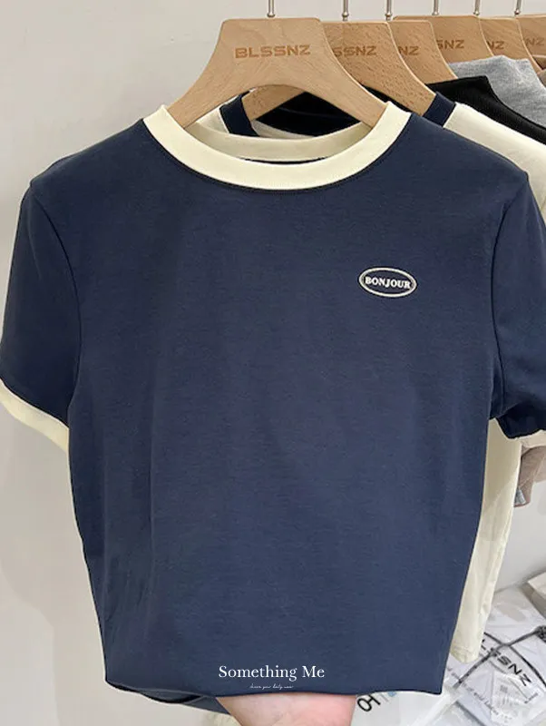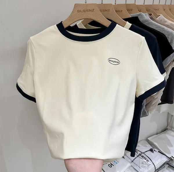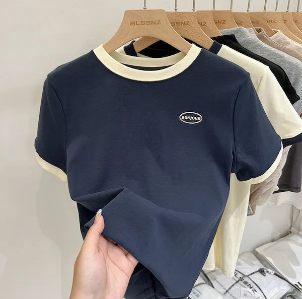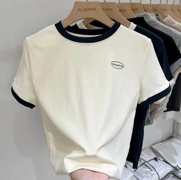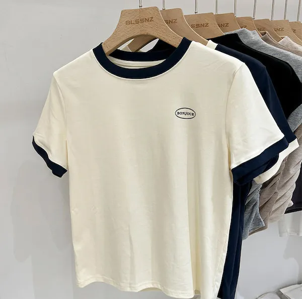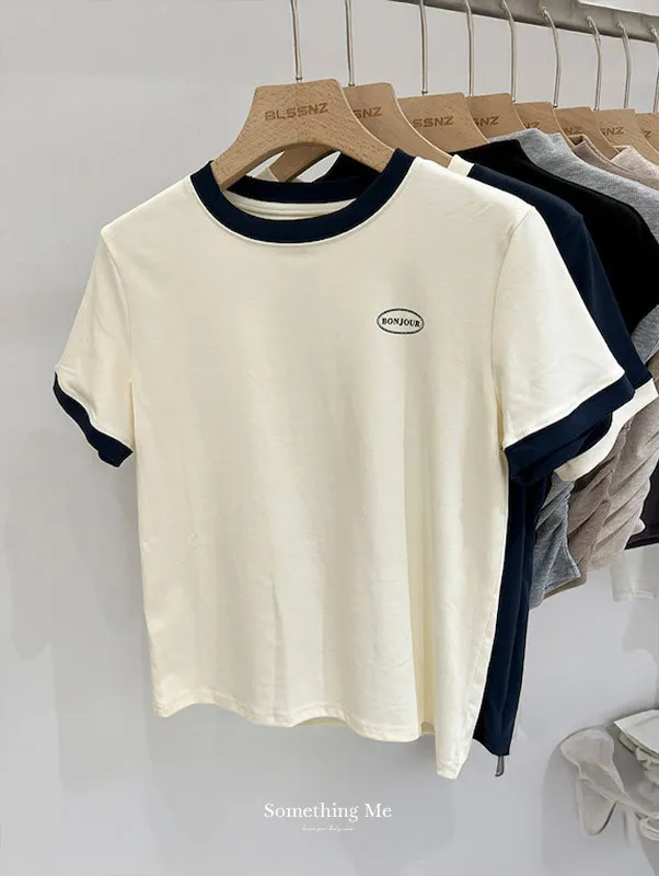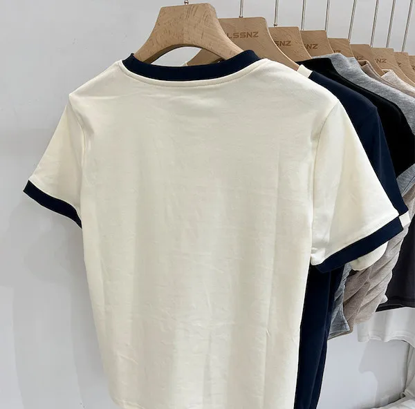簡約撞色滾邊短袖Tee 2色