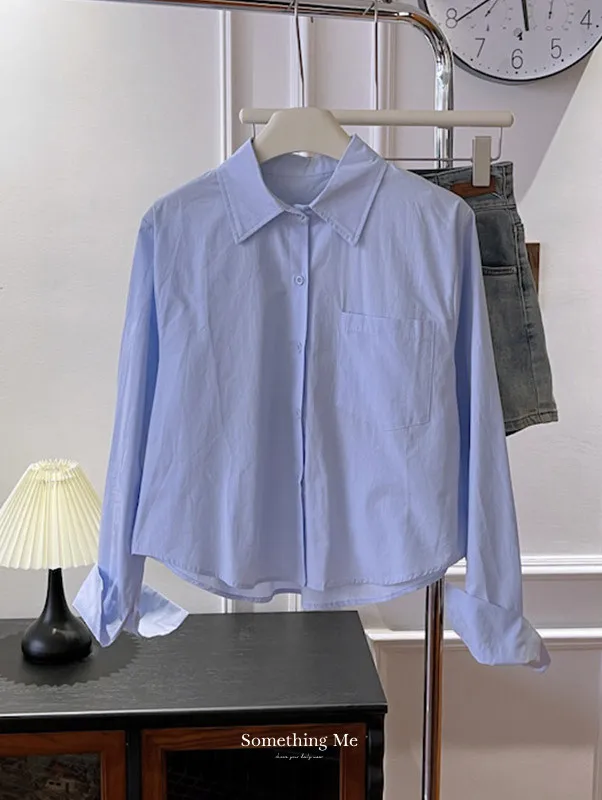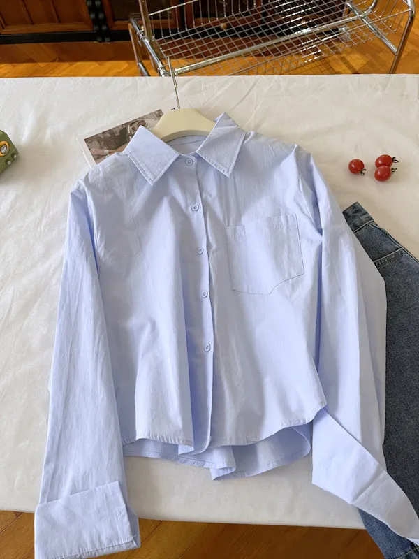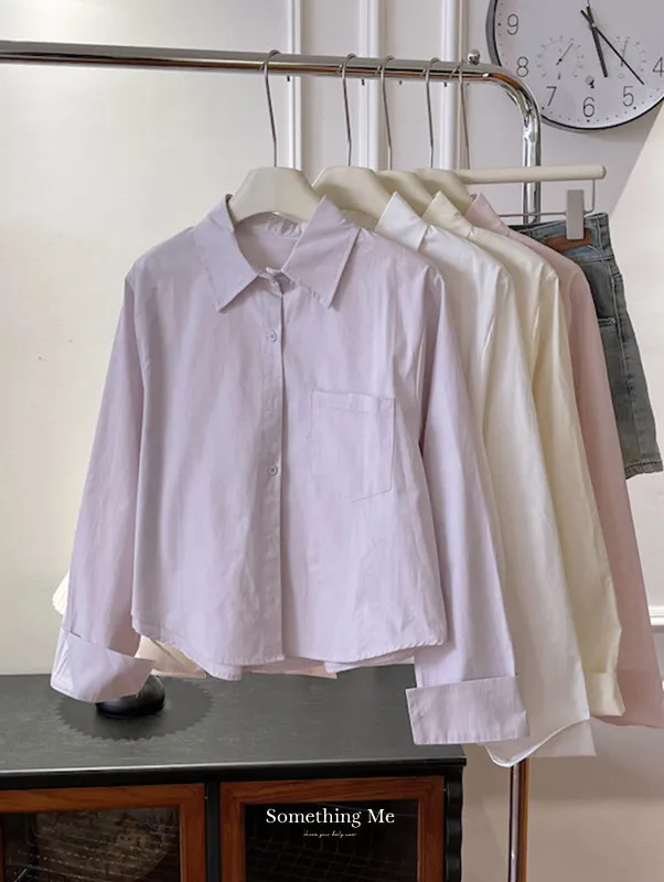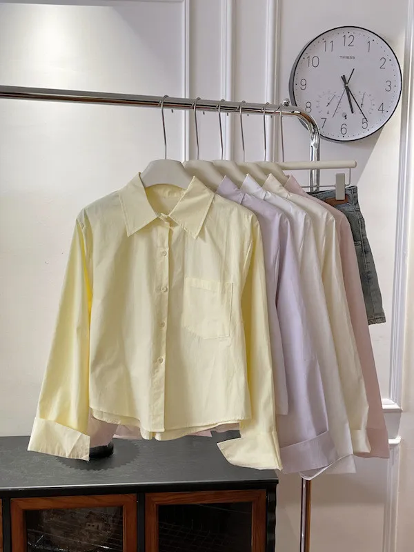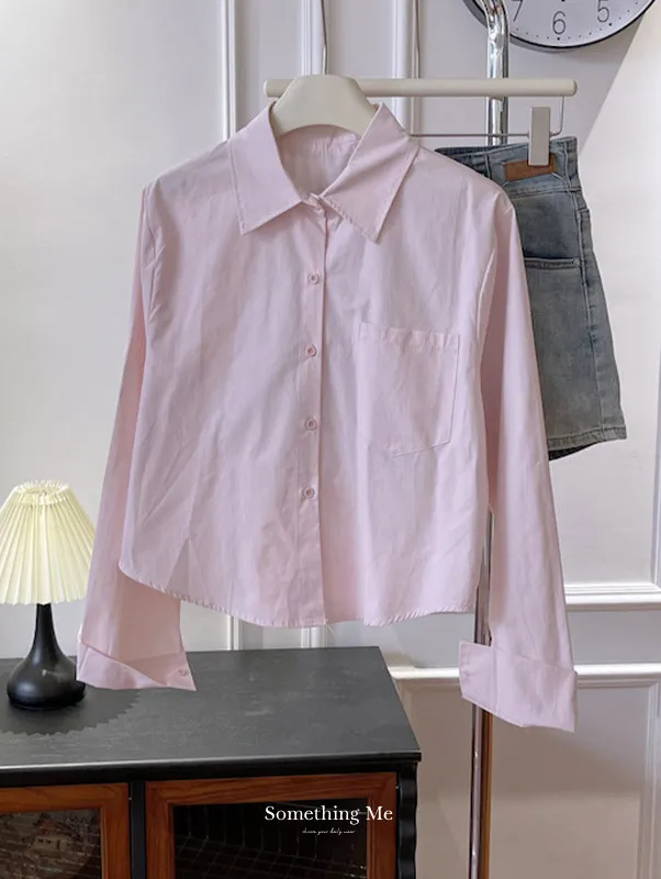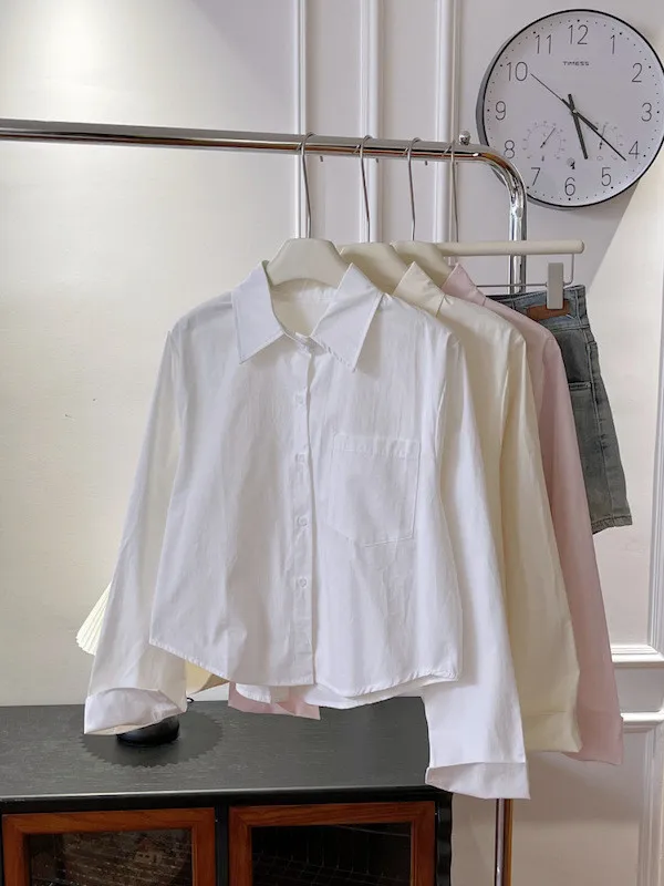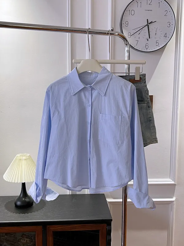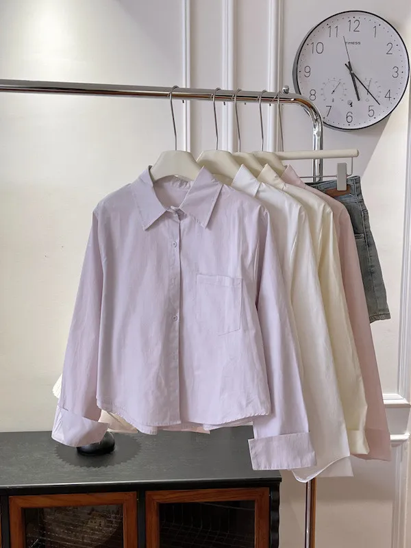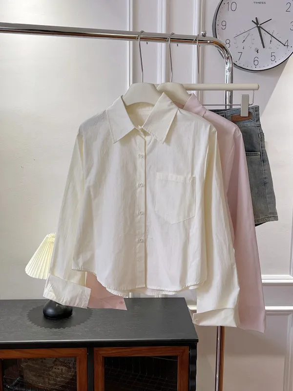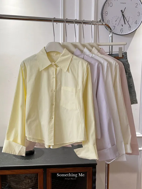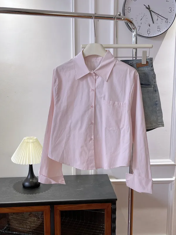 純色口袋短版長袖襯衫 6色
