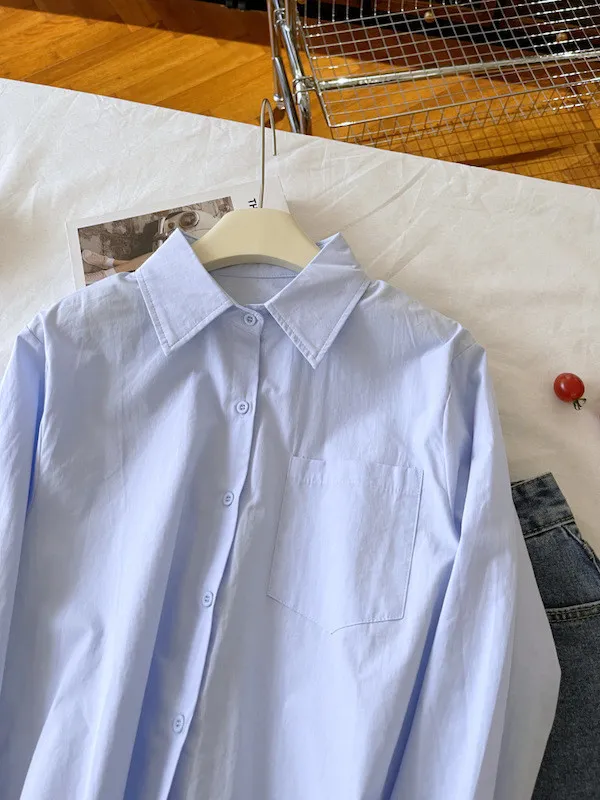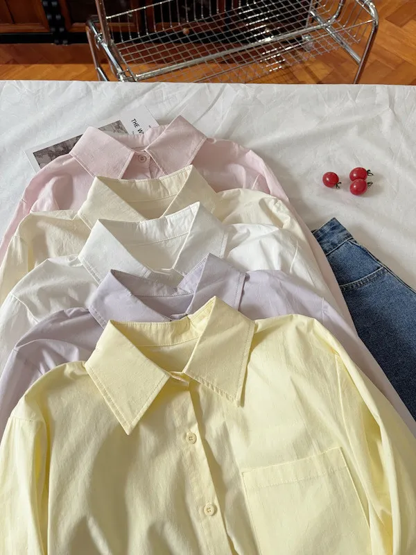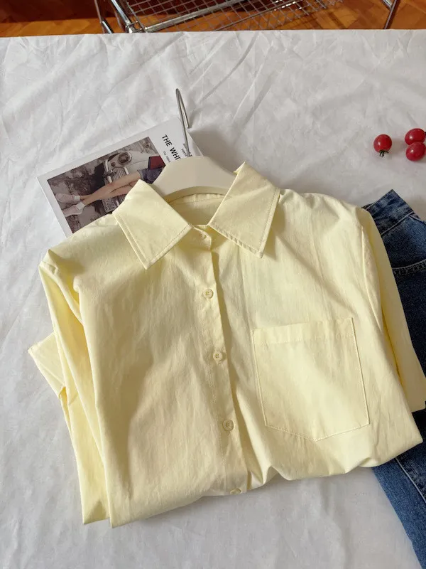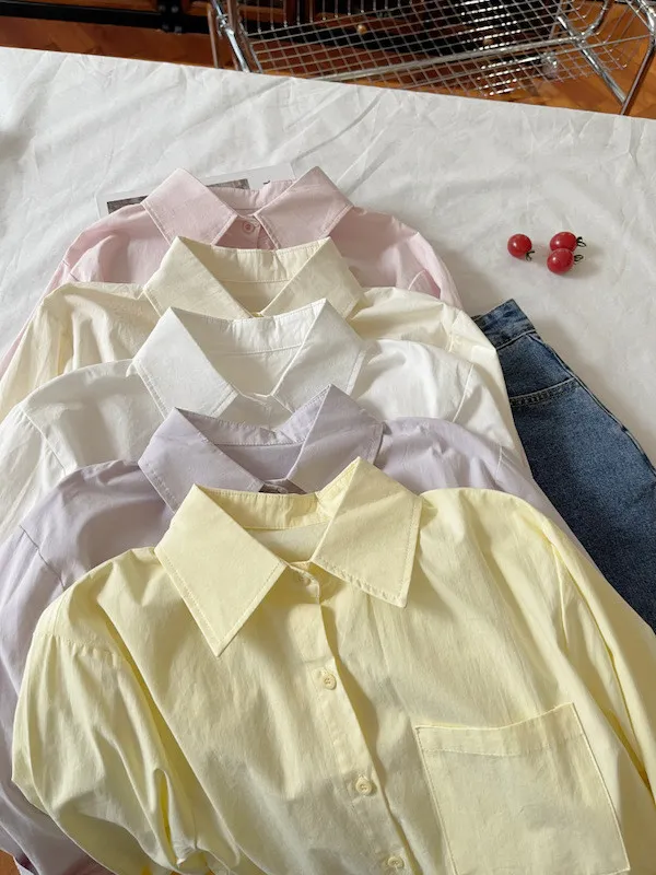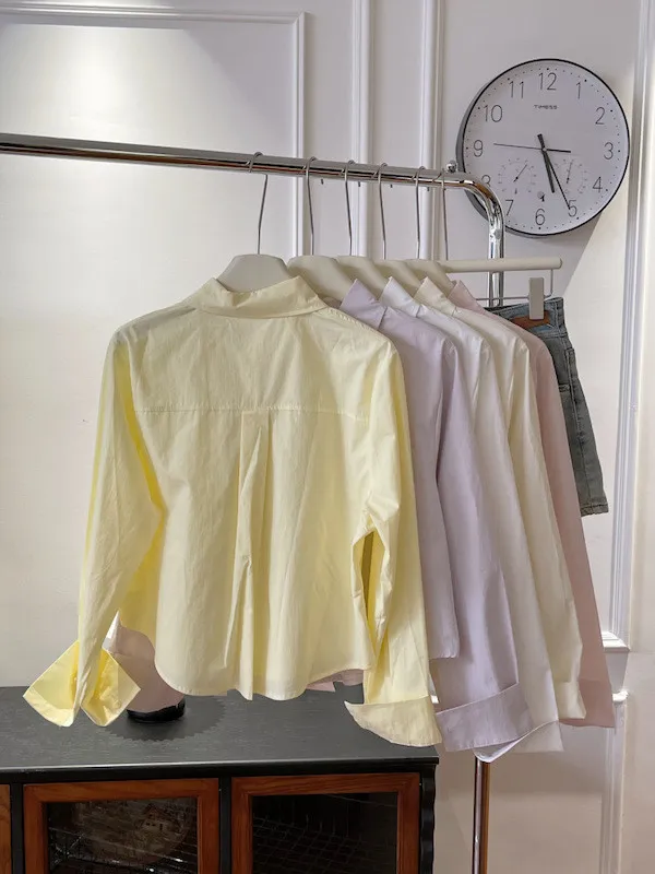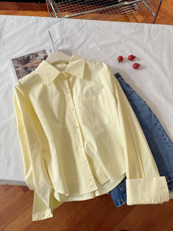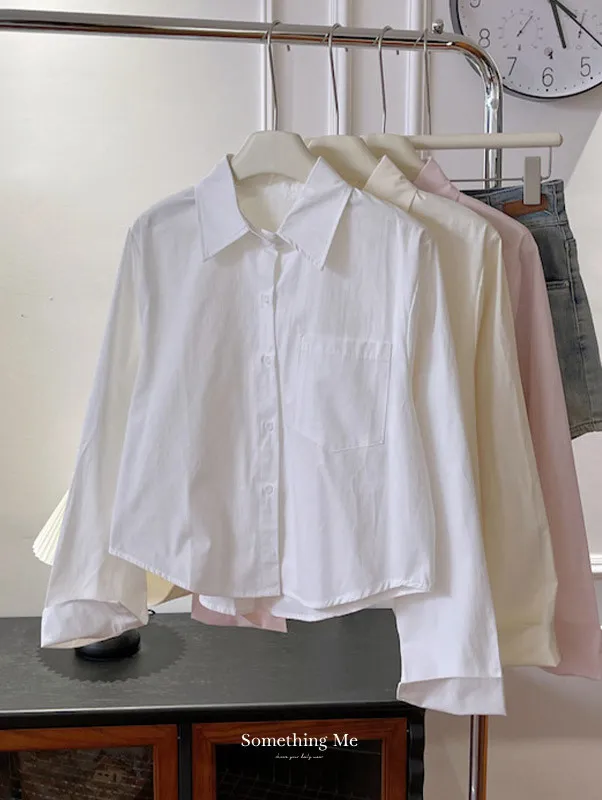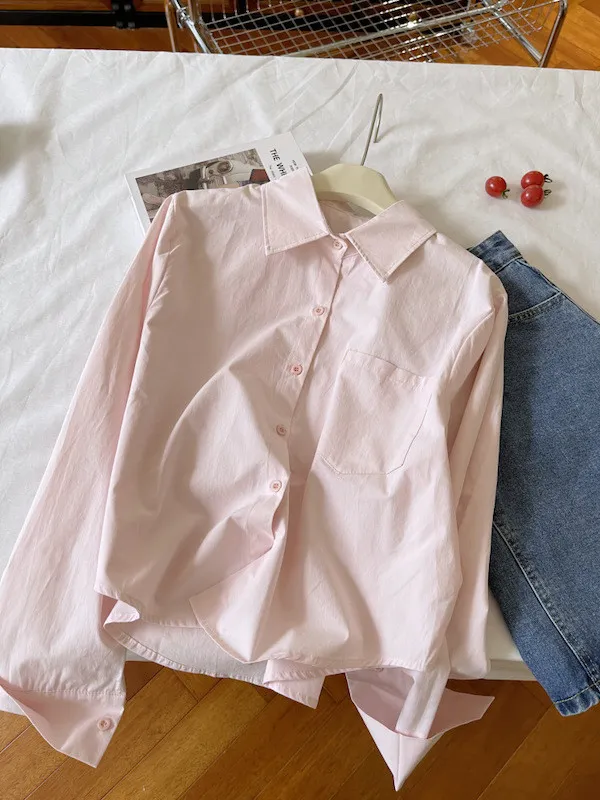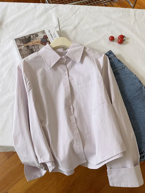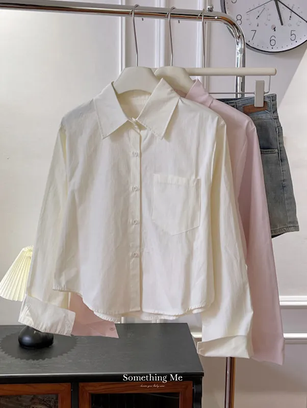 純色口袋短版長袖襯衫 6色