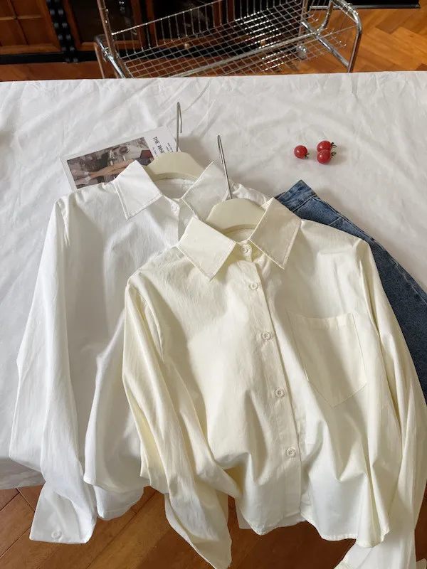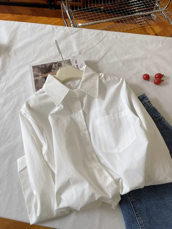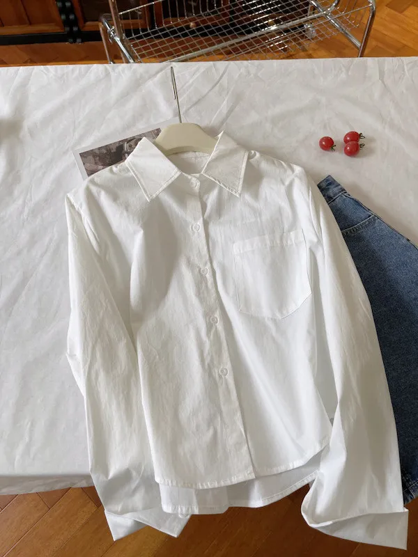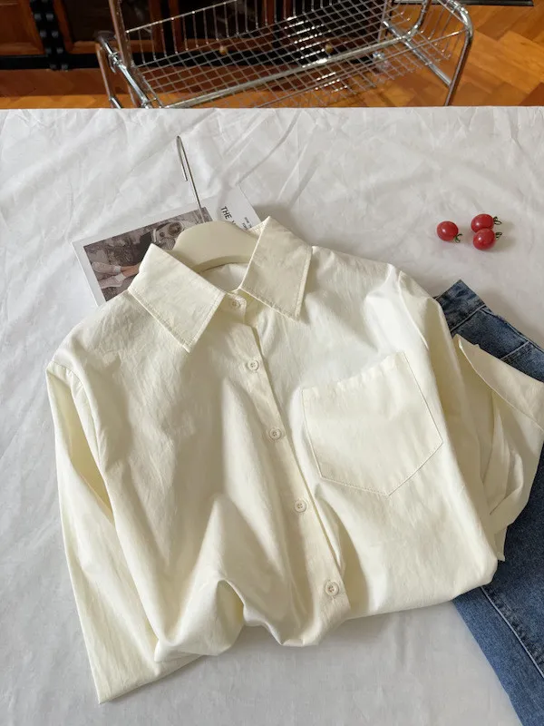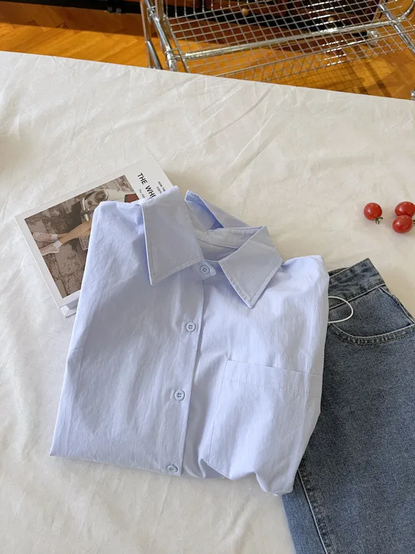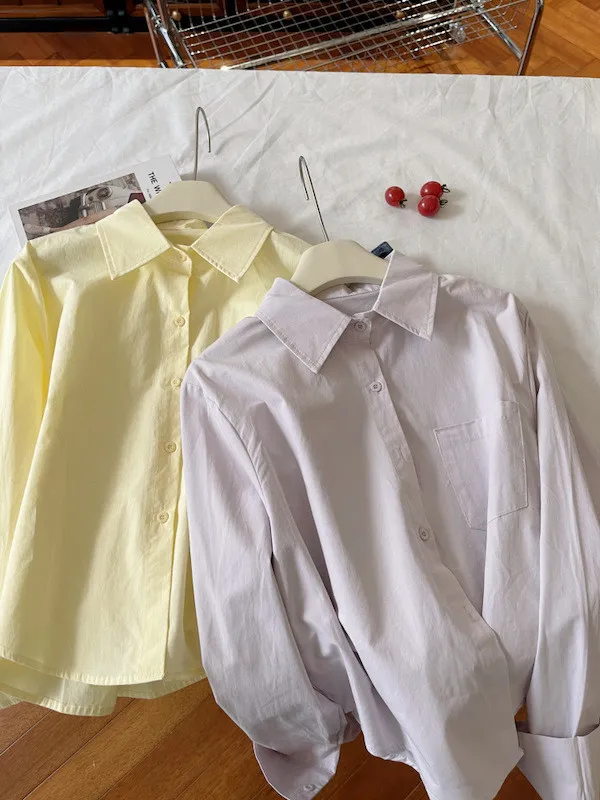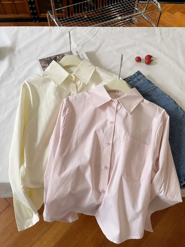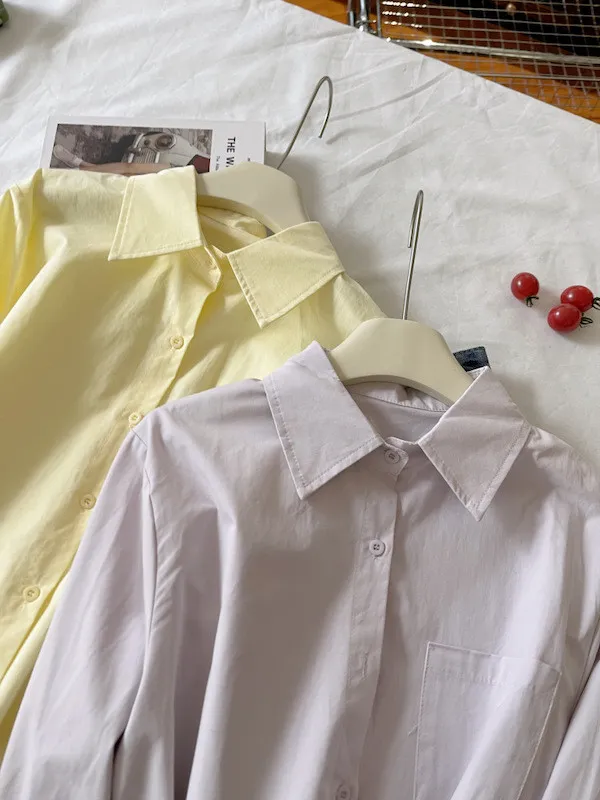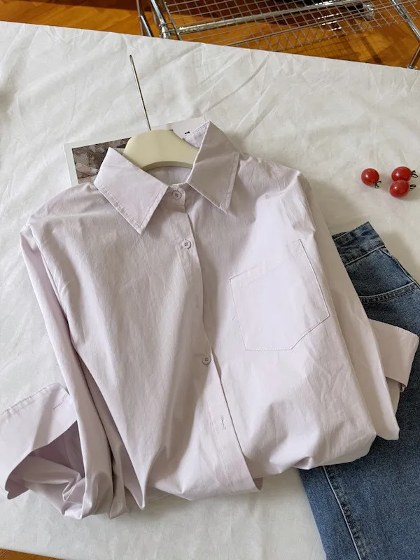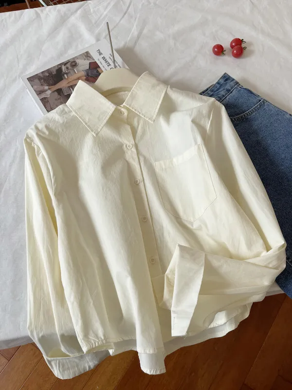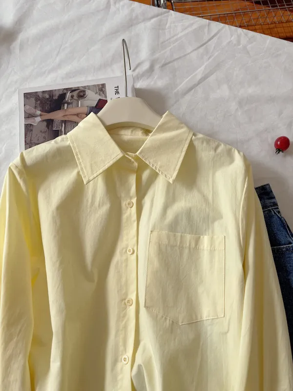 純色口袋短版長袖襯衫 6色