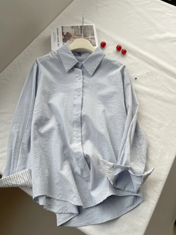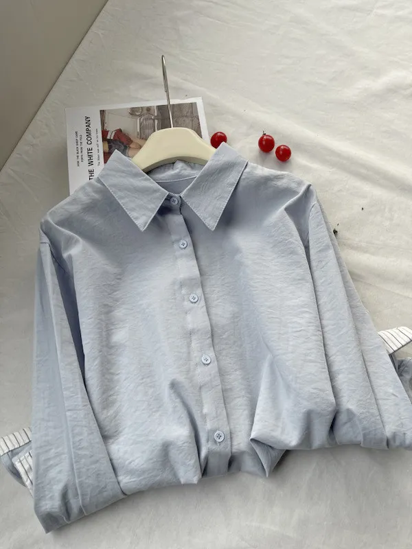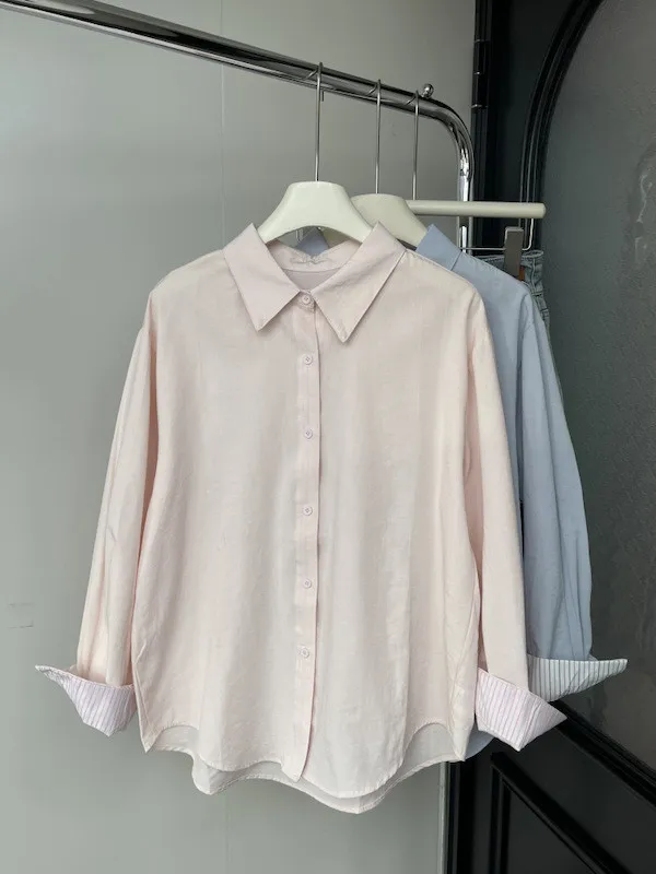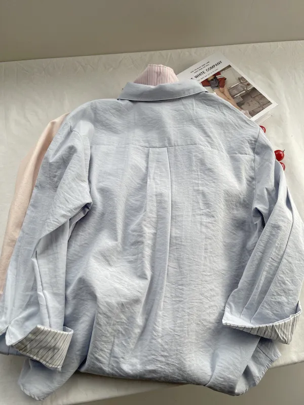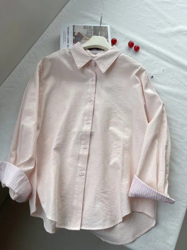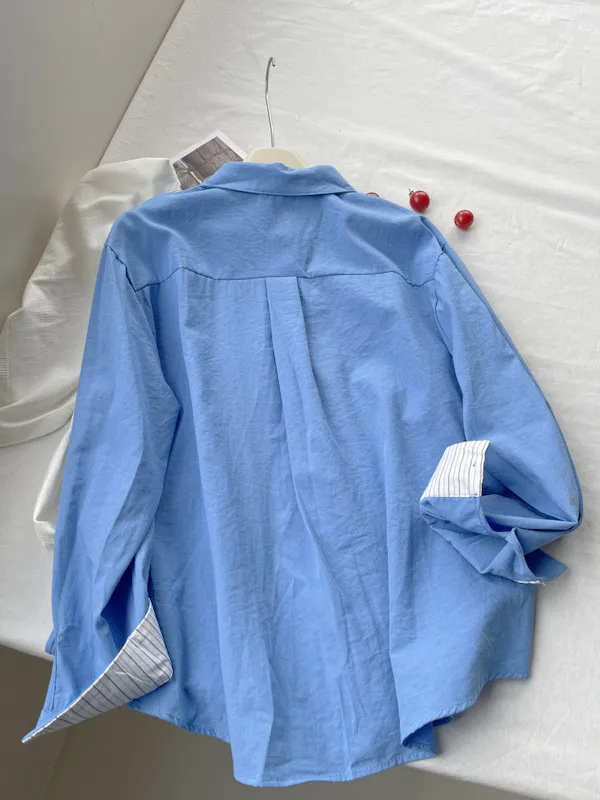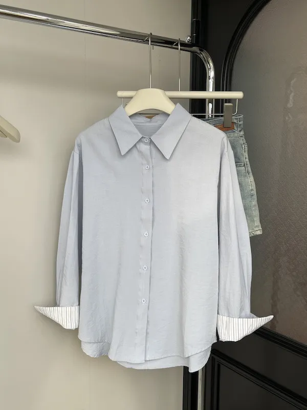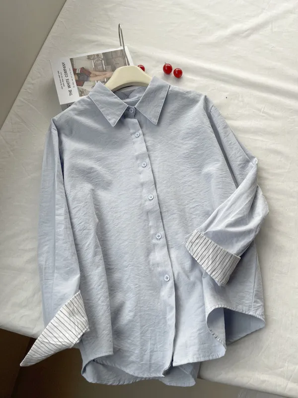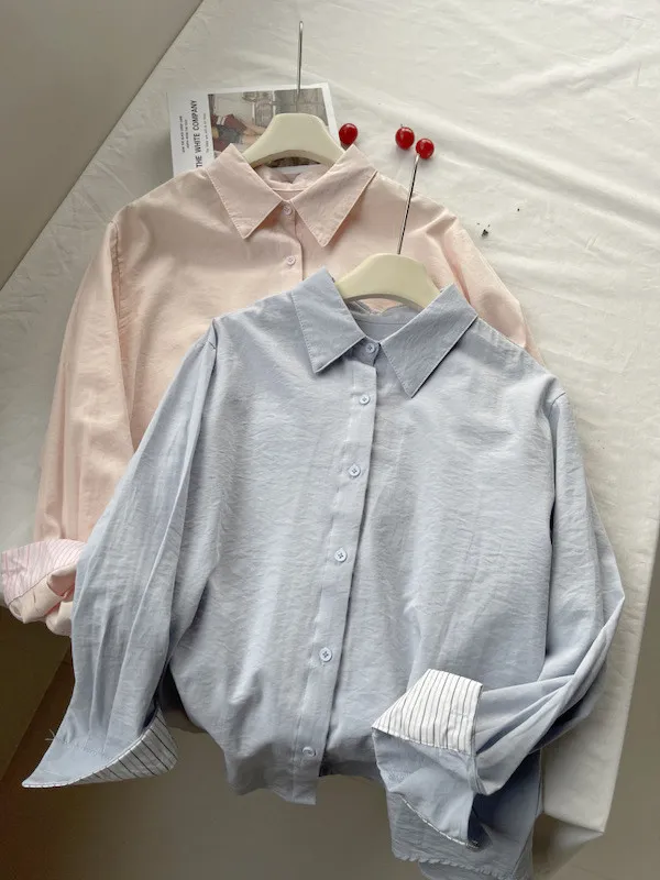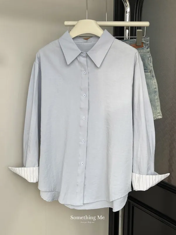 韓系條紋袖口長袖襯衫 3色