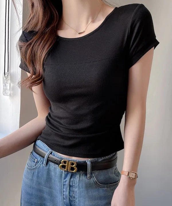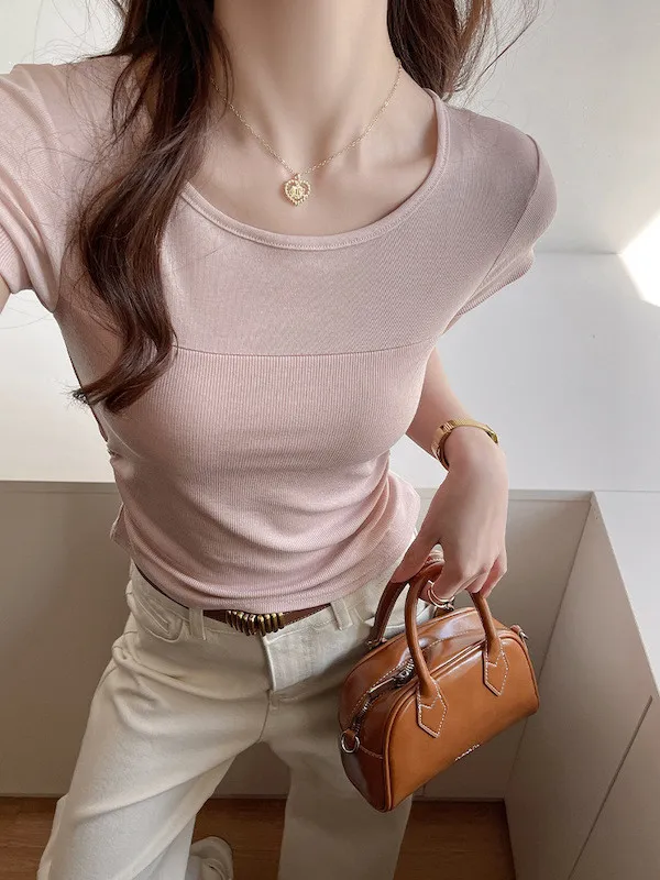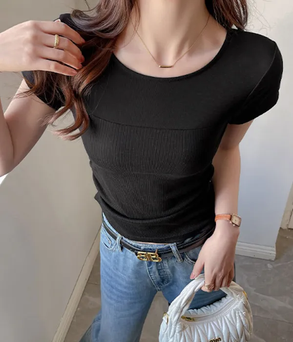 萊賽爾天絲拼接短袖Tee 4色