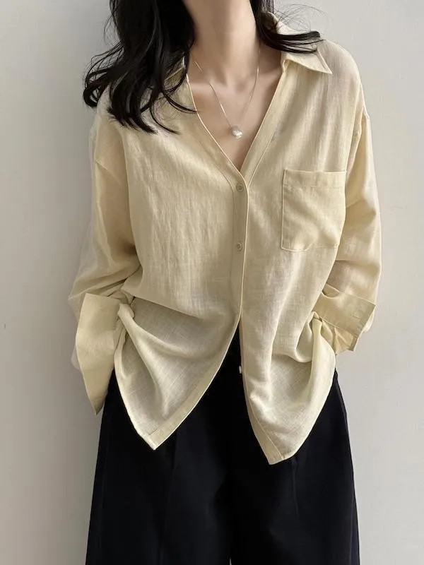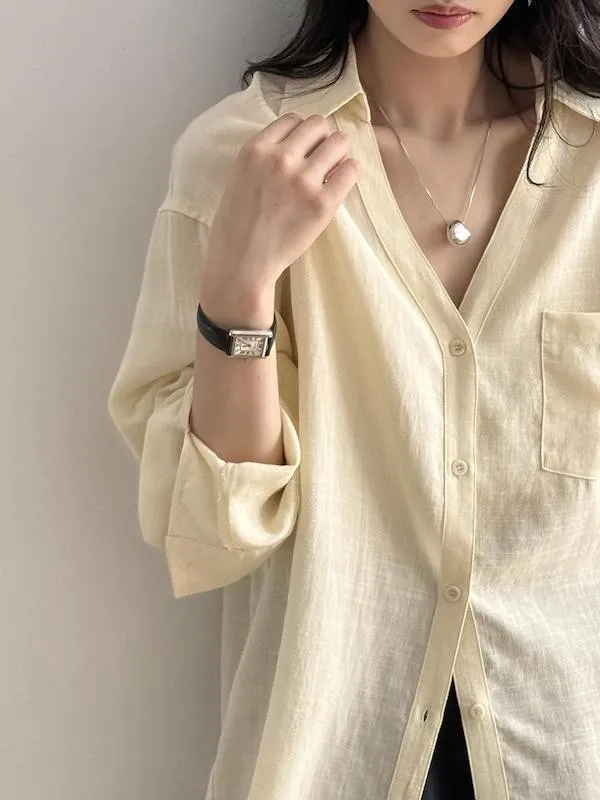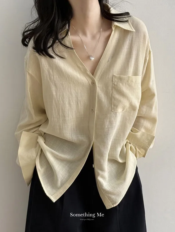 白色/黃色/卡其灰/淺藍色 尺寸(公分) Free Size 肩寬 54 胸圍 118 袖長 55 下擺圍 120 衣長 68 ※尺寸為手工測量,誤差±3-5cm上下為合理範圍※ 材質 / 亞麻,聚酯纖維混紡