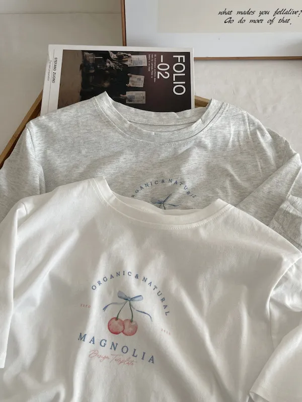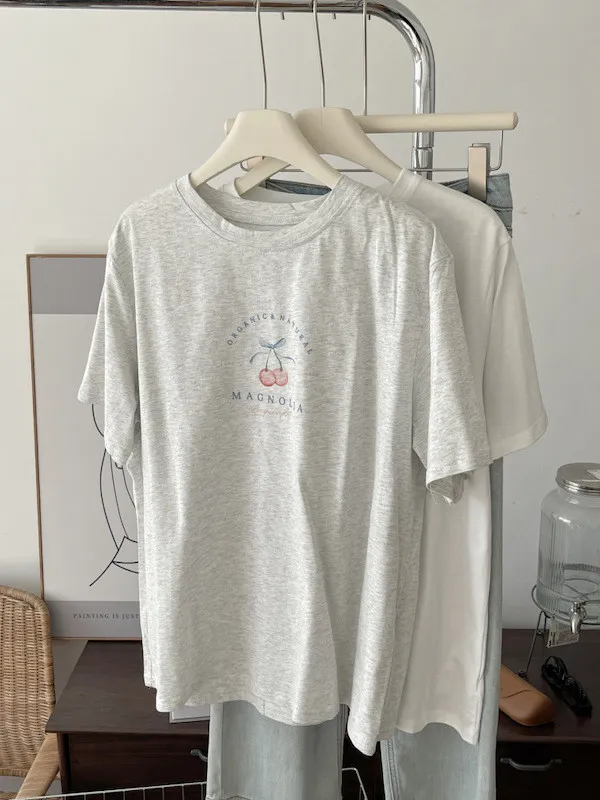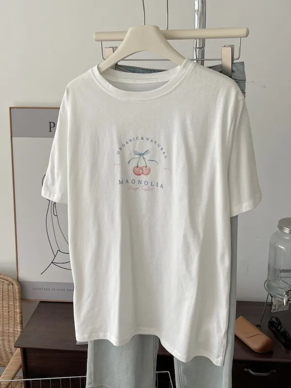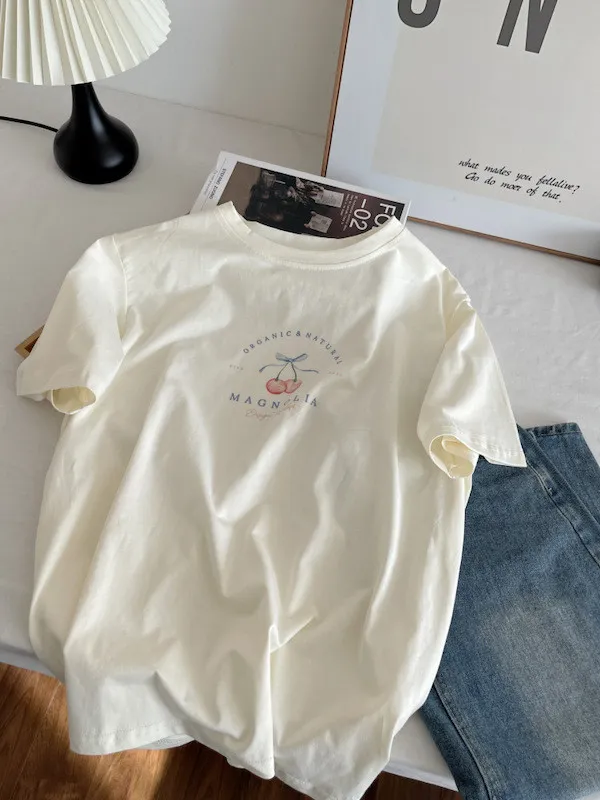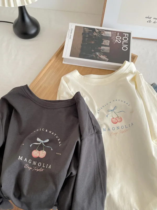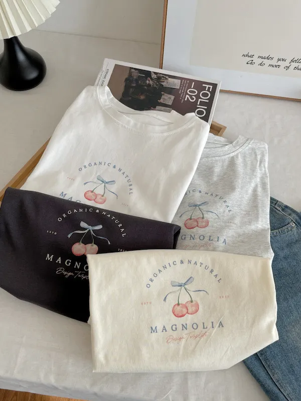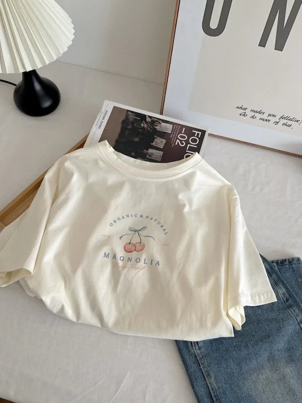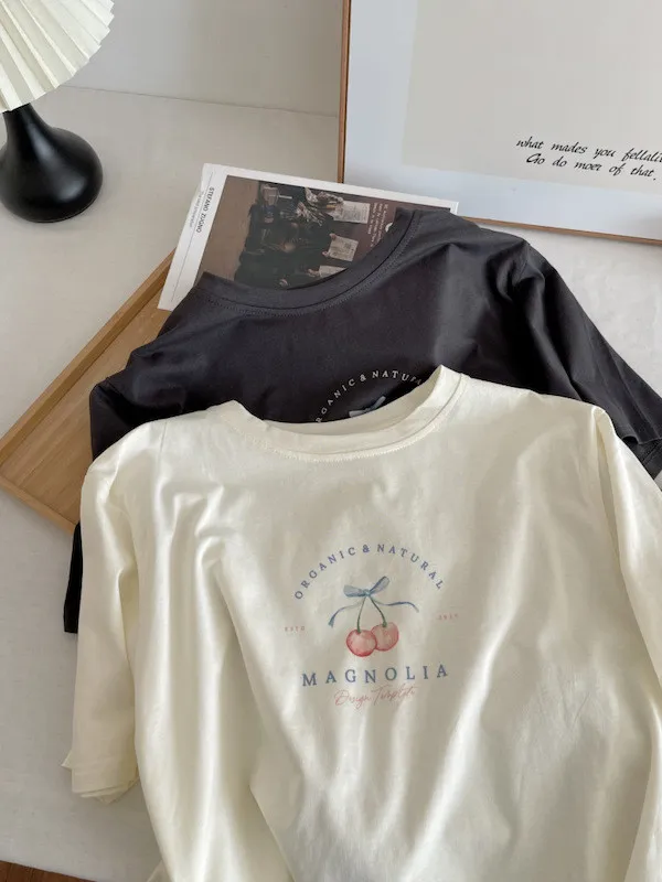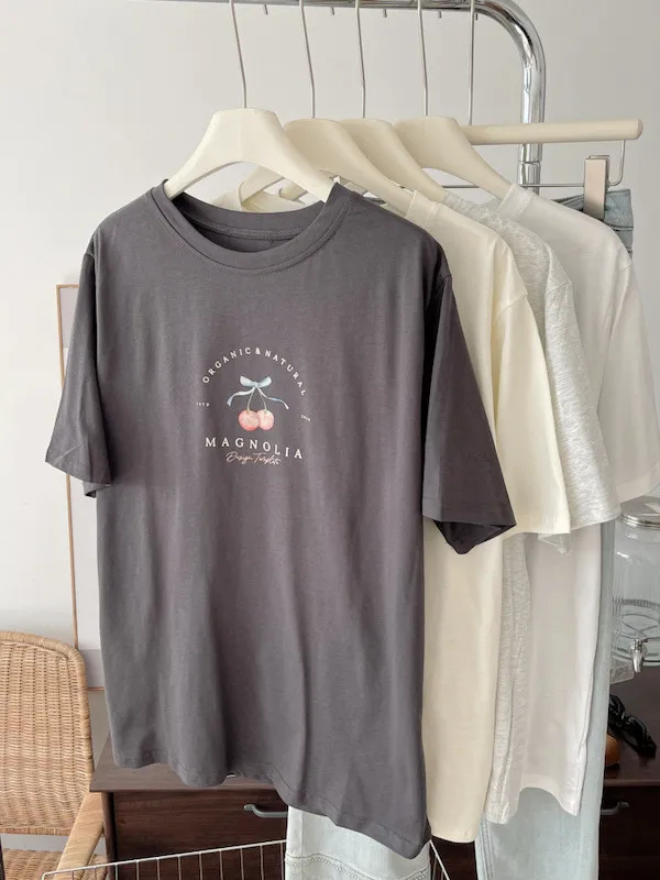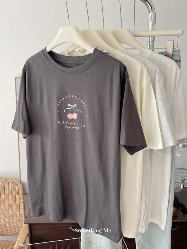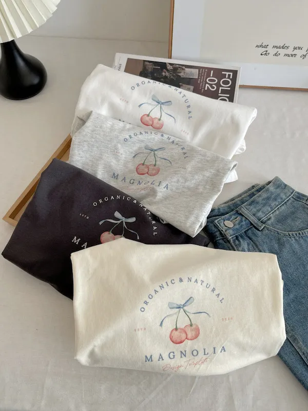 清爽寬鬆復古櫻桃印花短Tee 4色