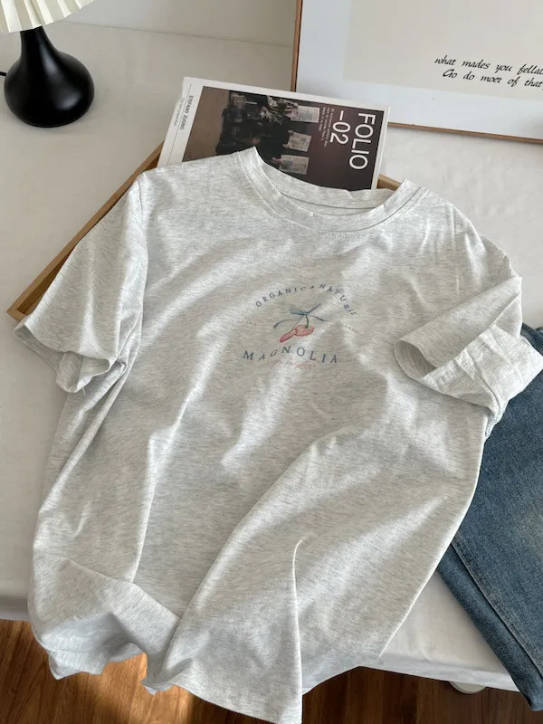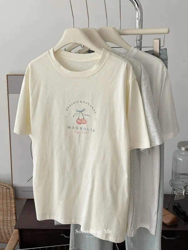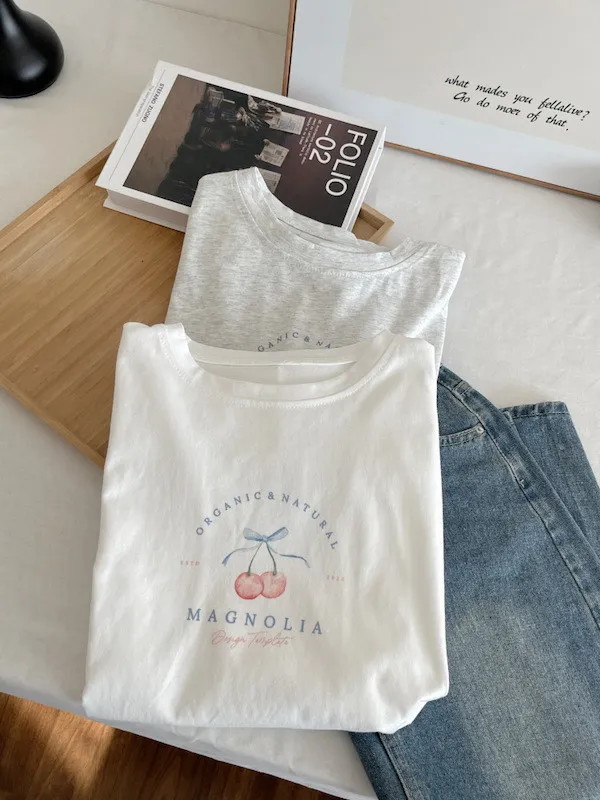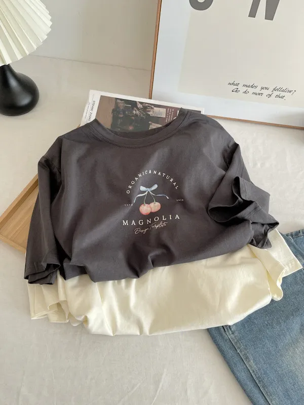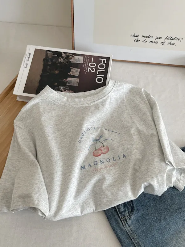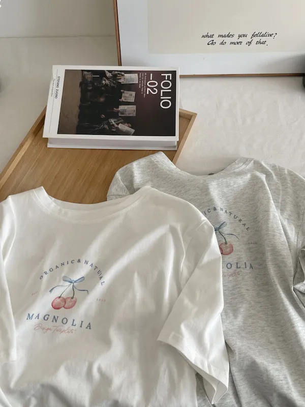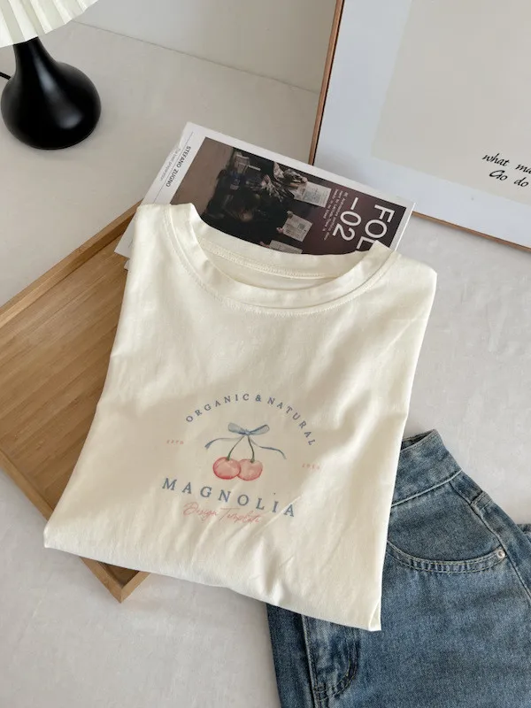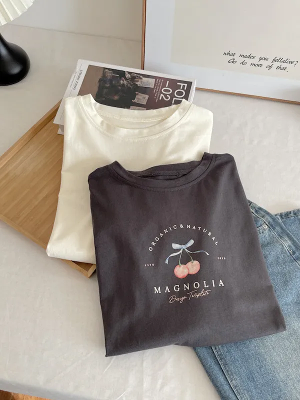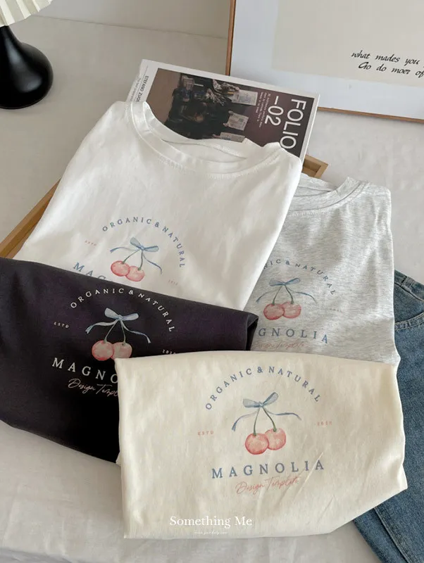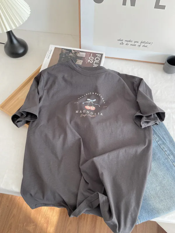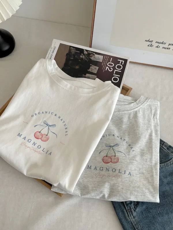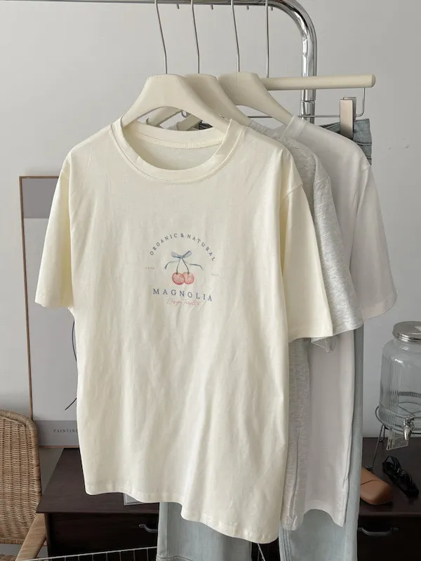 清爽寬鬆復古櫻桃印花短Tee 4色