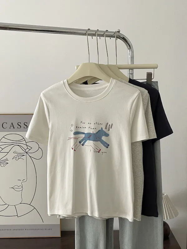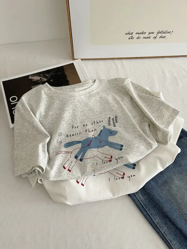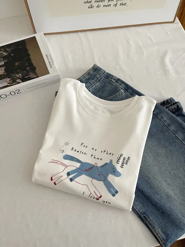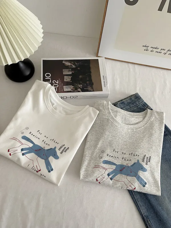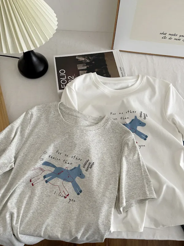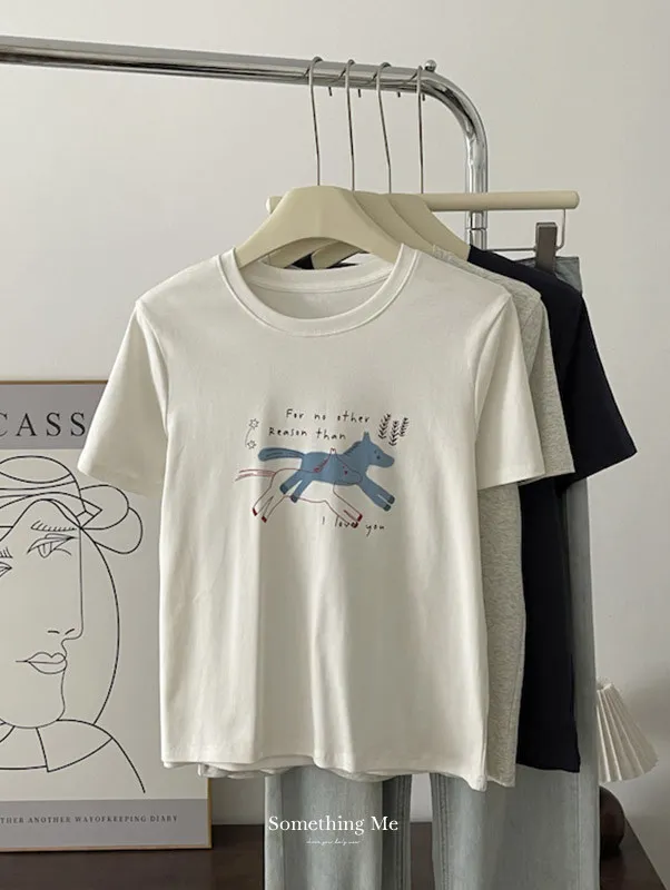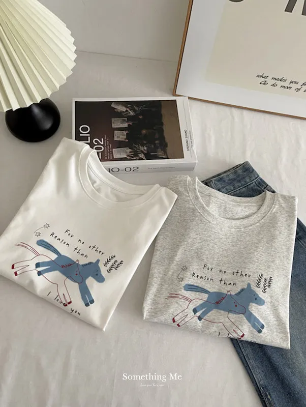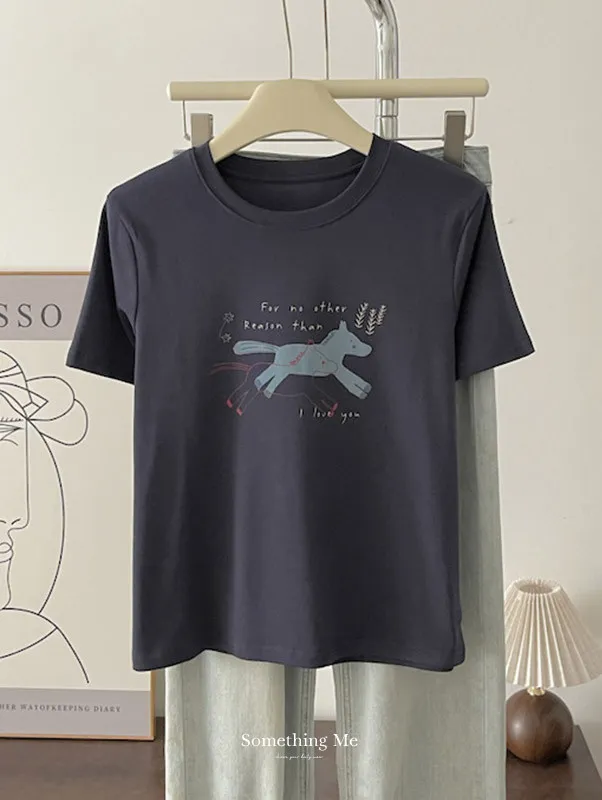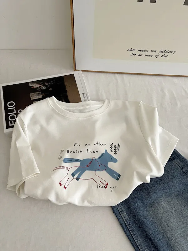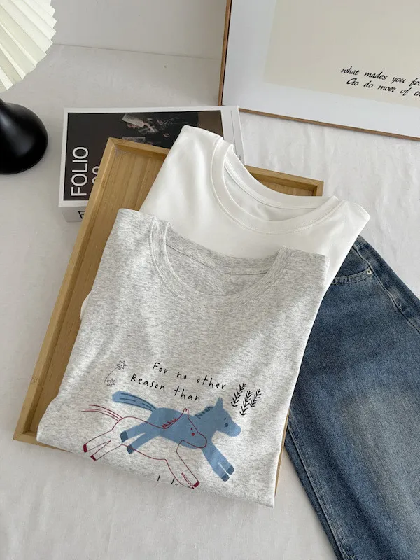 奔跑小馬手繪字母短袖Tee 3色