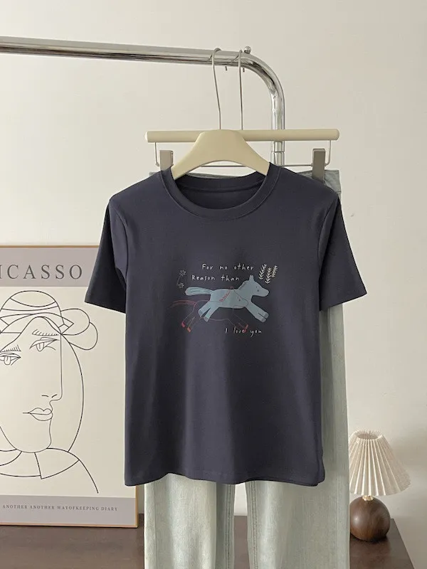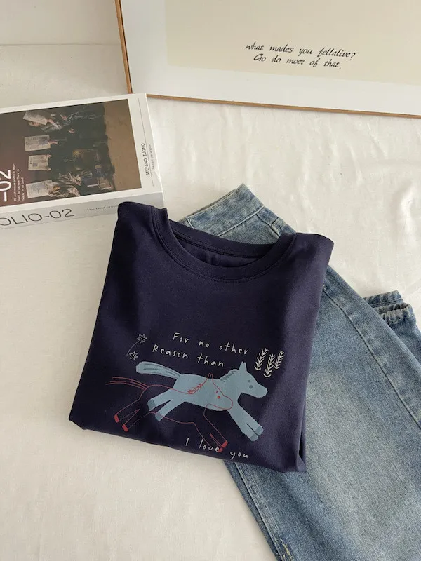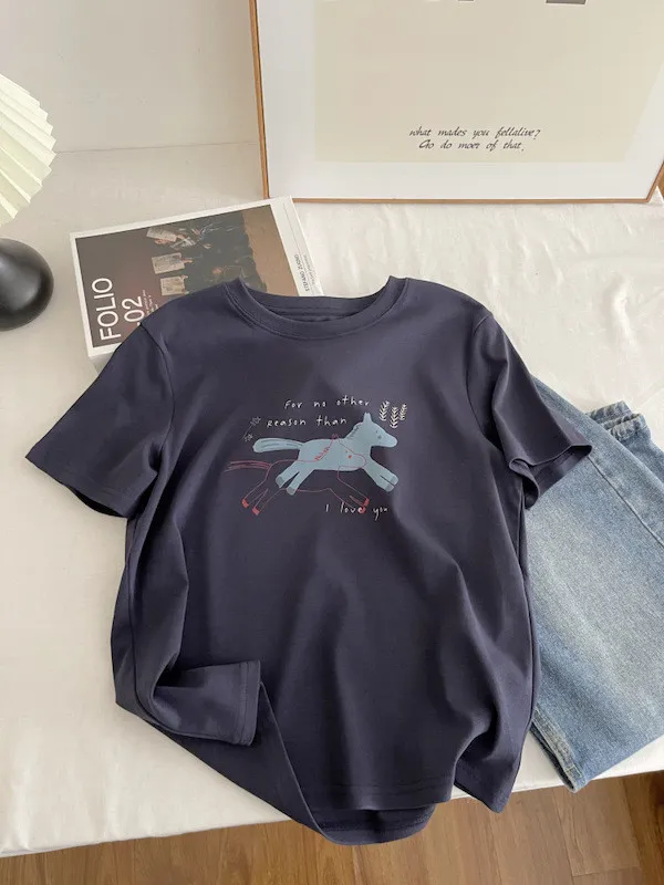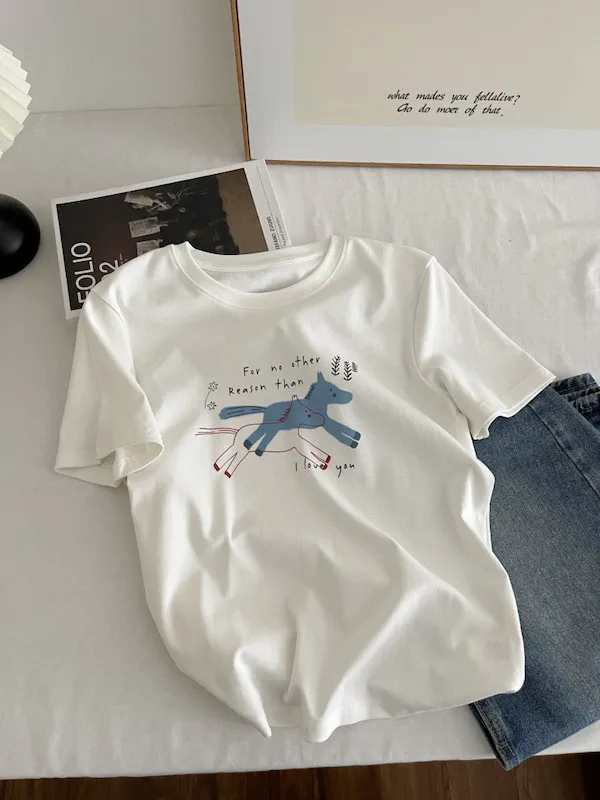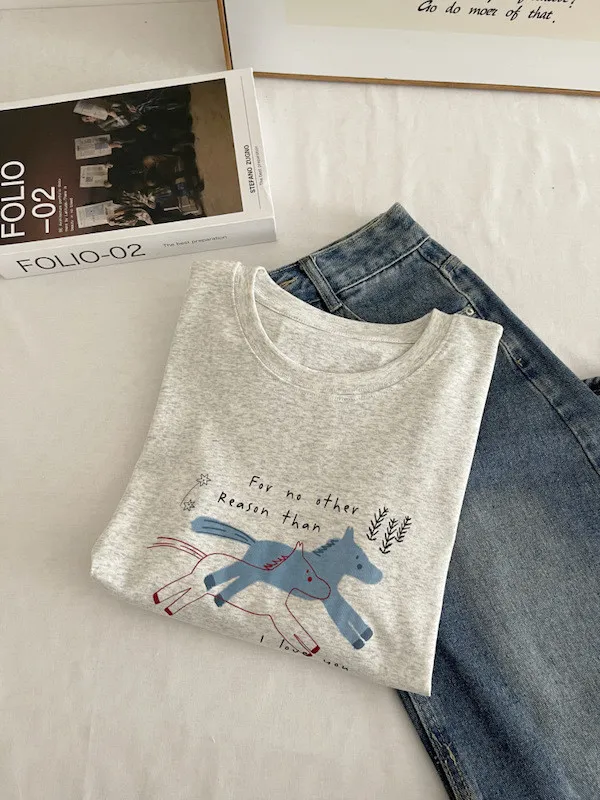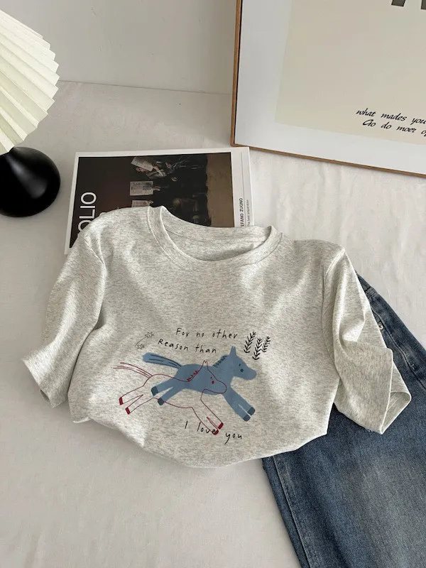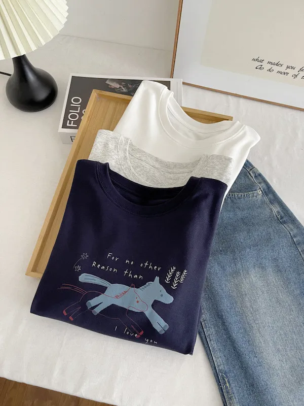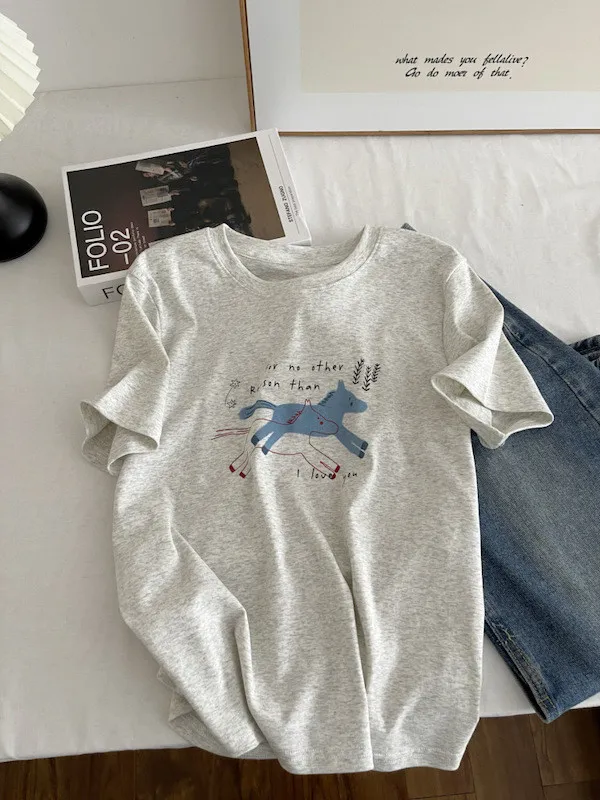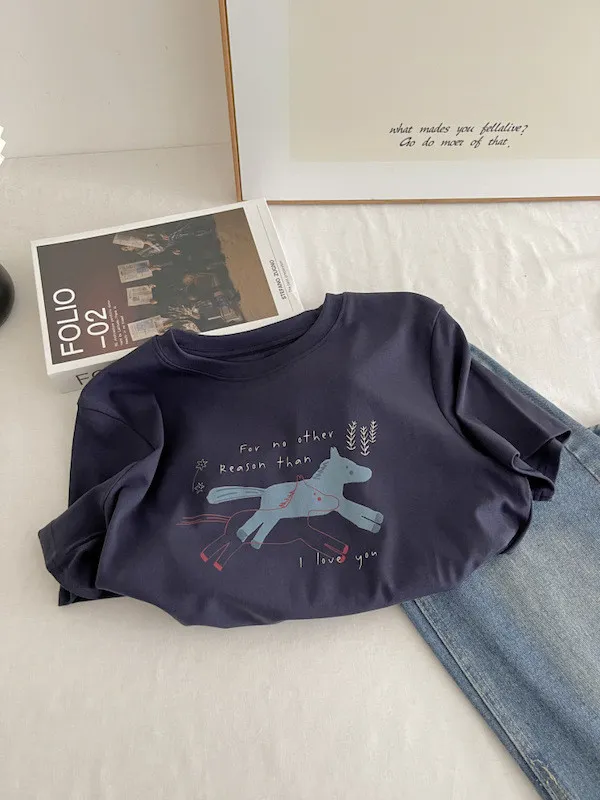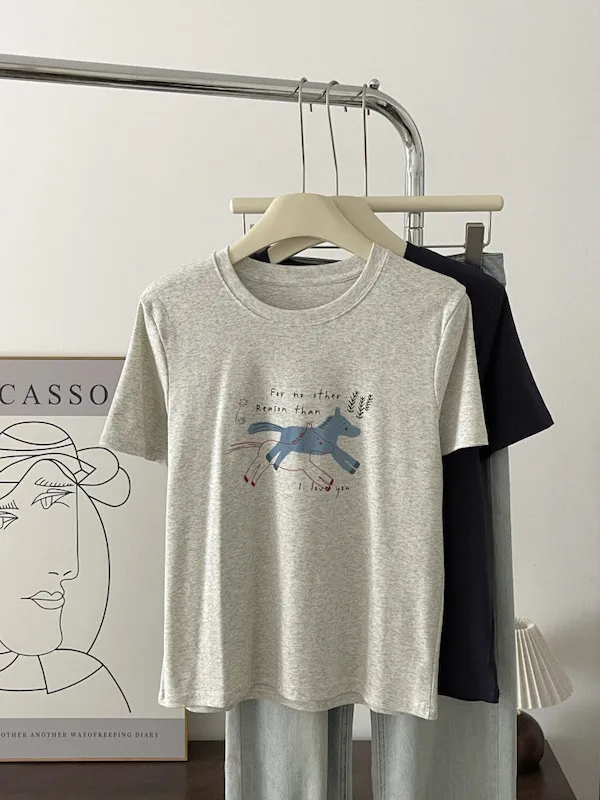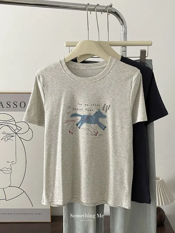 奔跑小馬手繪字母短袖Tee 3色