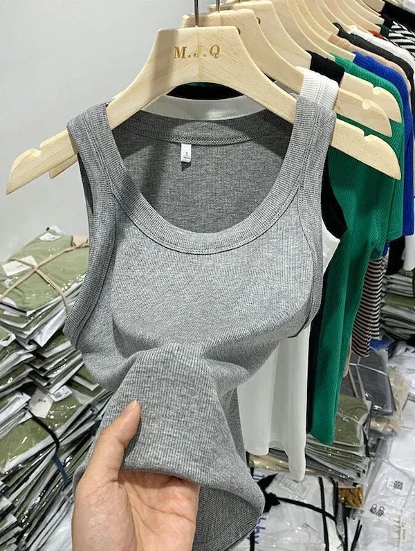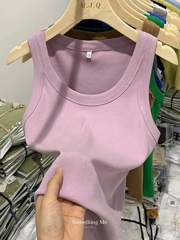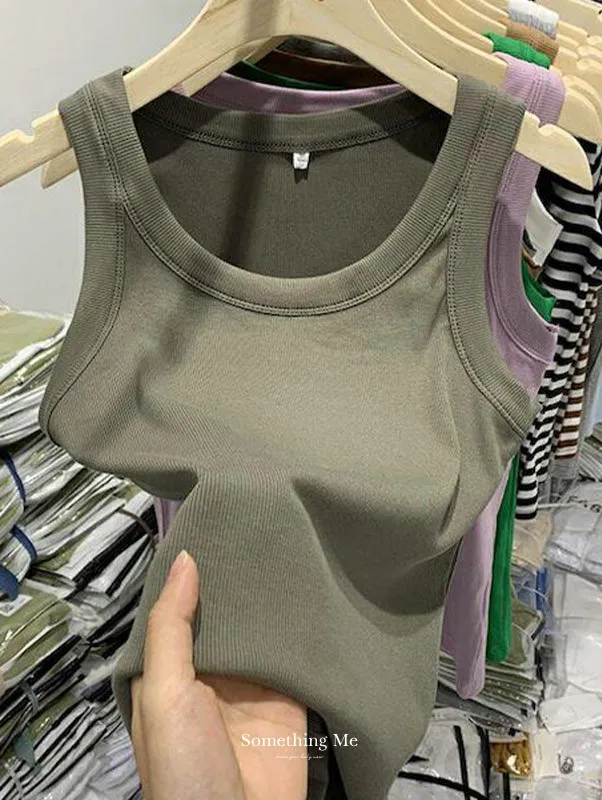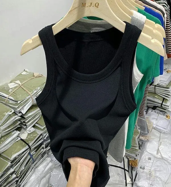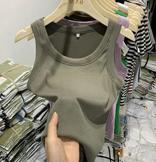 寬肩帶遮副乳內搭羅紋背心 7色