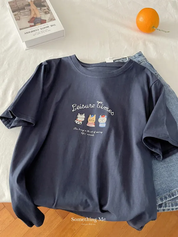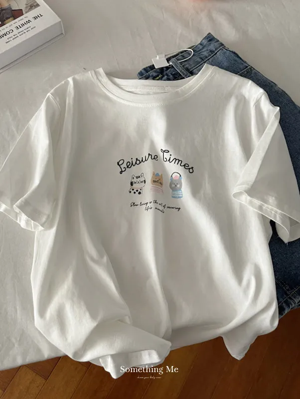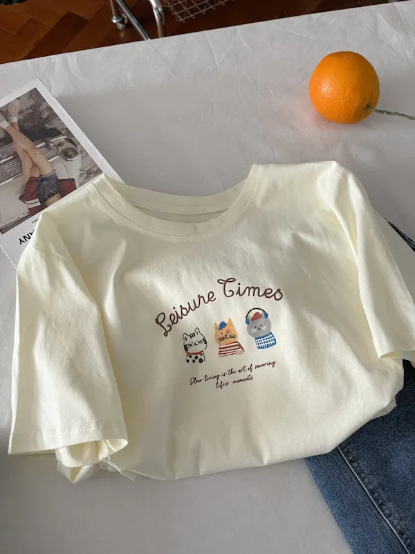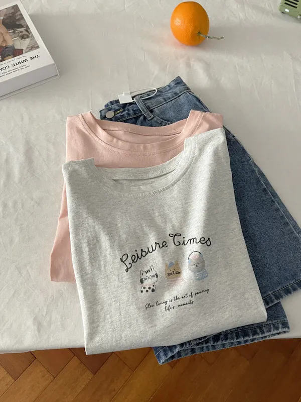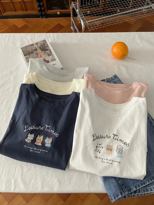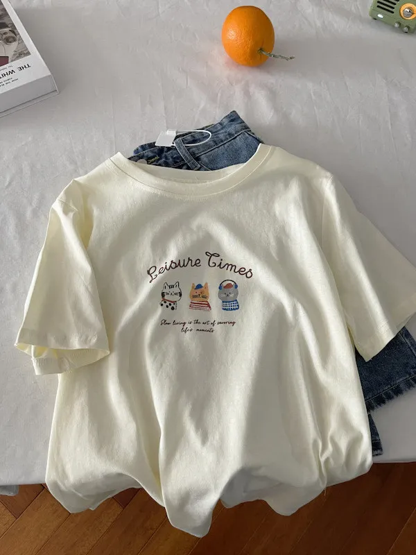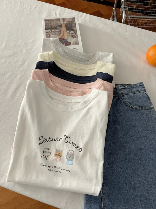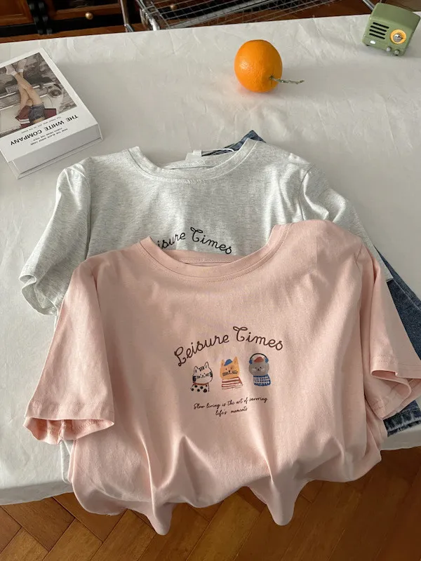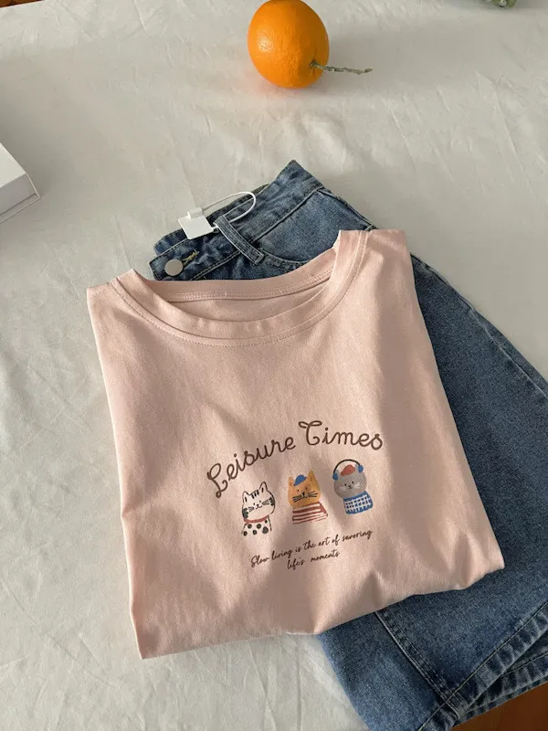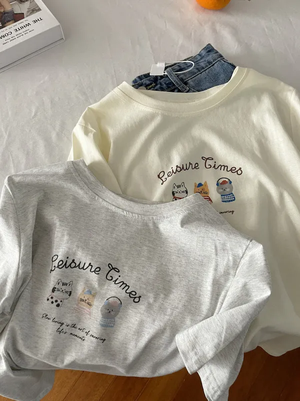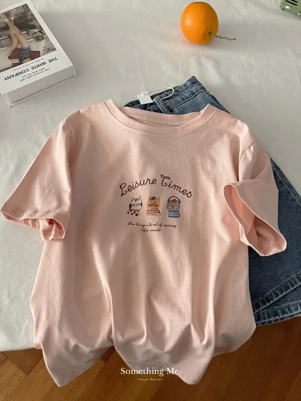 超Cute貓咪印花寬鬆短Tee 5色