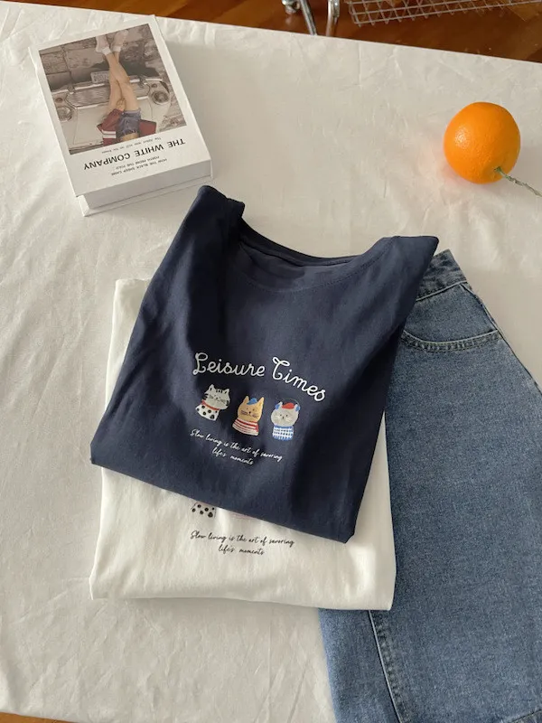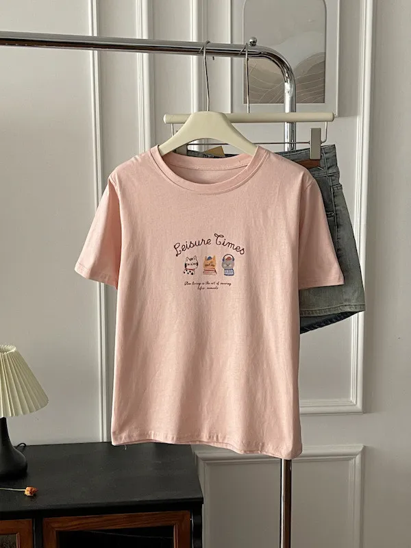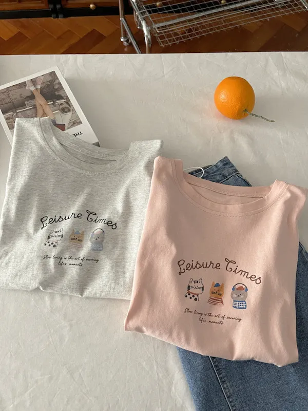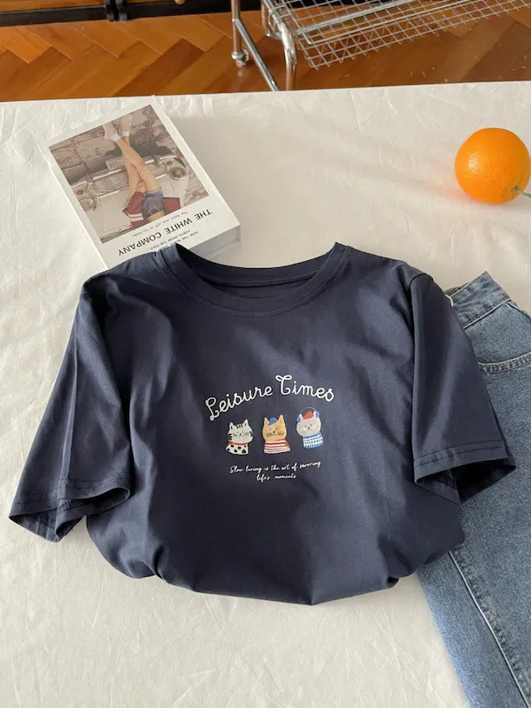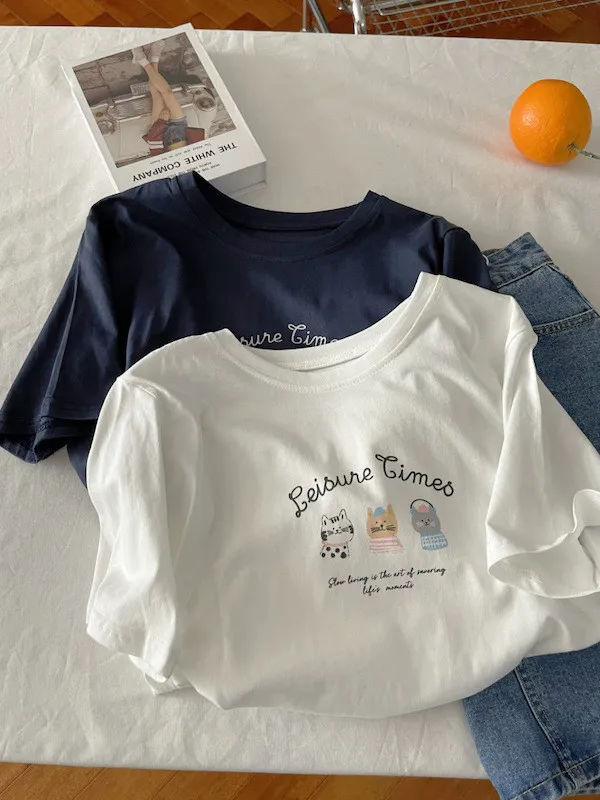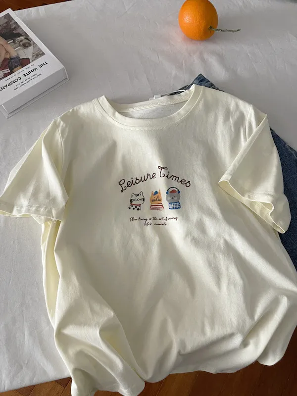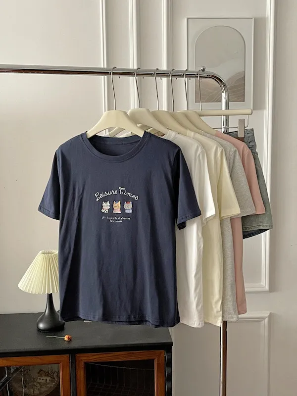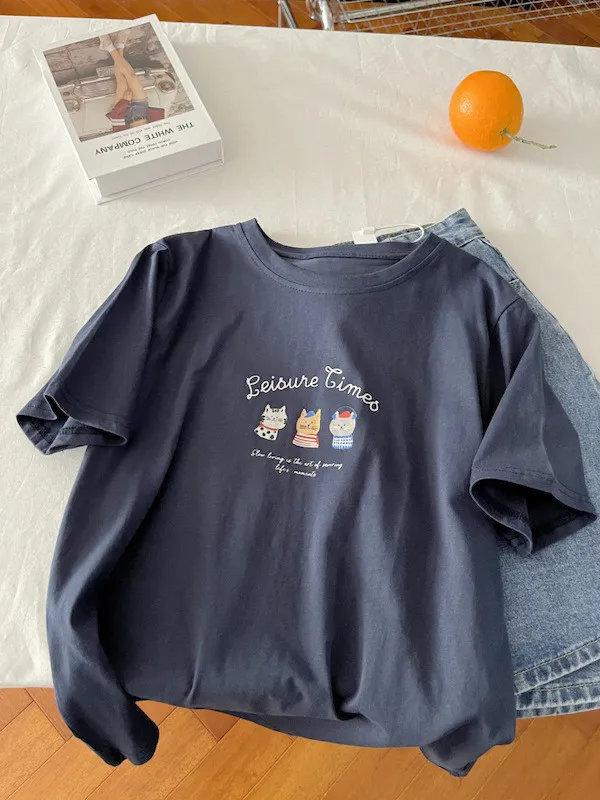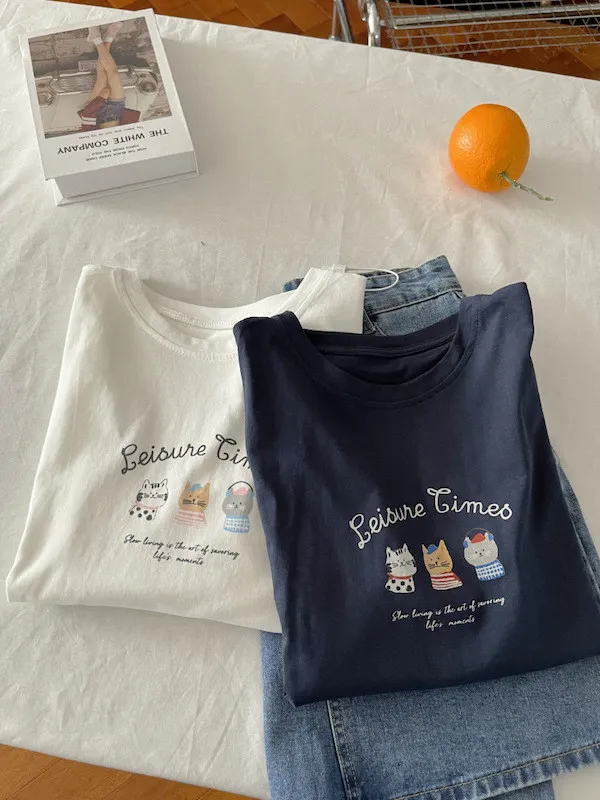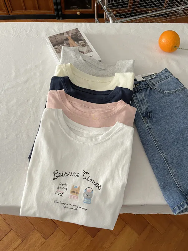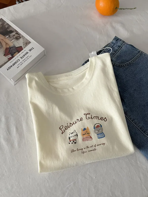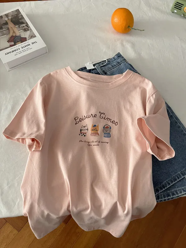 超Cute貓咪印花寬鬆短Tee 5色