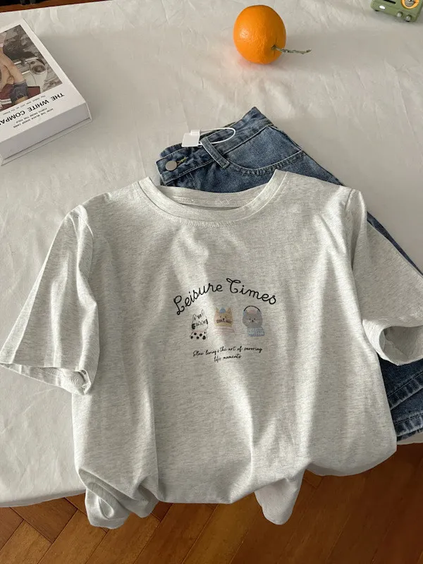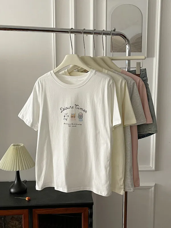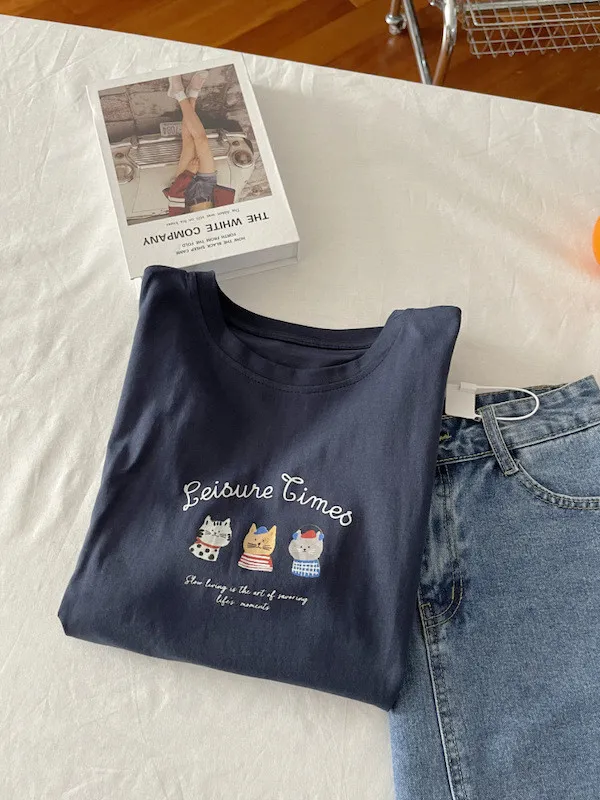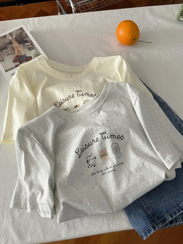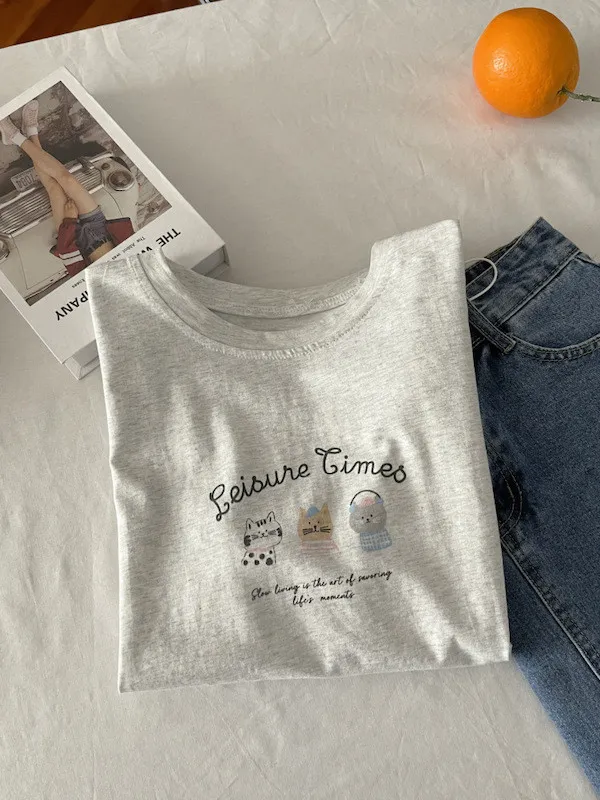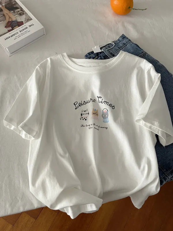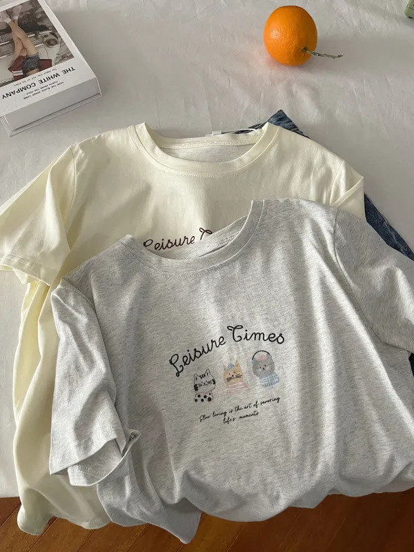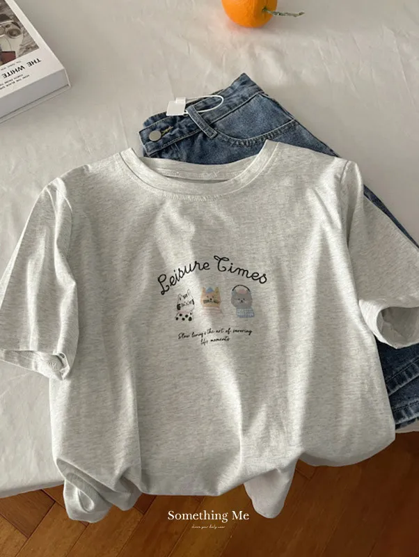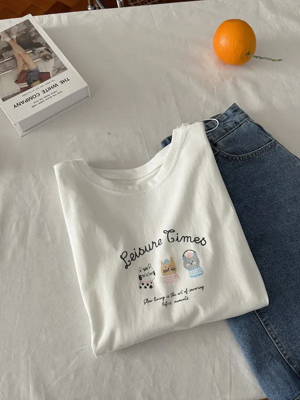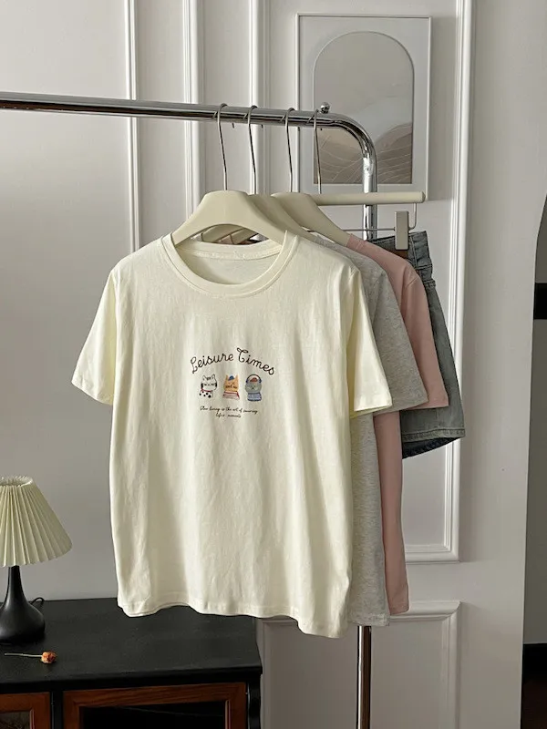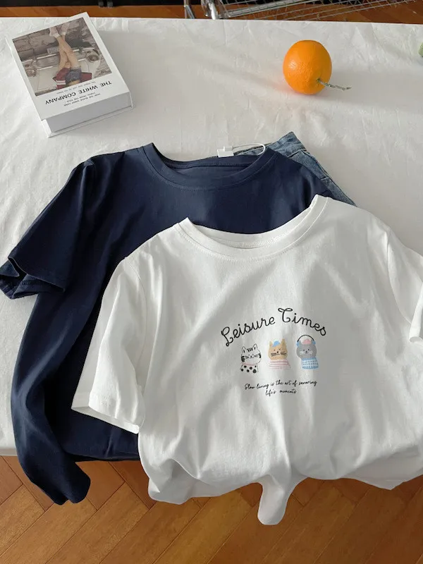 超Cute貓咪印花寬鬆短Tee 5色