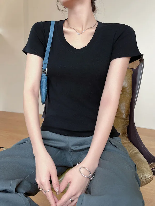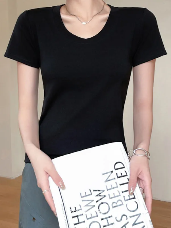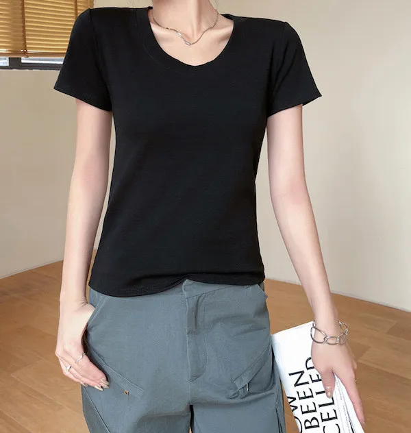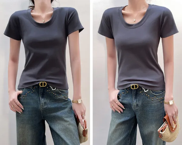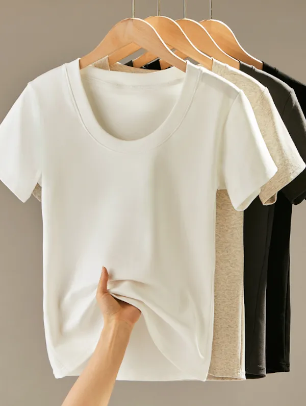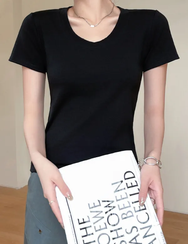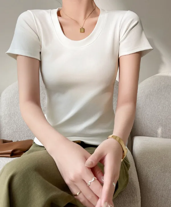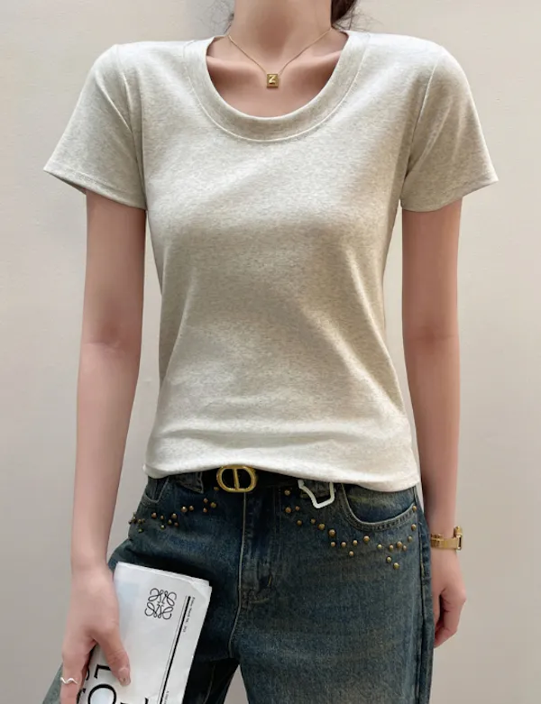 經典圓領合身短袖上衣 4色